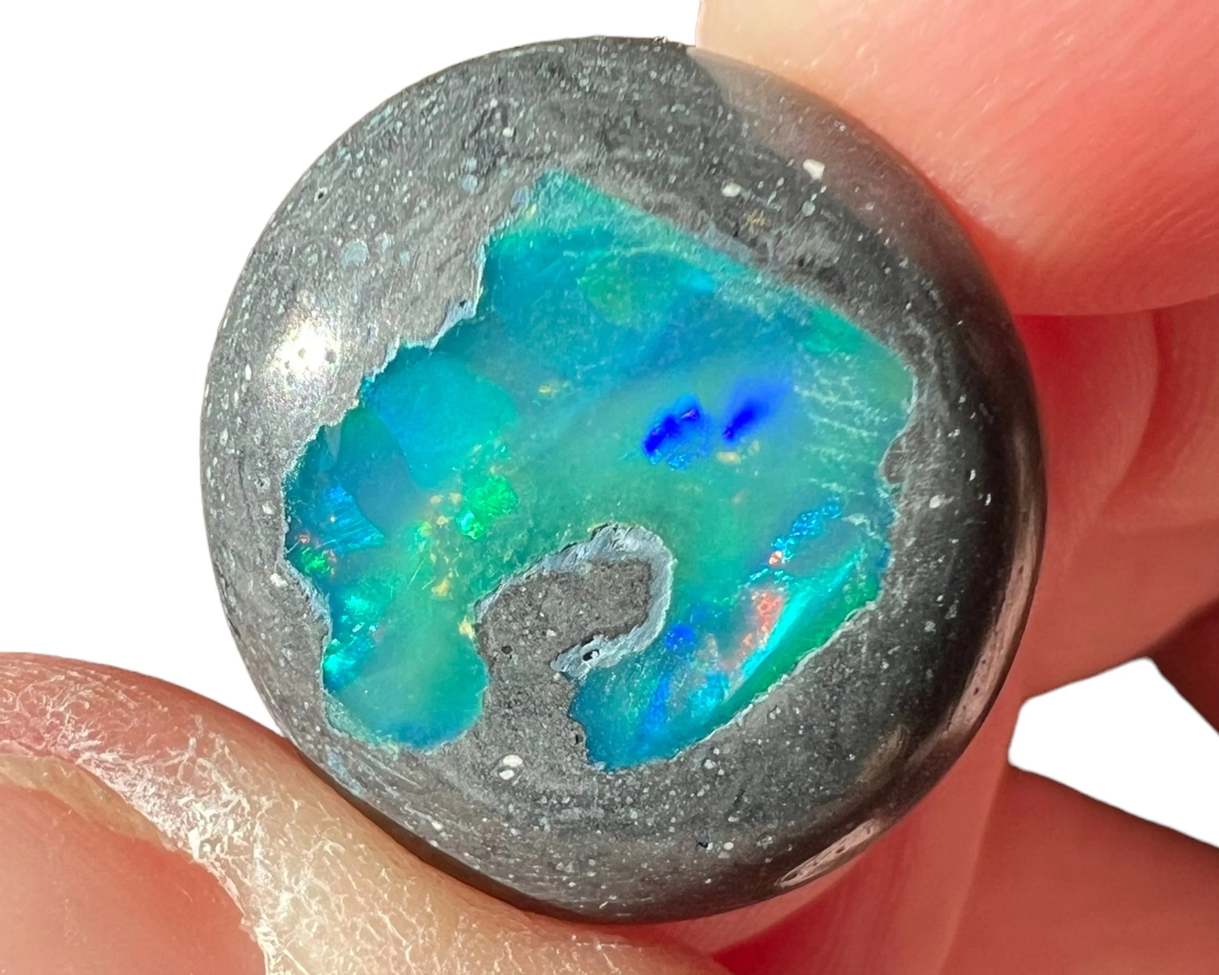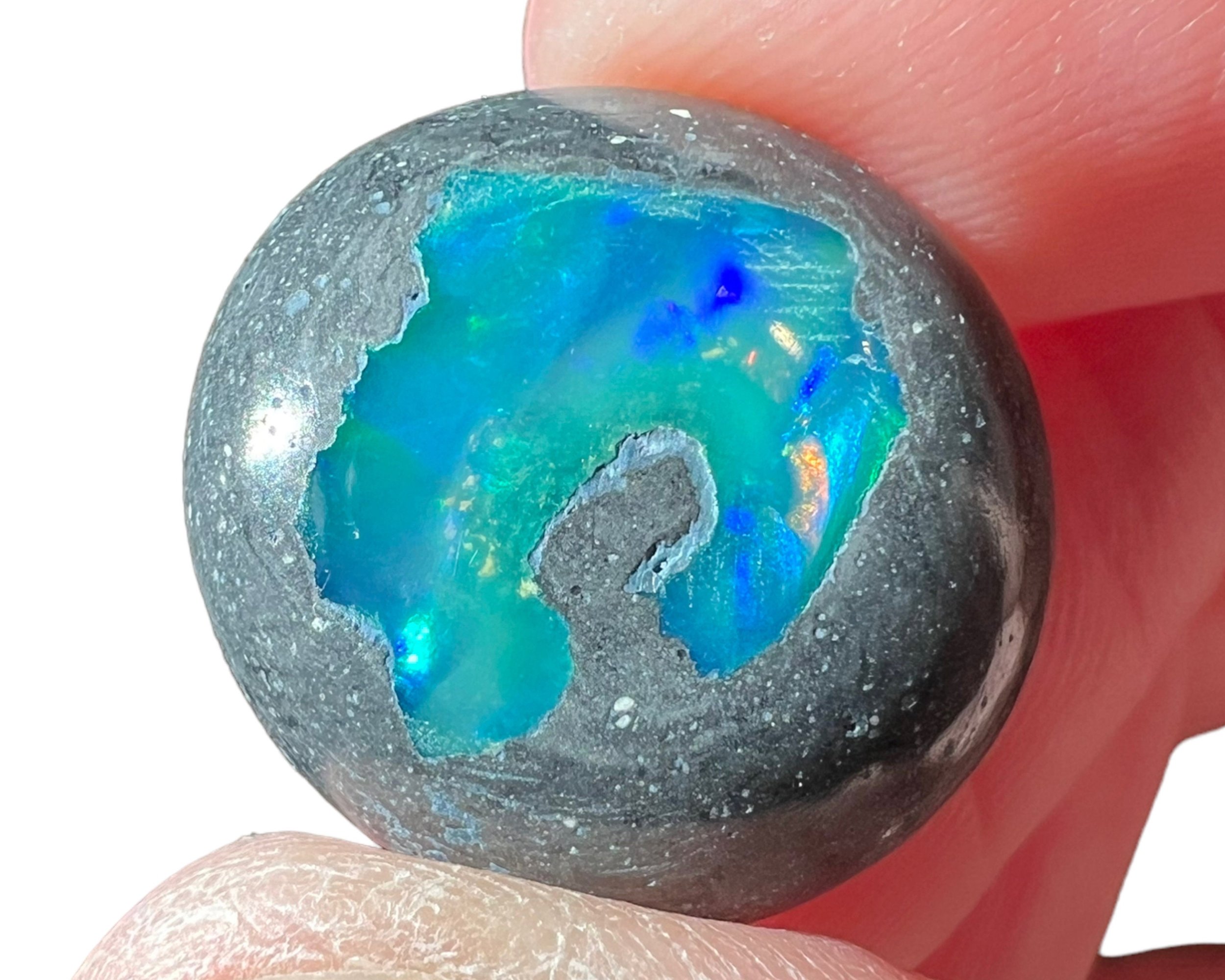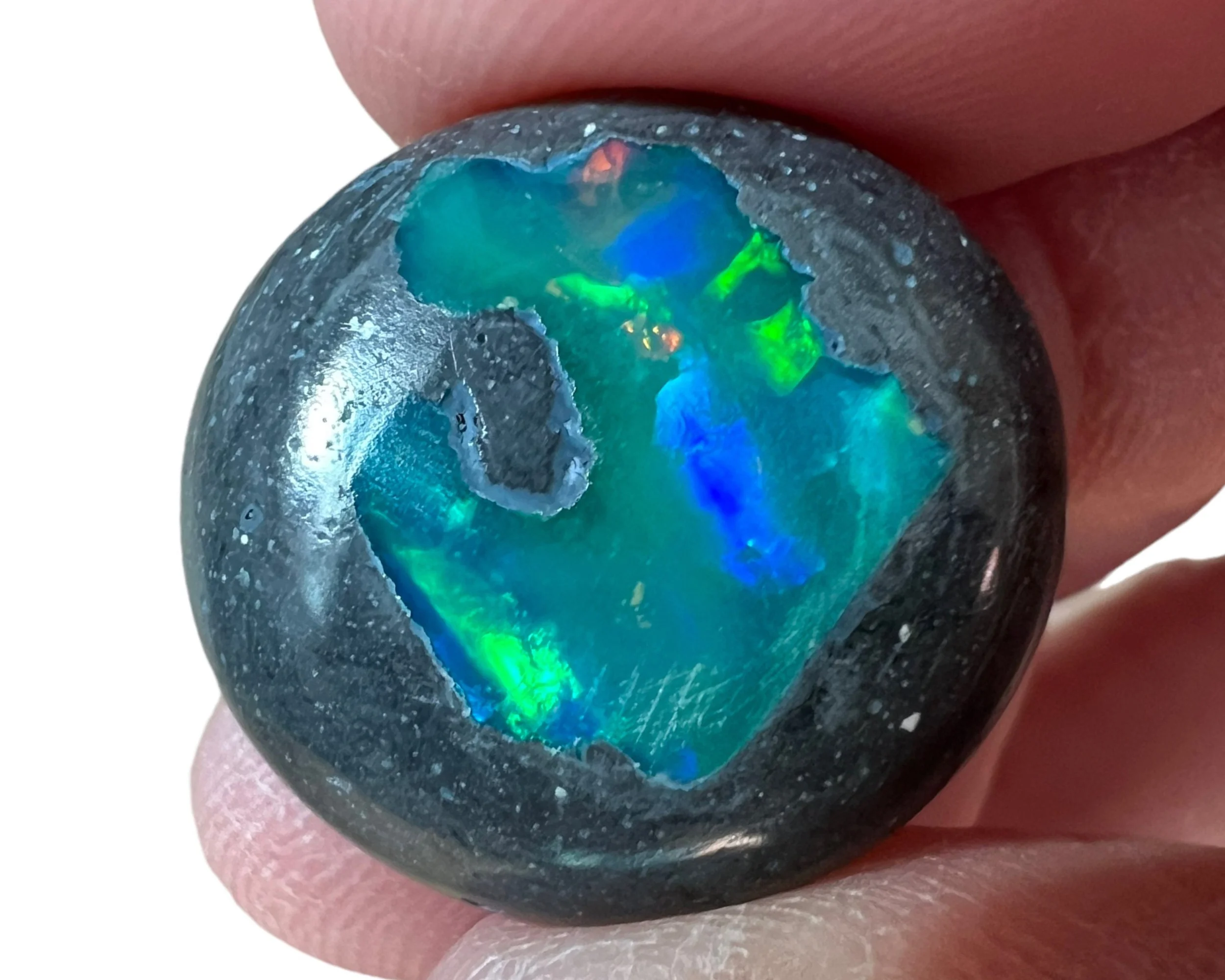 Mexican Opal in Faux Black Matrix Cabochon, Round Opal Cab, Blue Opal Stone, Real Opal #1