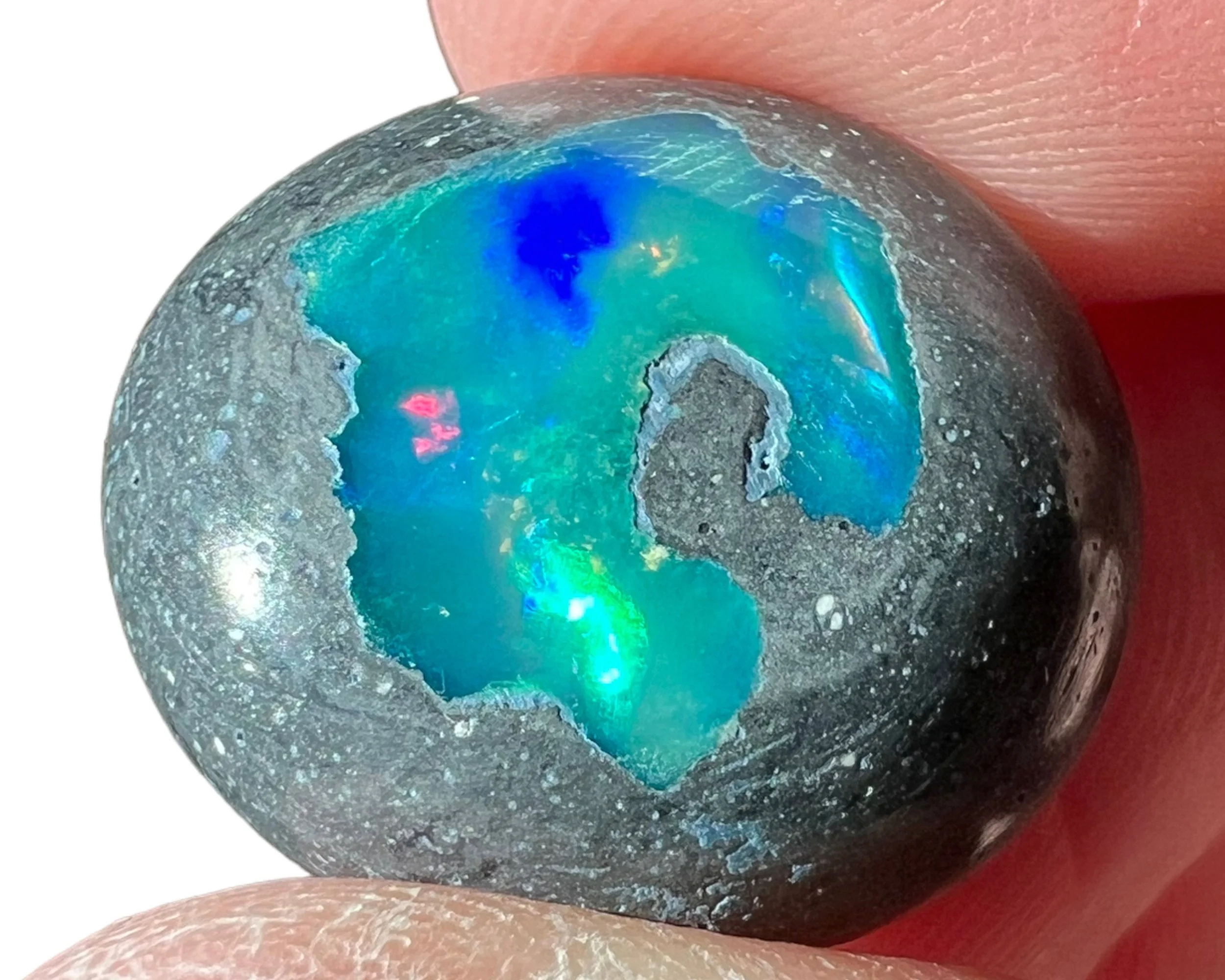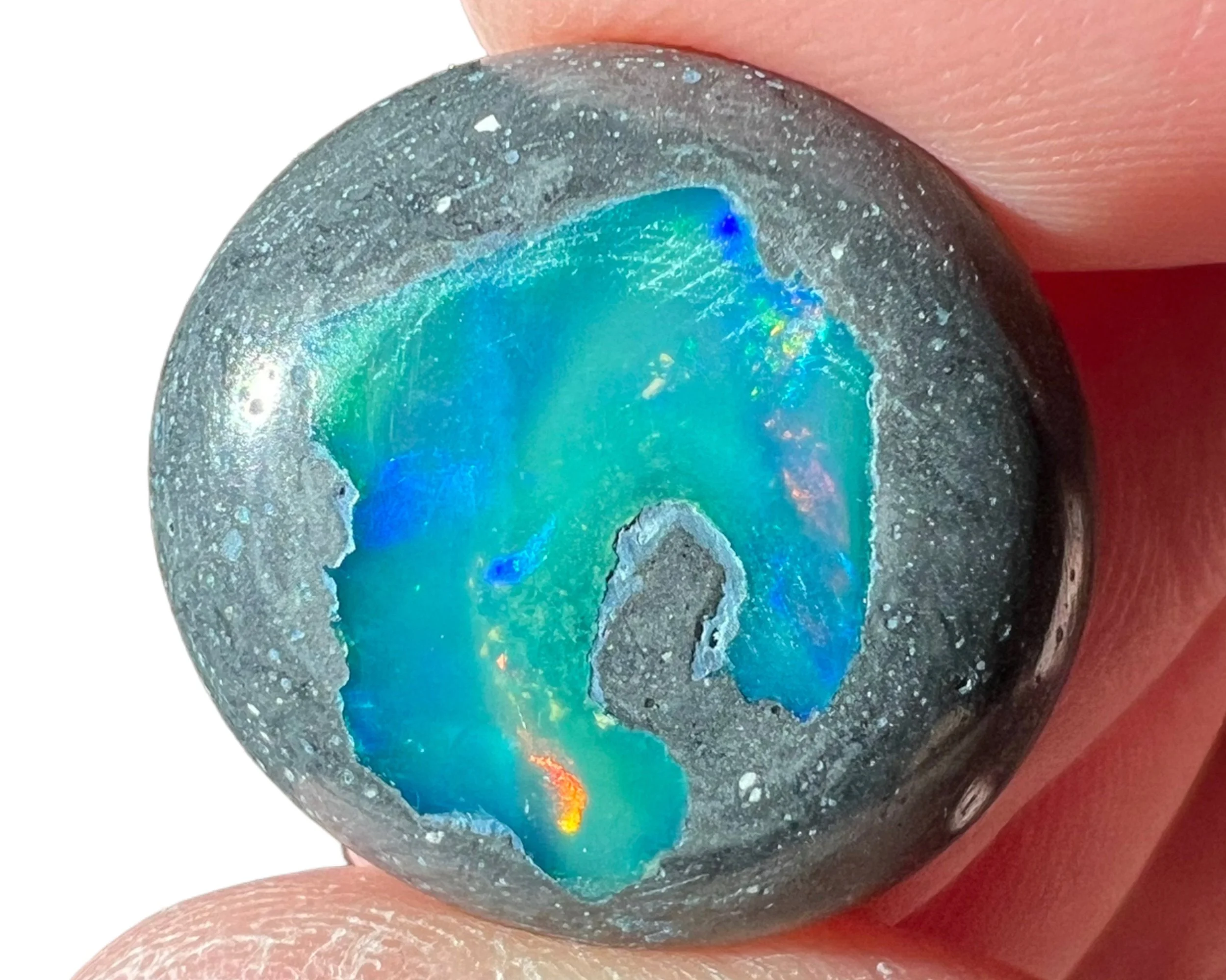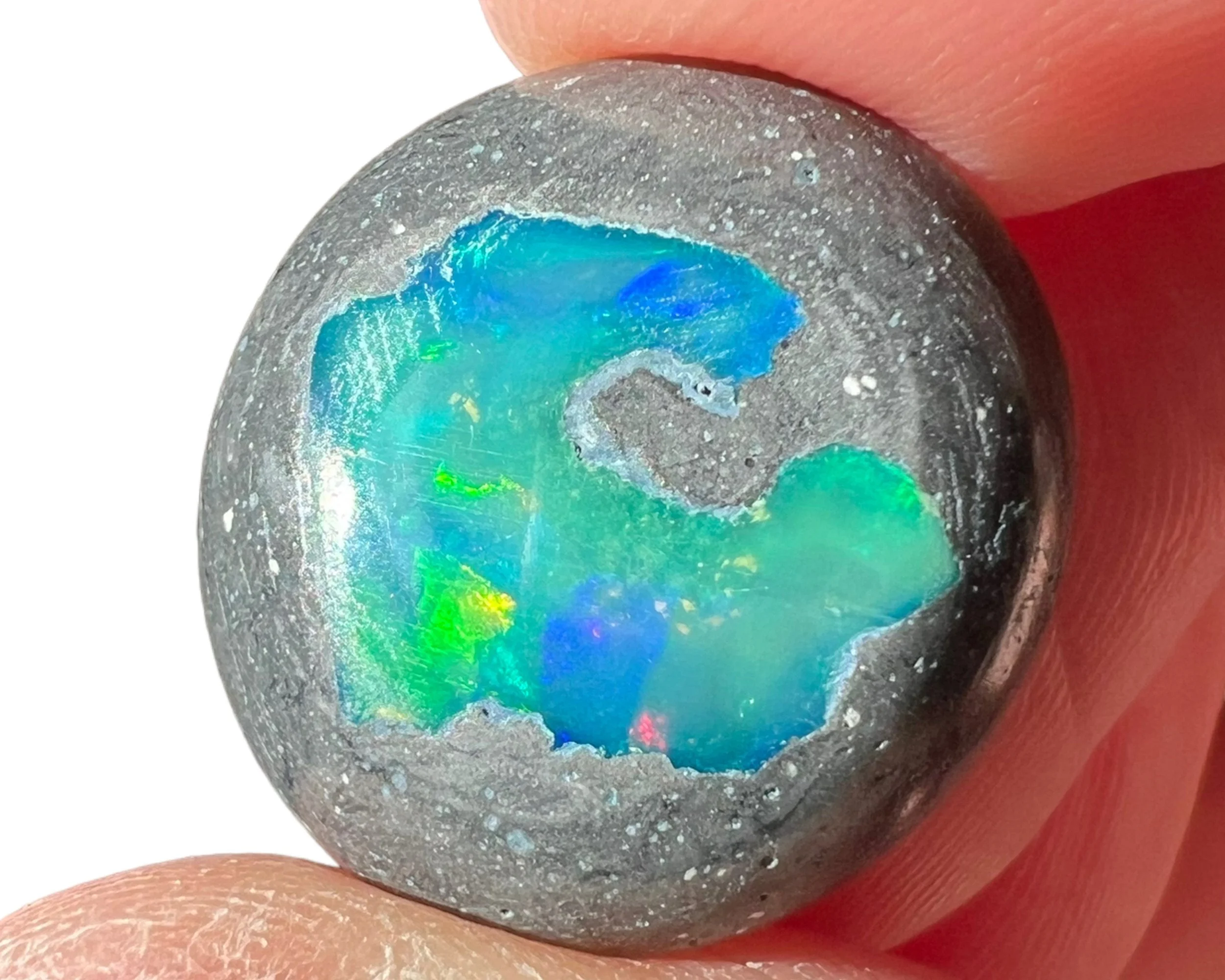 Mexican Opal in Faux Black Matrix Cabochon, Round Opal Cab, Blue Opal Stone, Real Opal #1