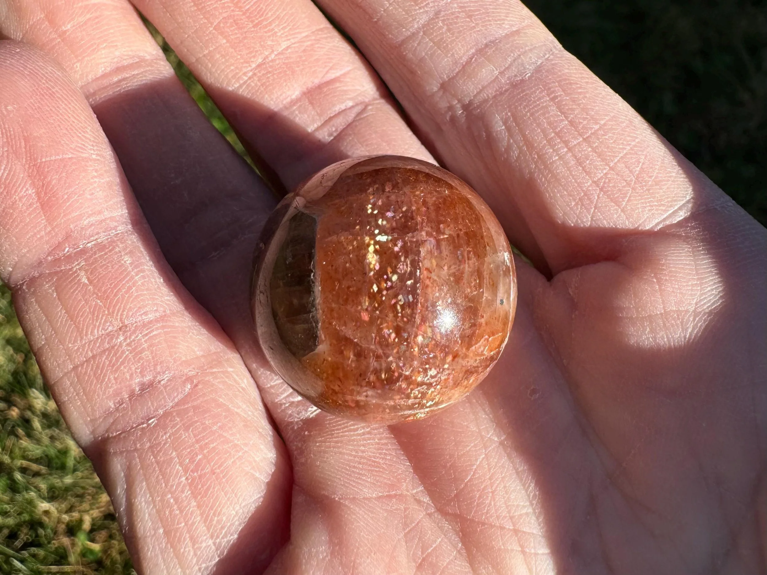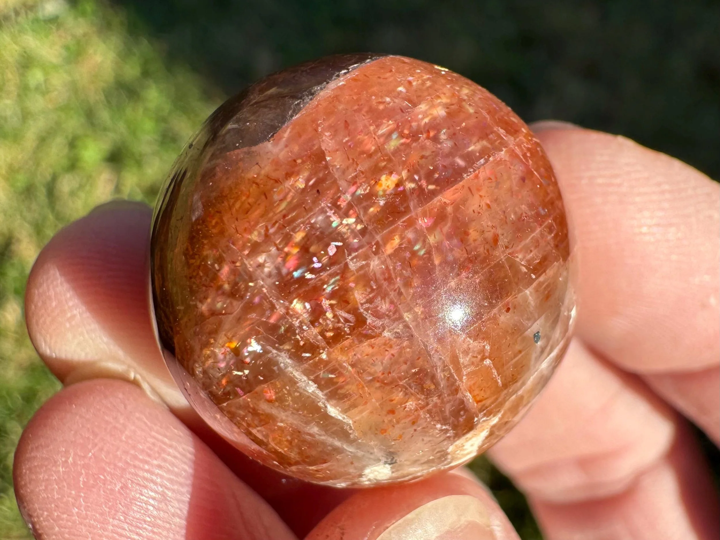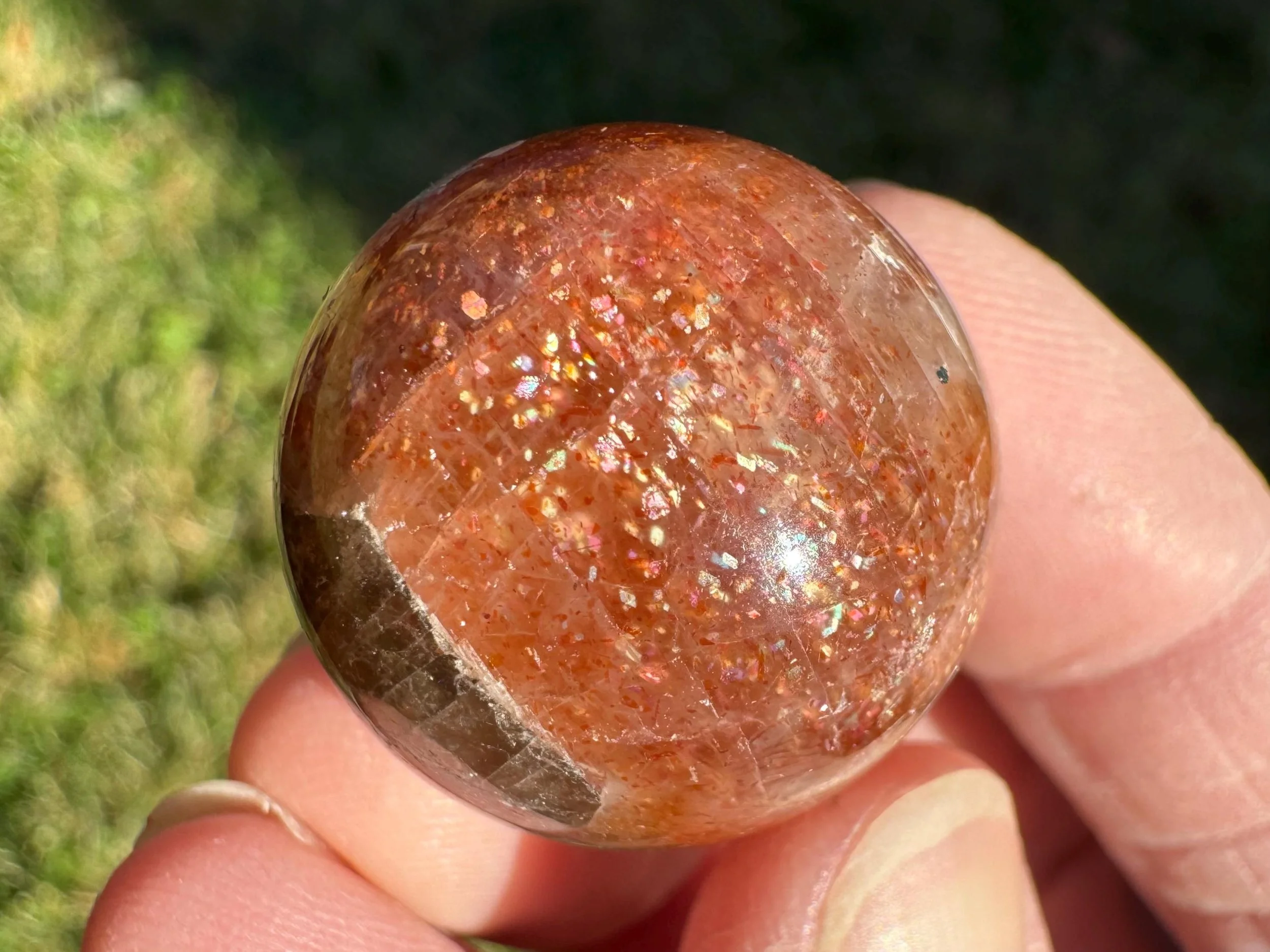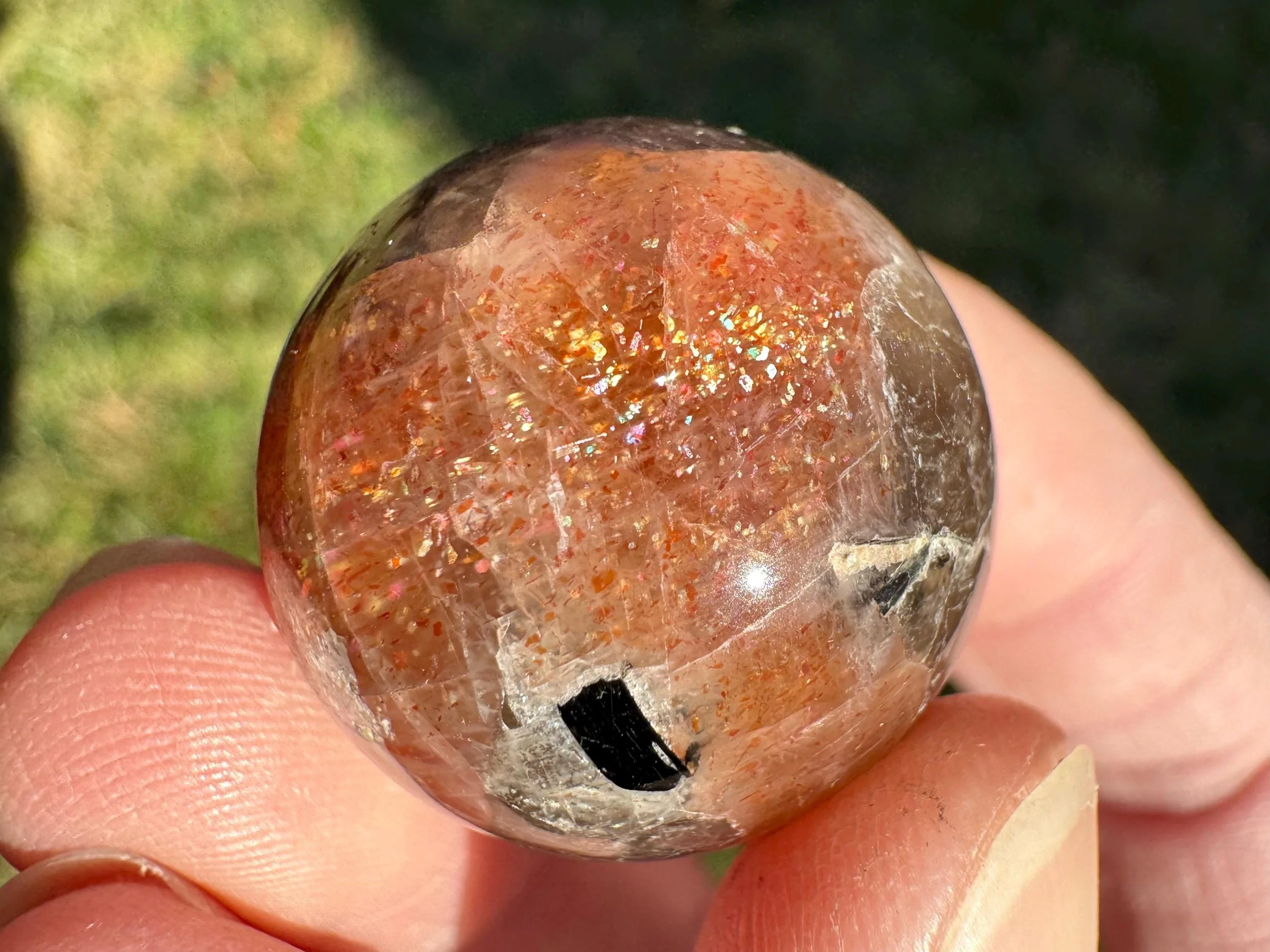 Mini 1 in Rainbow Confetti Sunstone Moonstone Sphere: Sparkly Hematite Crystal #6