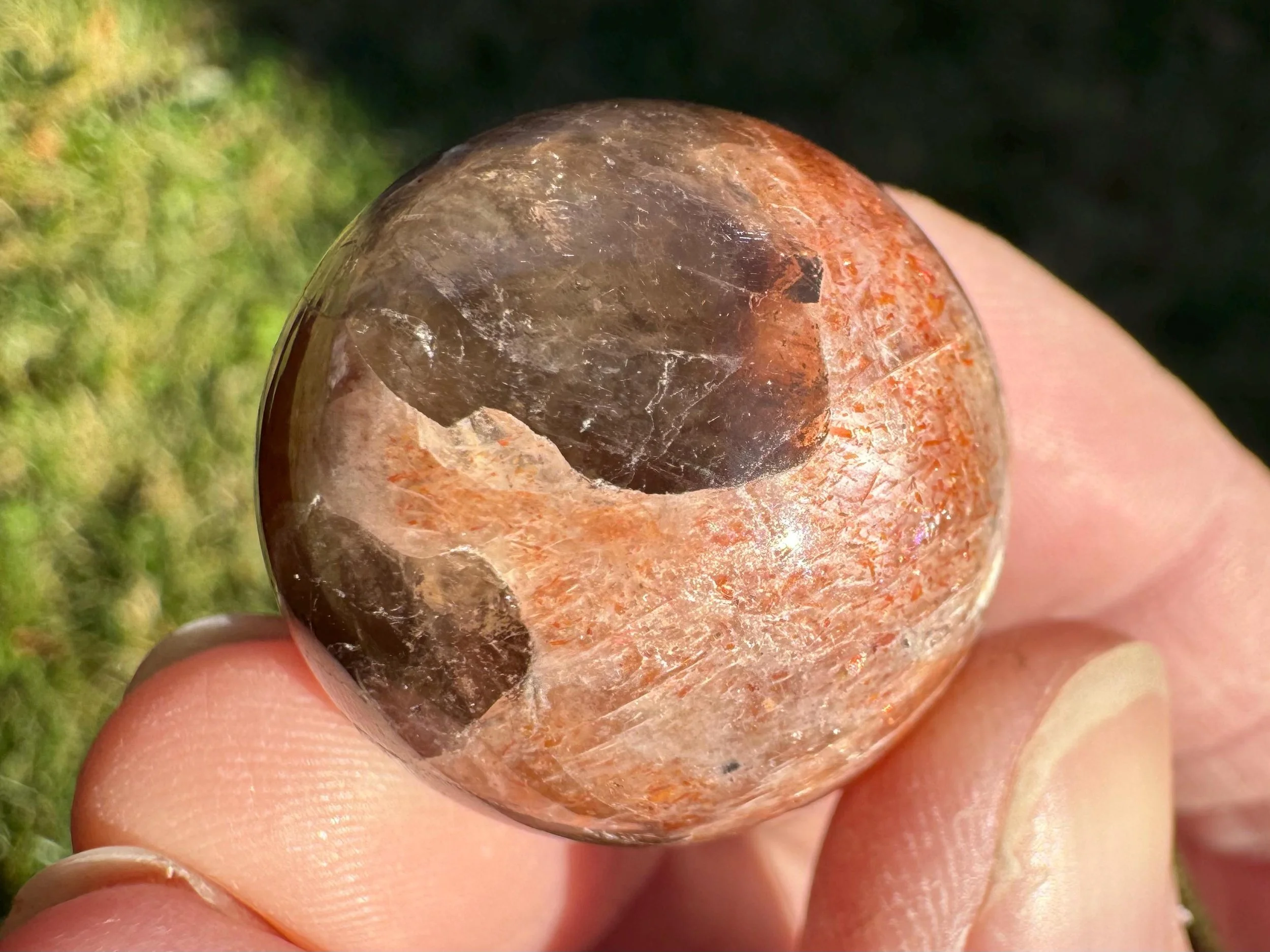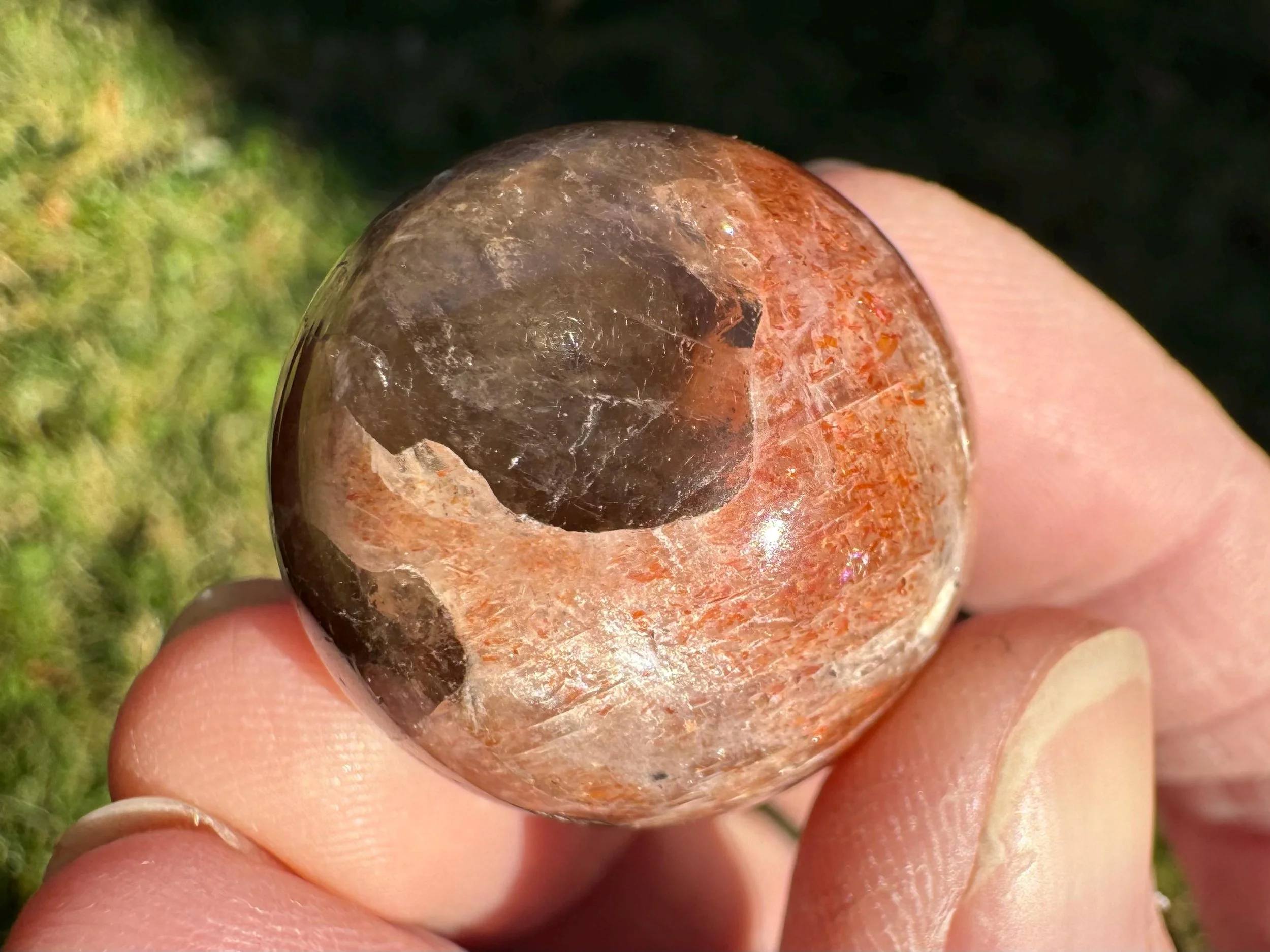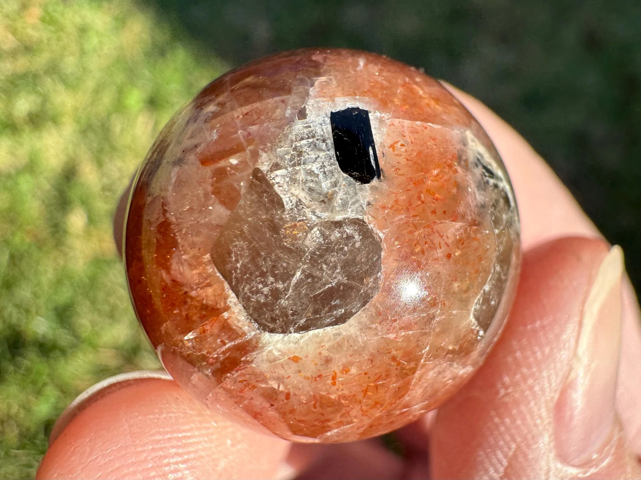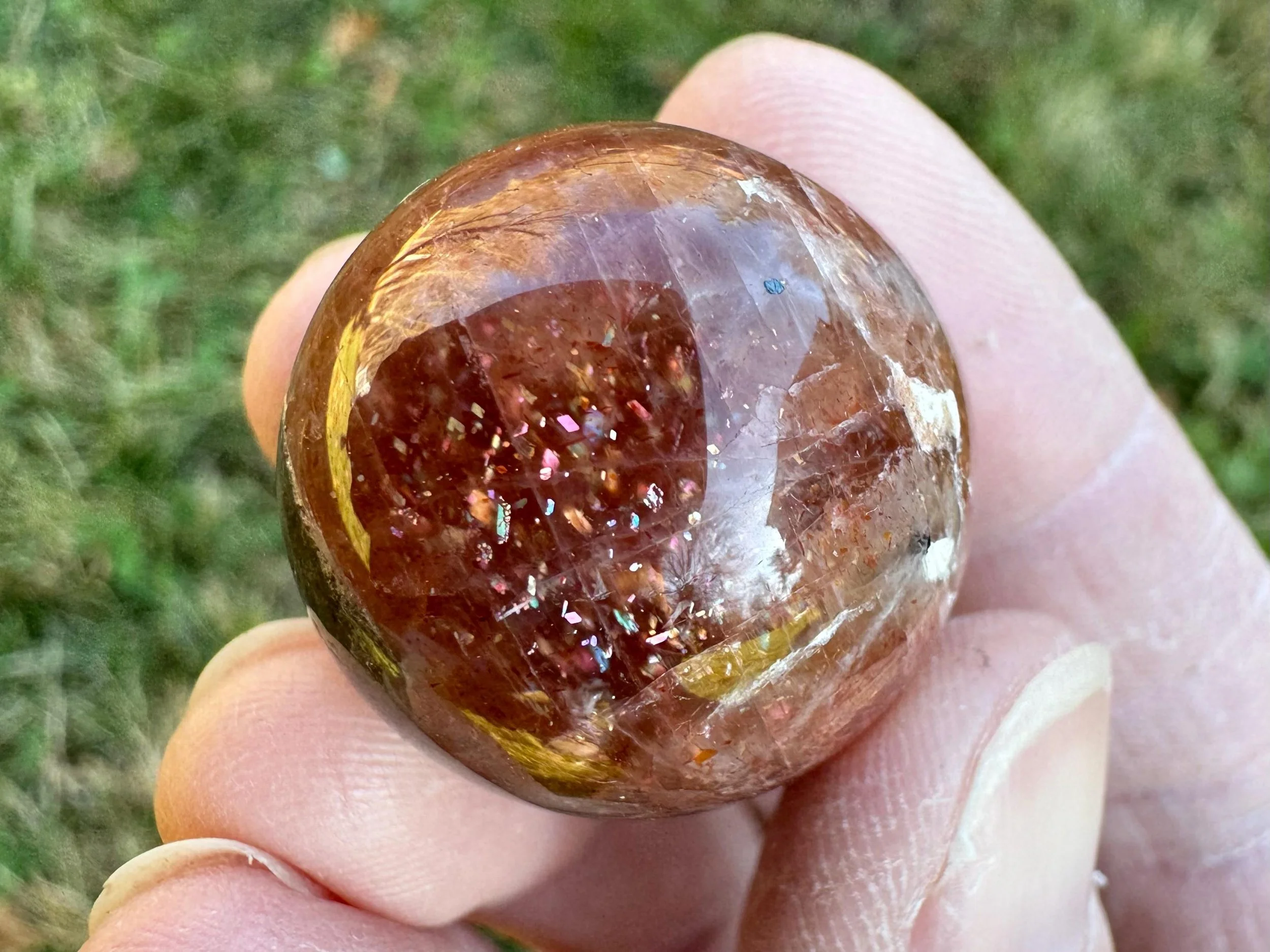 Mini 1 in Rainbow Confetti Sunstone Moonstone Sphere: Sparkly Hematite Crystal #6