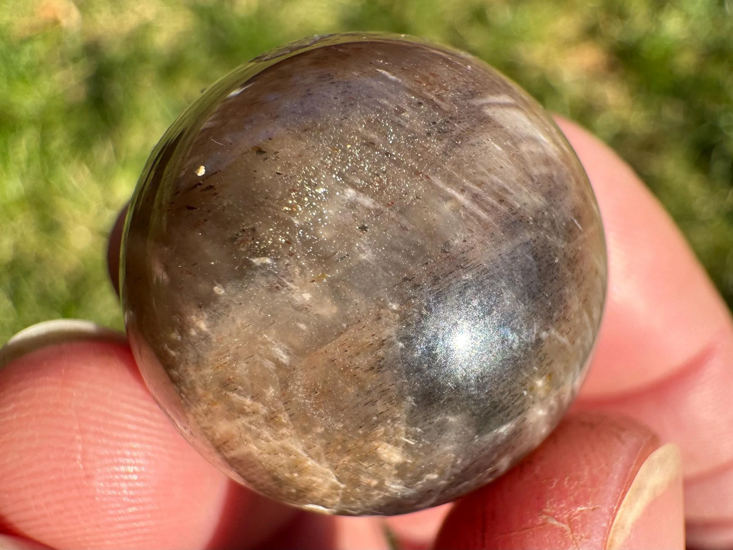 Mini Black Moonstone Sphere with Rainbow Sunstone, Golden Shimmer, Silver Flash #1