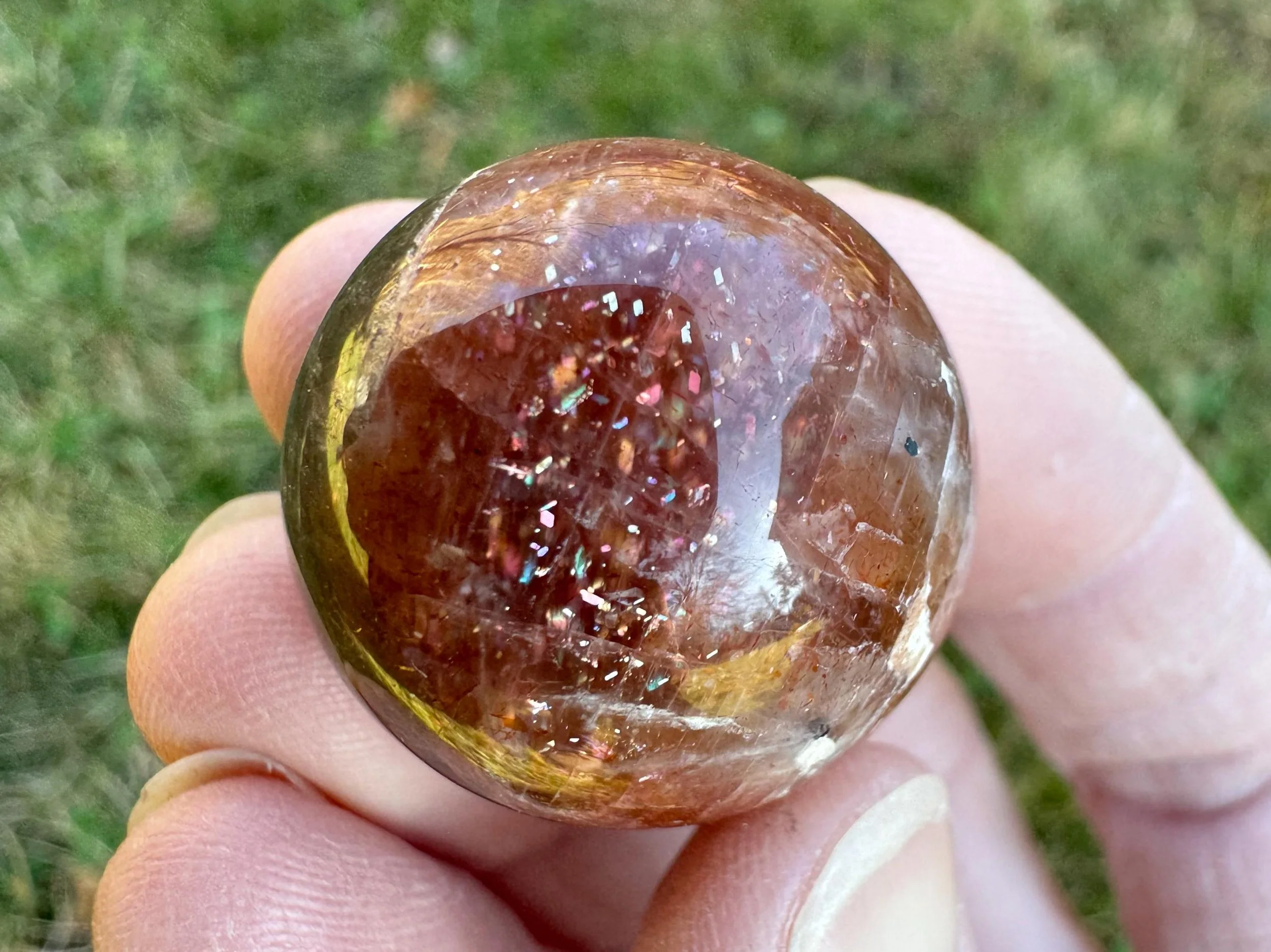 Mini Rainbow Confetti Sunstone Moonstone Sphere #6, 1" High Quality Star Sunstone, Small Crystal Ball, Sparkly Rainbow Hematite, Leo Gift