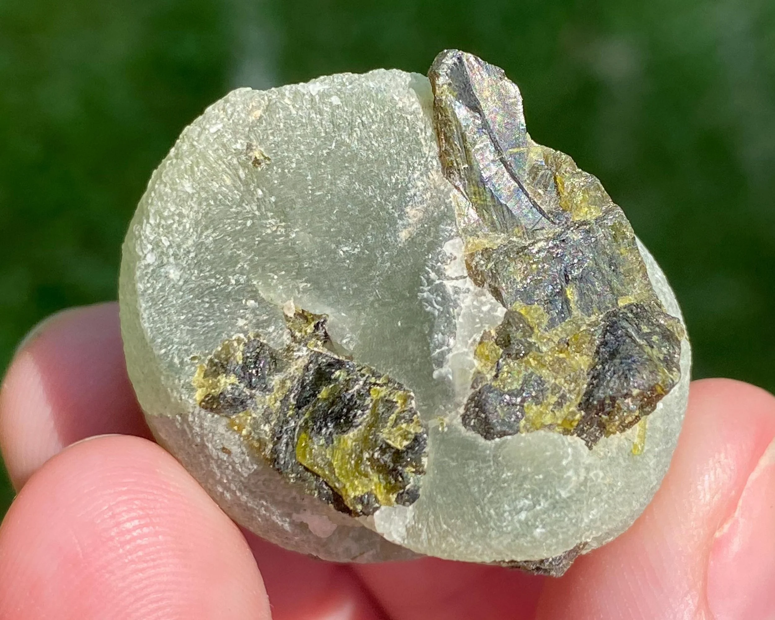 Prehnite is often used for dreaming, lucid dreaming, and a stronger connection to all things spiritual and metaphysical. Epidote is thought to boost or enhance the power of prehnite as an inclusion.