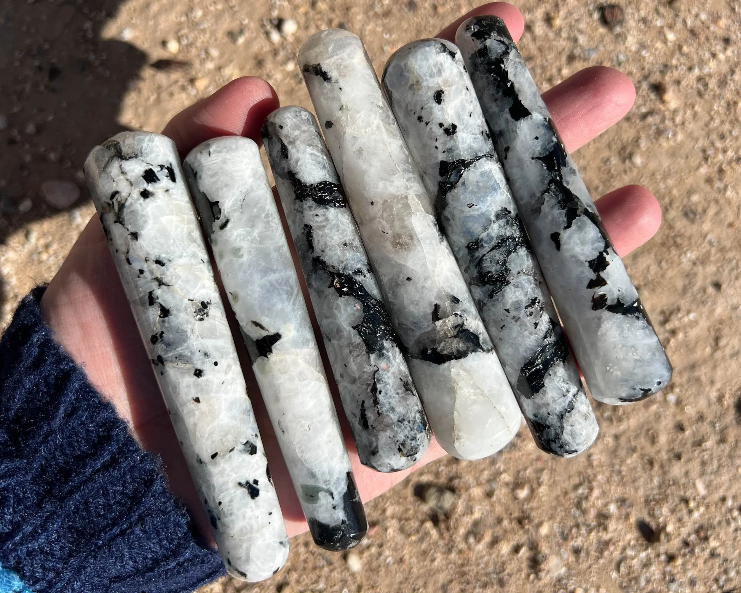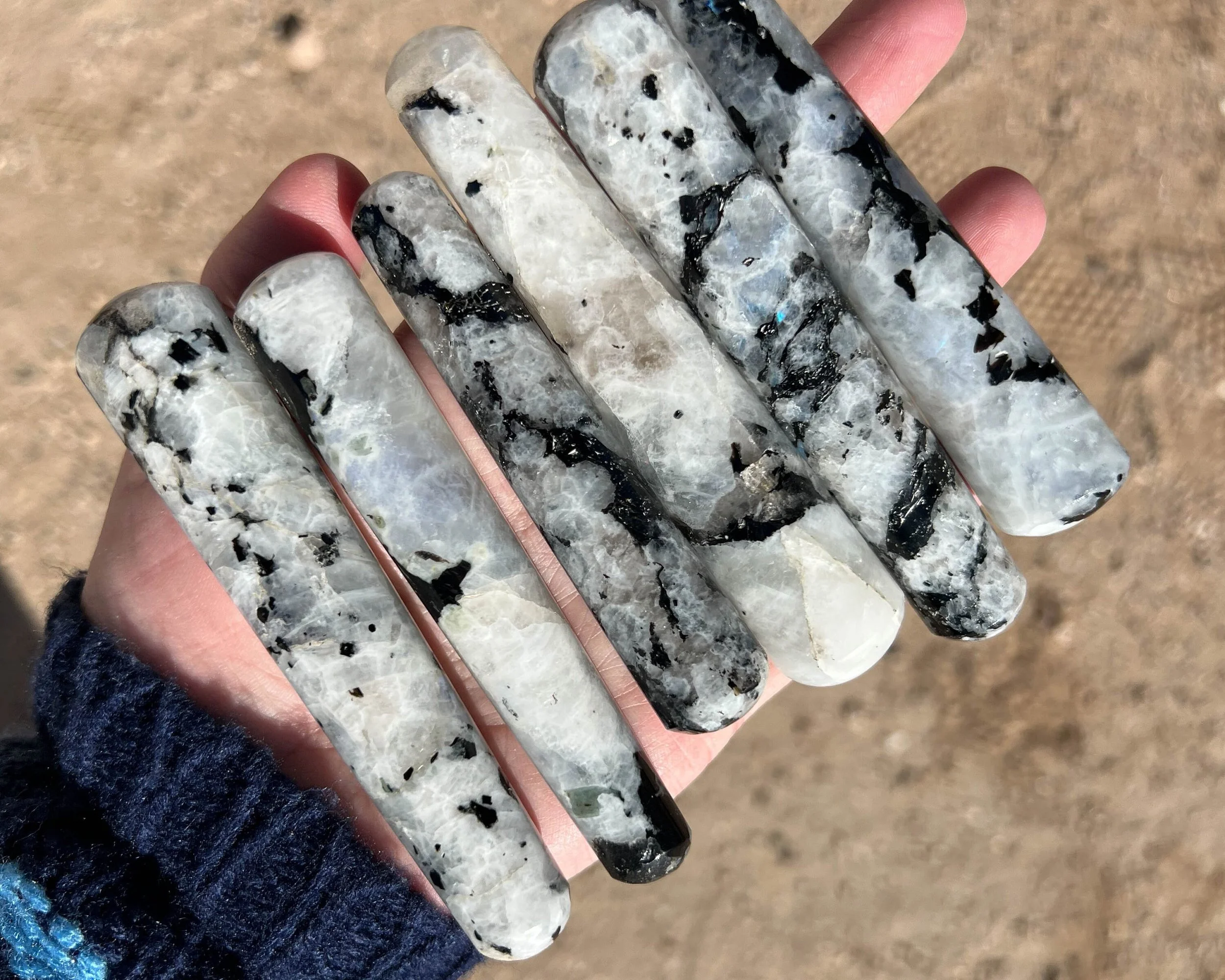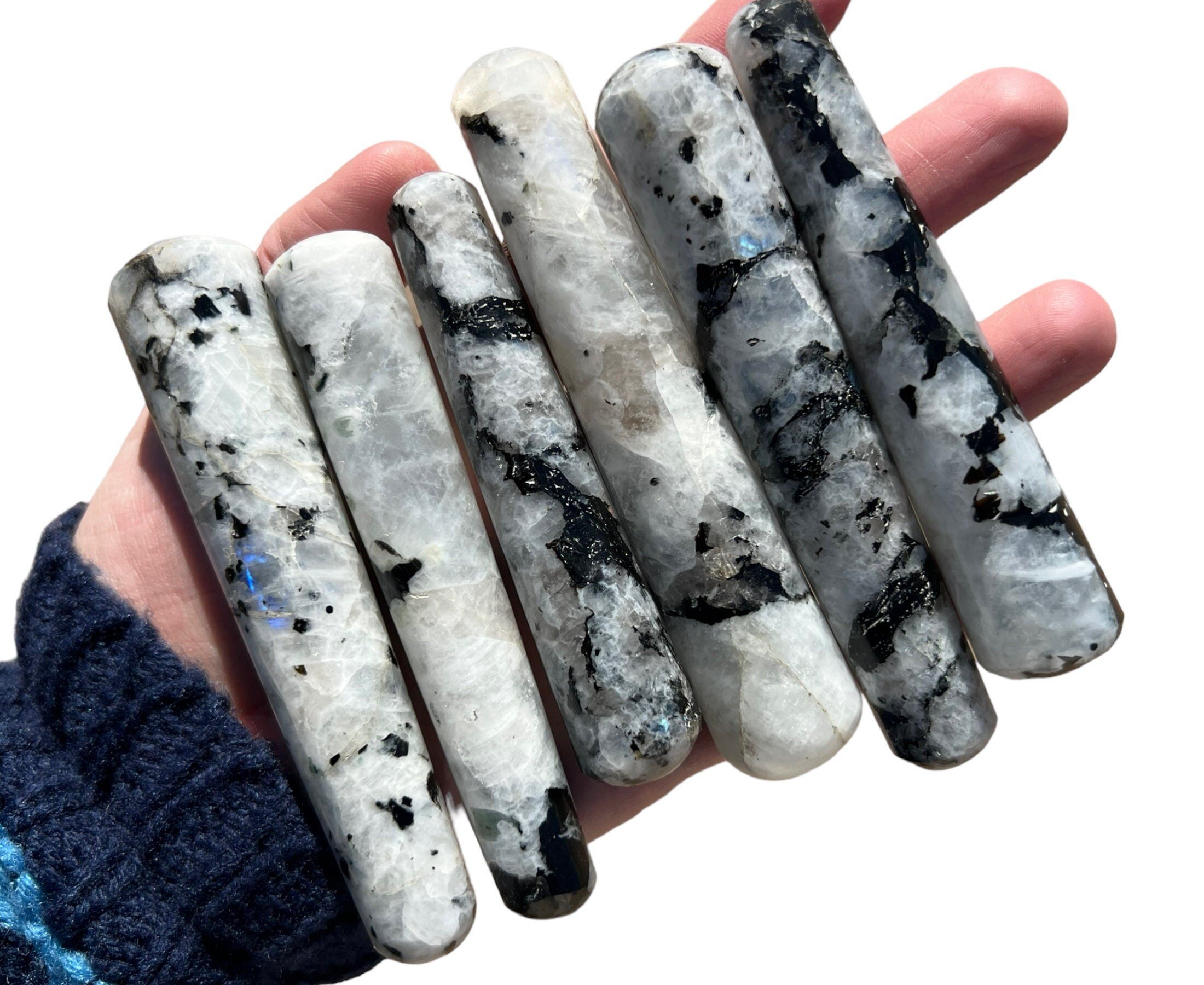 One Rainbow Moonstone Massage Wand, Crystal Wand, Flashy Moonstone, Blue Flash, Divine Feminine, Reiki Healing Wand, Gemstone Massager,
