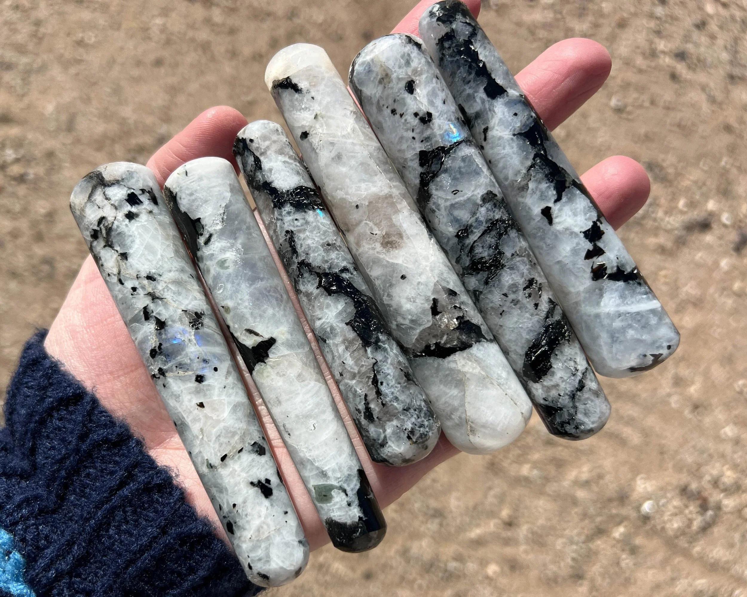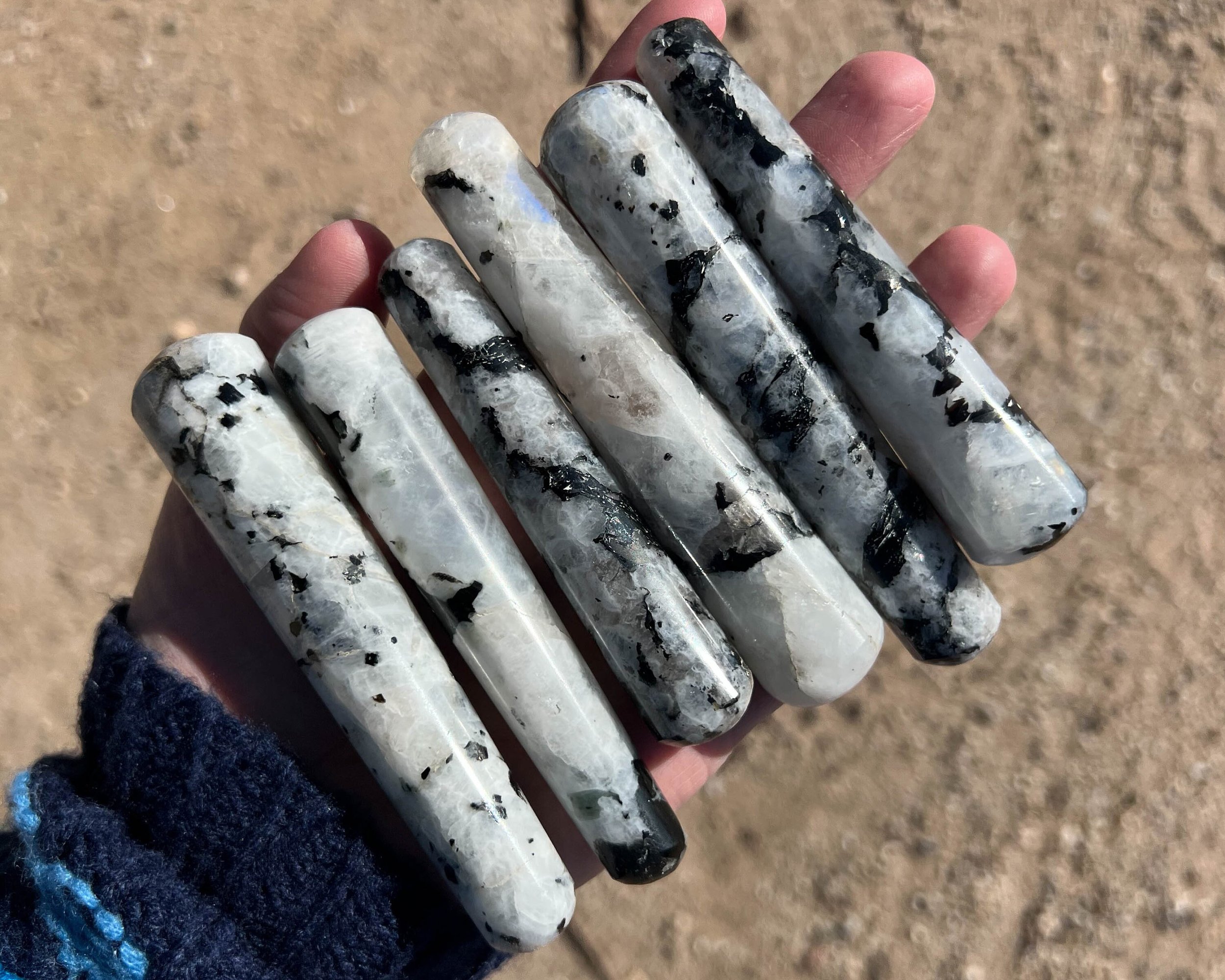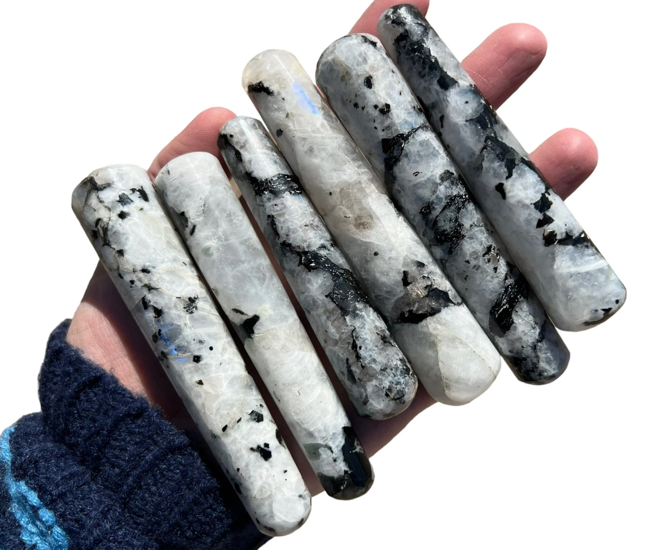 One Rainbow Moonstone Massage Wand, Crystal Wand, Flashy Moonstone, Blue Flash, Divine Feminine, Reiki Healing Wand, Gemstone Massager,
