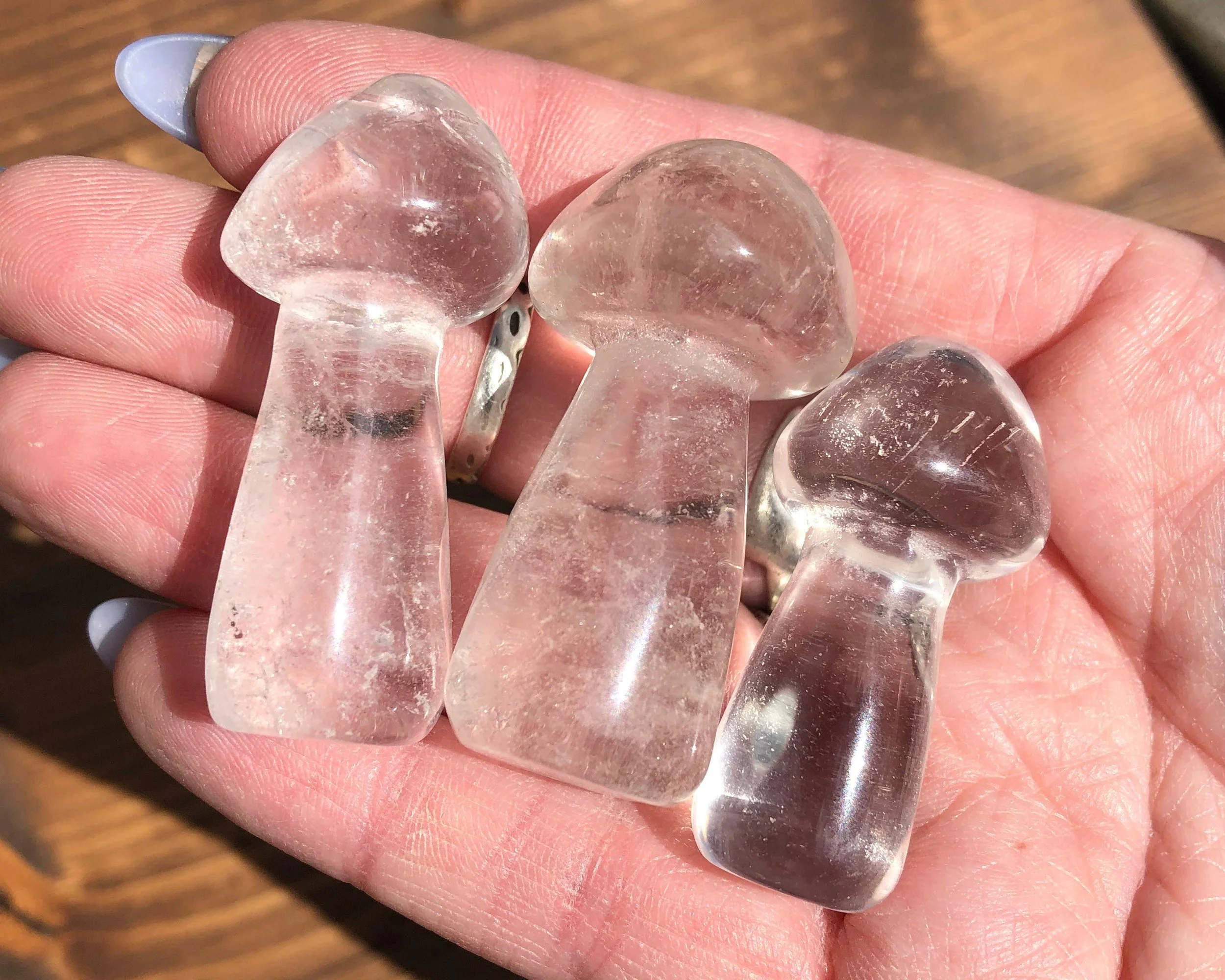 Image 1 of 8 Image 2 of 8 Image 3 of 8 Image 4 of 8 Image 5 of 8 Image 6 of 8 Image 7 of 8 Image 8 of 8 One Small Quartz Mushroom / Clear Fungi Crystal Carving $23.00 You will receive one like the ones shown Beautiful clear Quartz mushroom carvings :) they stand upright nicely. Measure 1.6 to 1.8 inches tall Thanks for looking! :) Kouva Dream Catchers <3 Quantity: Add To Cart Added! You will receive one like the ones shown Beautiful clear Quartz mushroom carvings :) they stand upright nicely. Measure 1.6 to 1.8 inches tall Thanks for looking! :) Kouva Dream Catchers <3 Reviews Reviewer Name Review Date Star Rating Description Posted on Etsy Product Show More