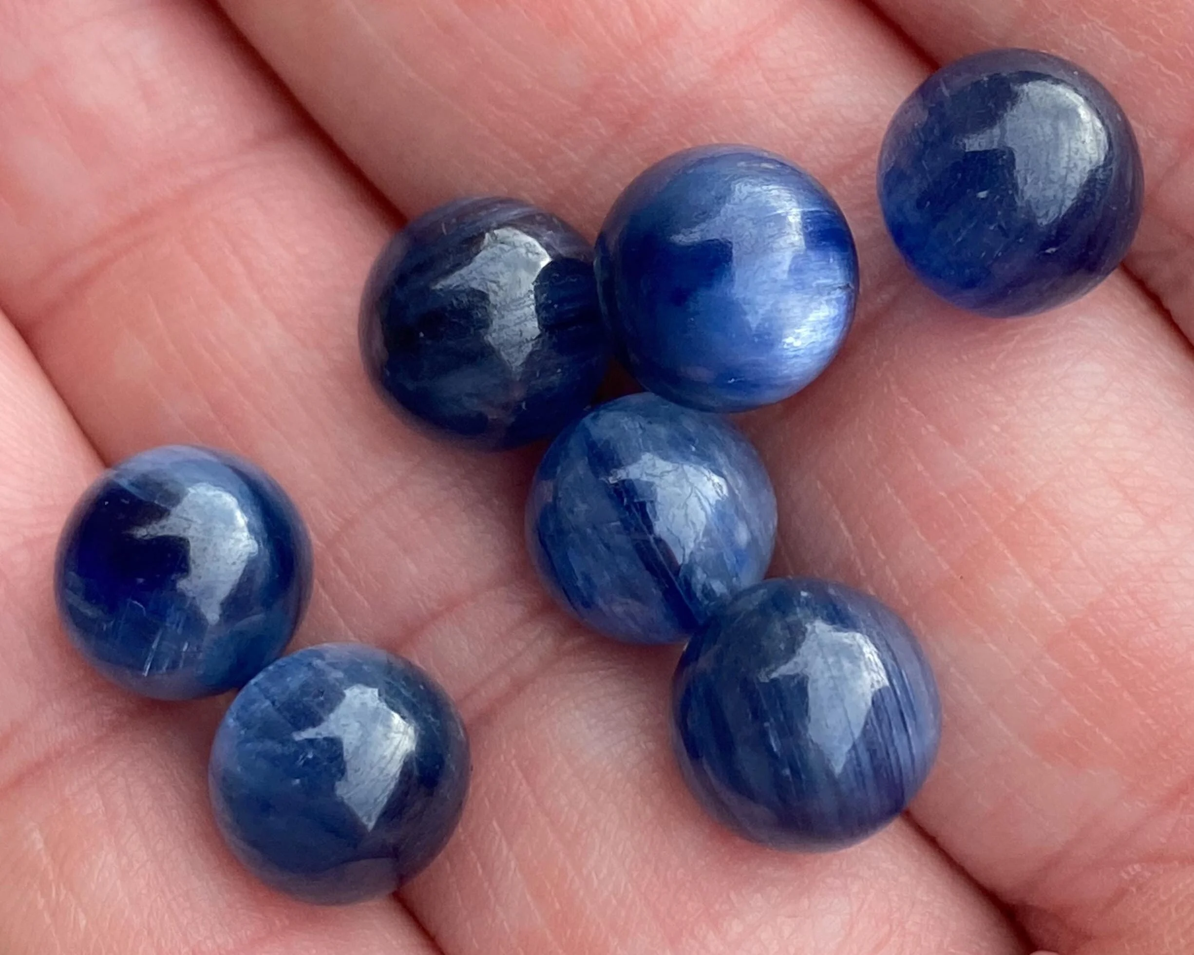 These are gorgeous, tiny spheres of chatoyant gemmy deep blue Kyanite. They have a wonderful sheen to them. They are spheres - no holes.