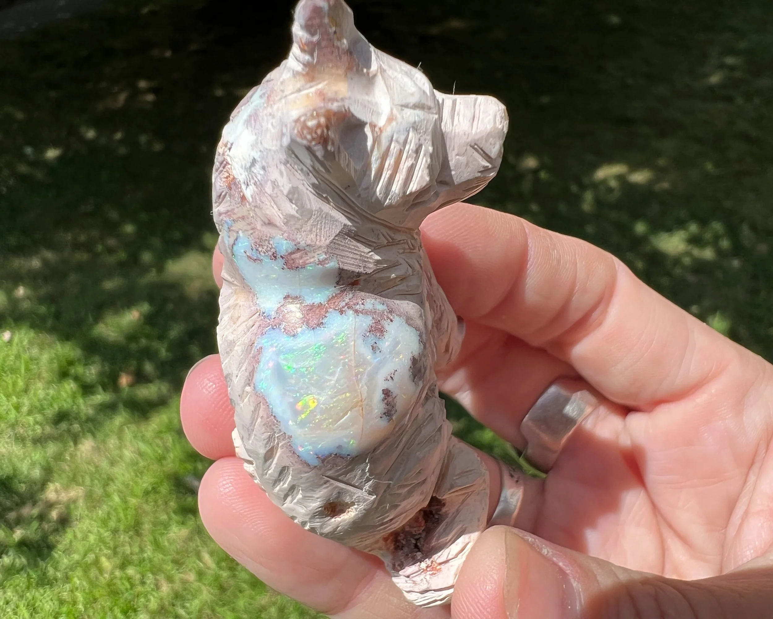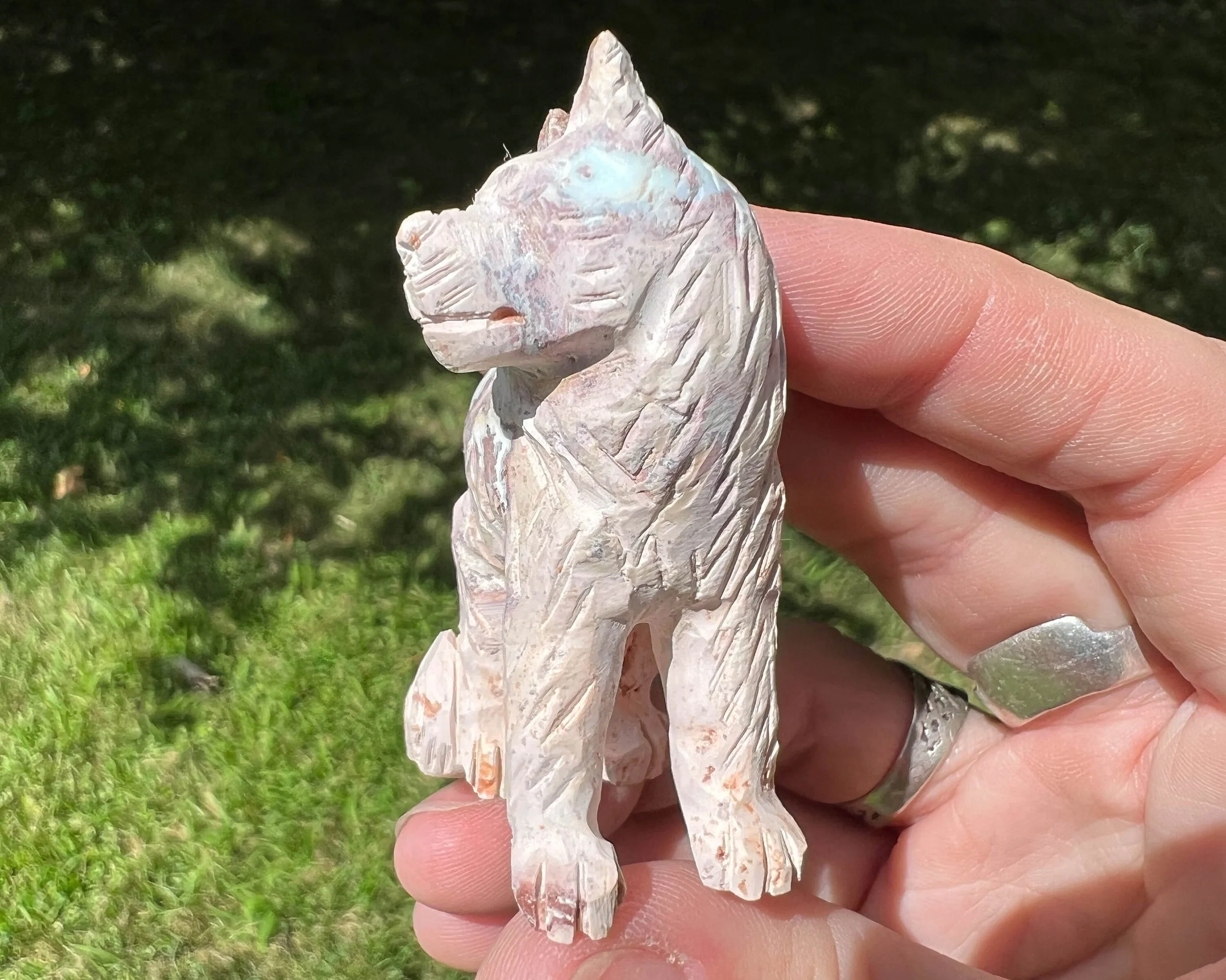Opal Wolf Carving, Mexican Fire Opal in Matrix, Hand Carved Gemstone Wolf, Dog Figurine, Crystal Carving, Crystal Wolf Gift, Spirit Animal 7