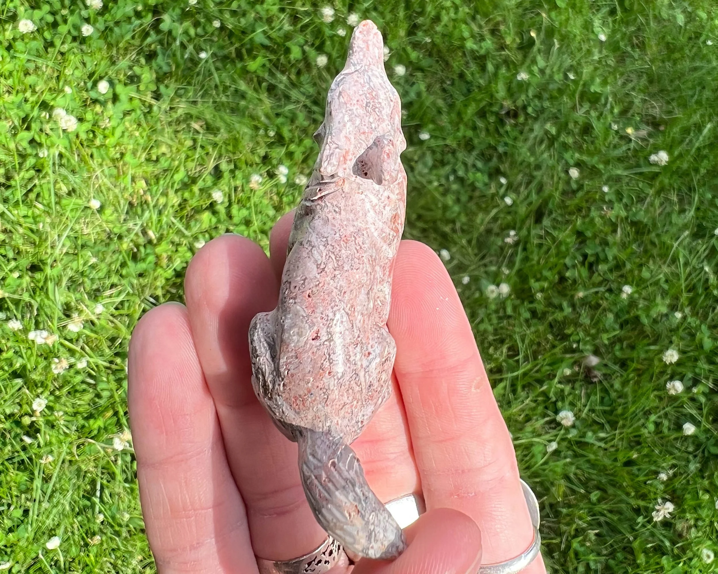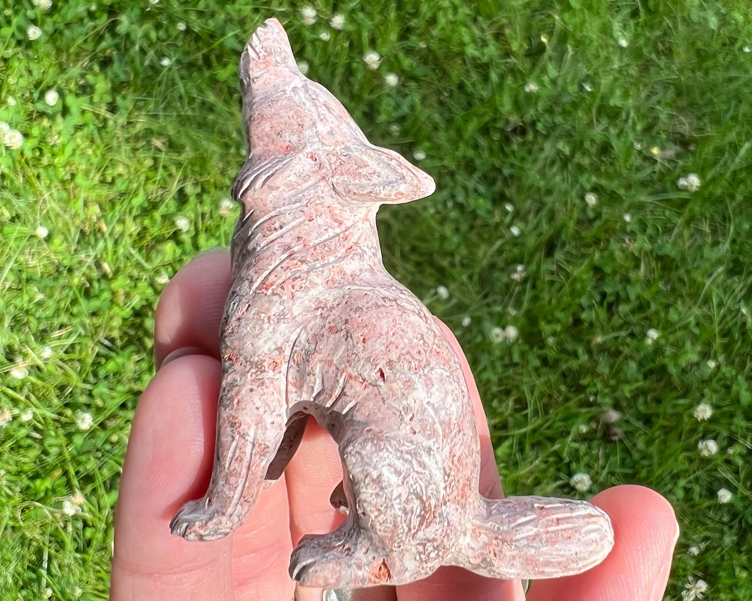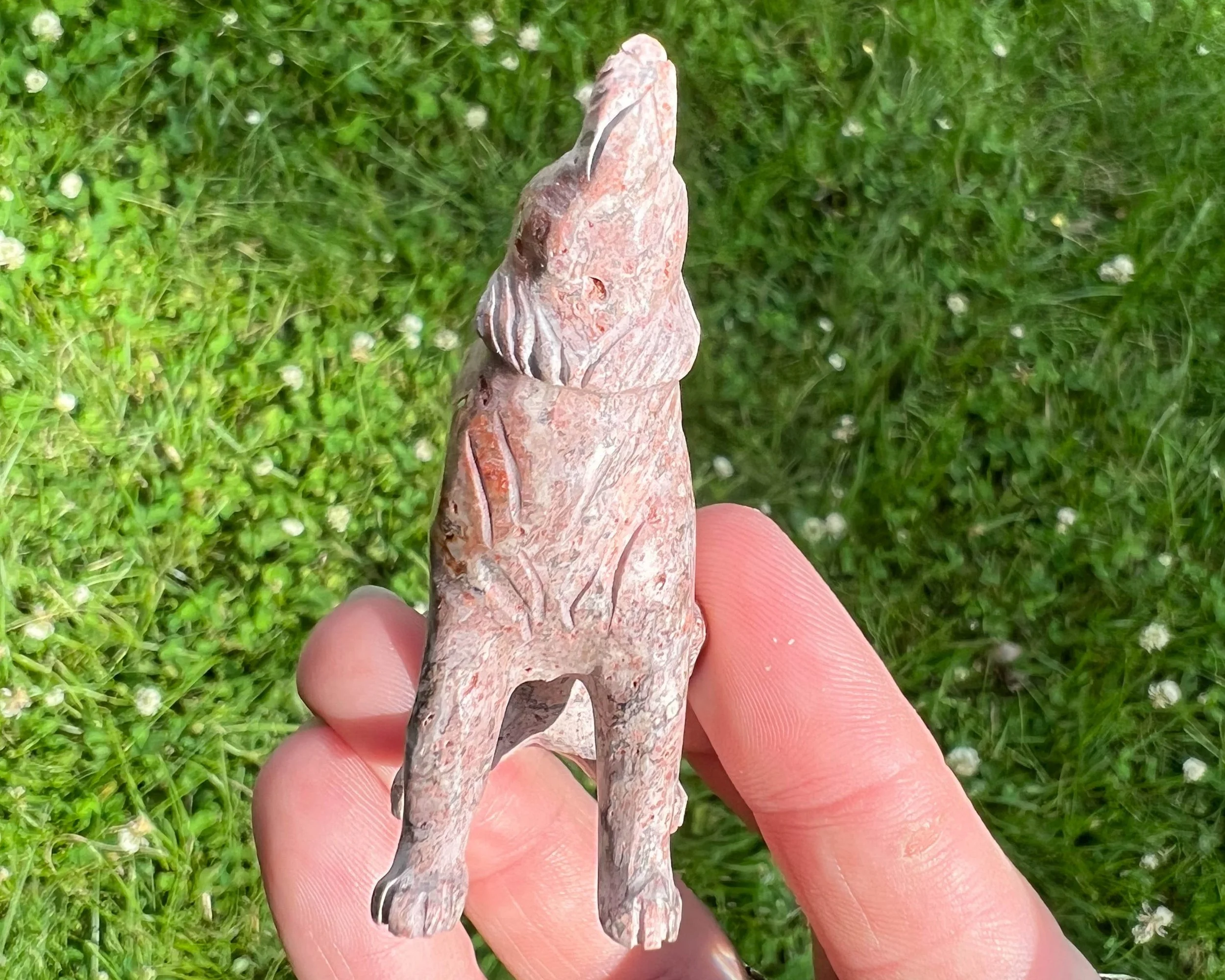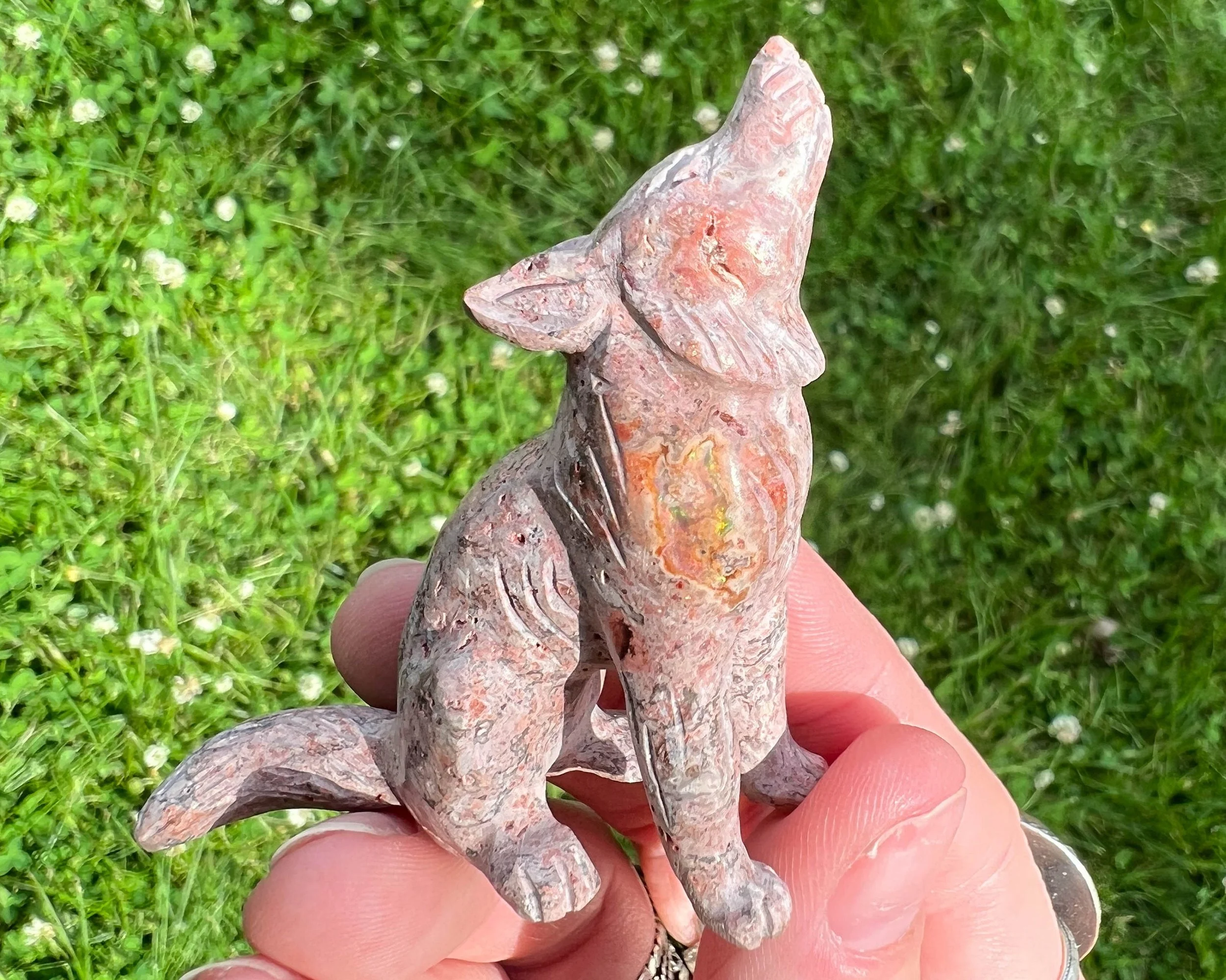 Opal Wolf Carving, Mexican Fire Opal in Matrix, Hand Carved Gemstone Wolf, Howling Wolf Figurine, Fox Crystal Carving, Crystal Wolf Gift#2