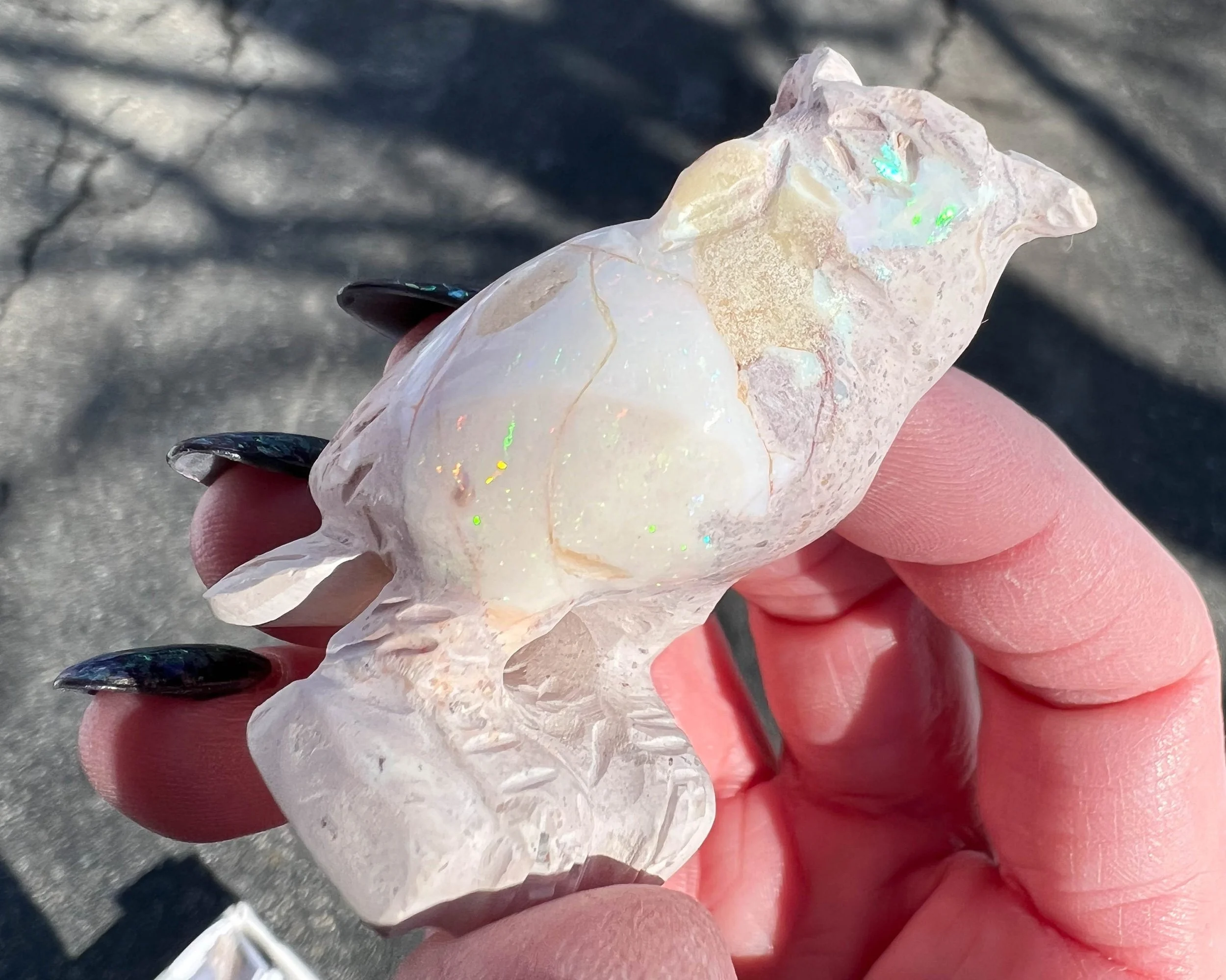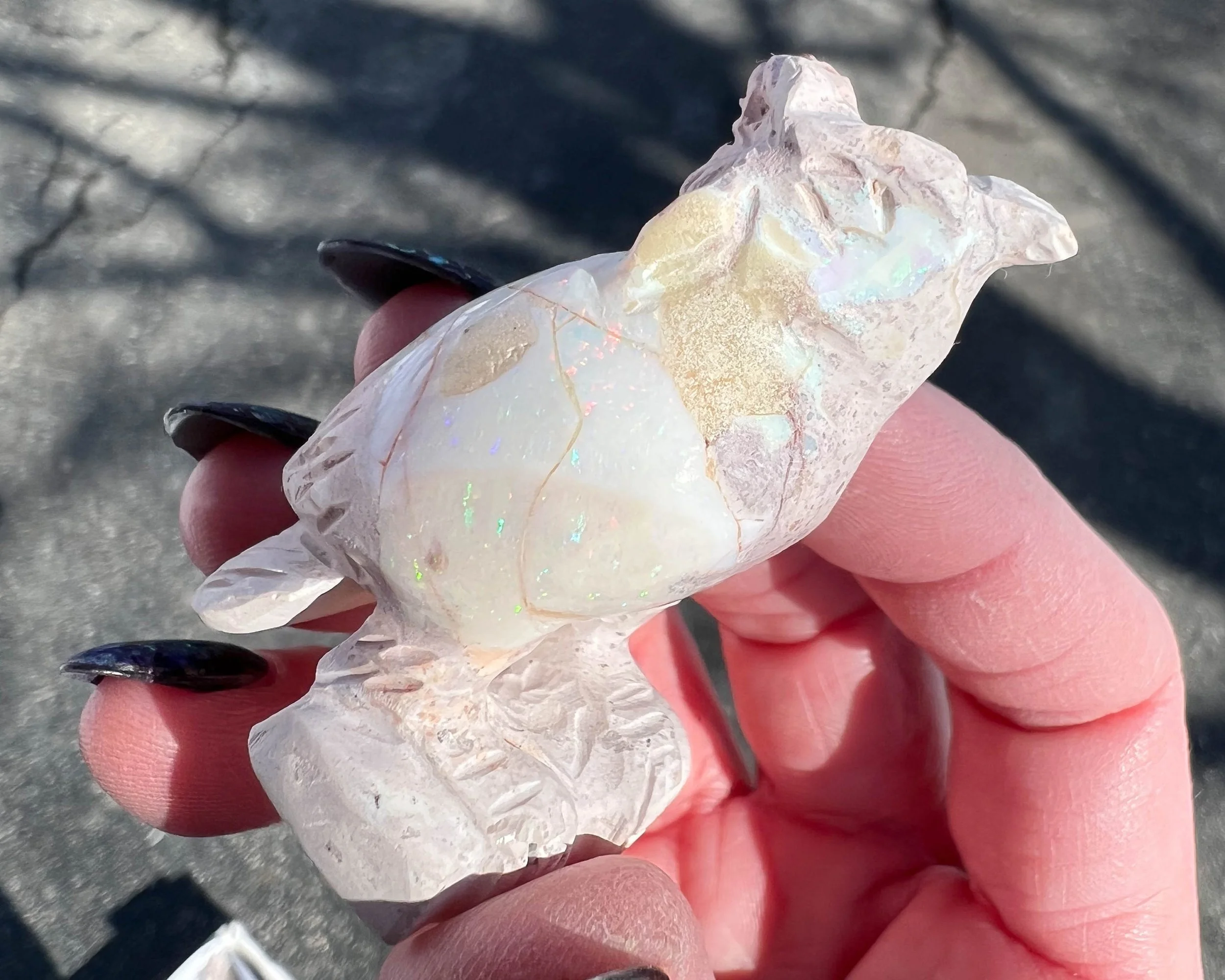 Owl Opal Carving, Mexican Opal in Matrix, Owl Figurine, Gemstone Carving, October Birthstone Gift for Her, Graduation Gift, Spirit Animal