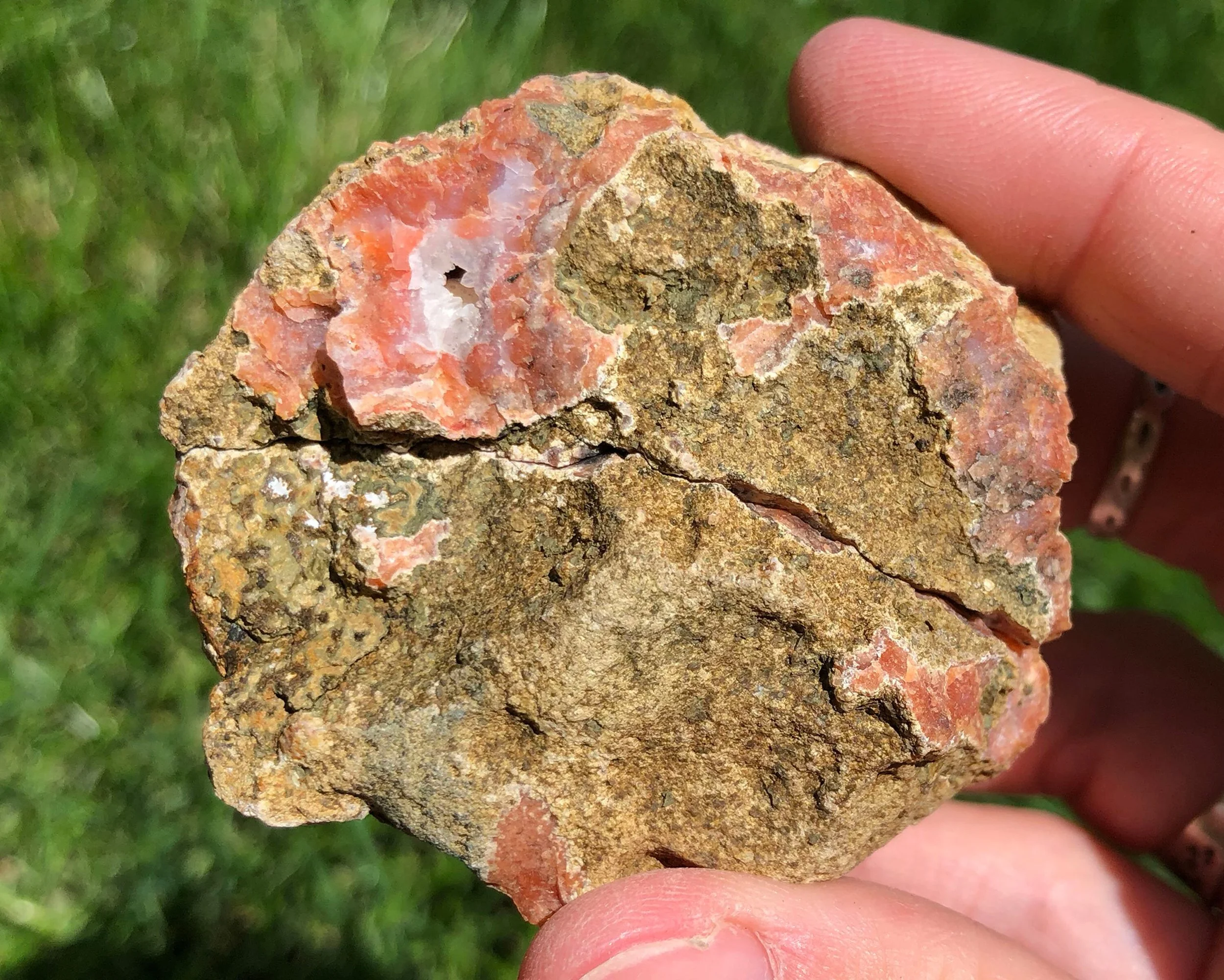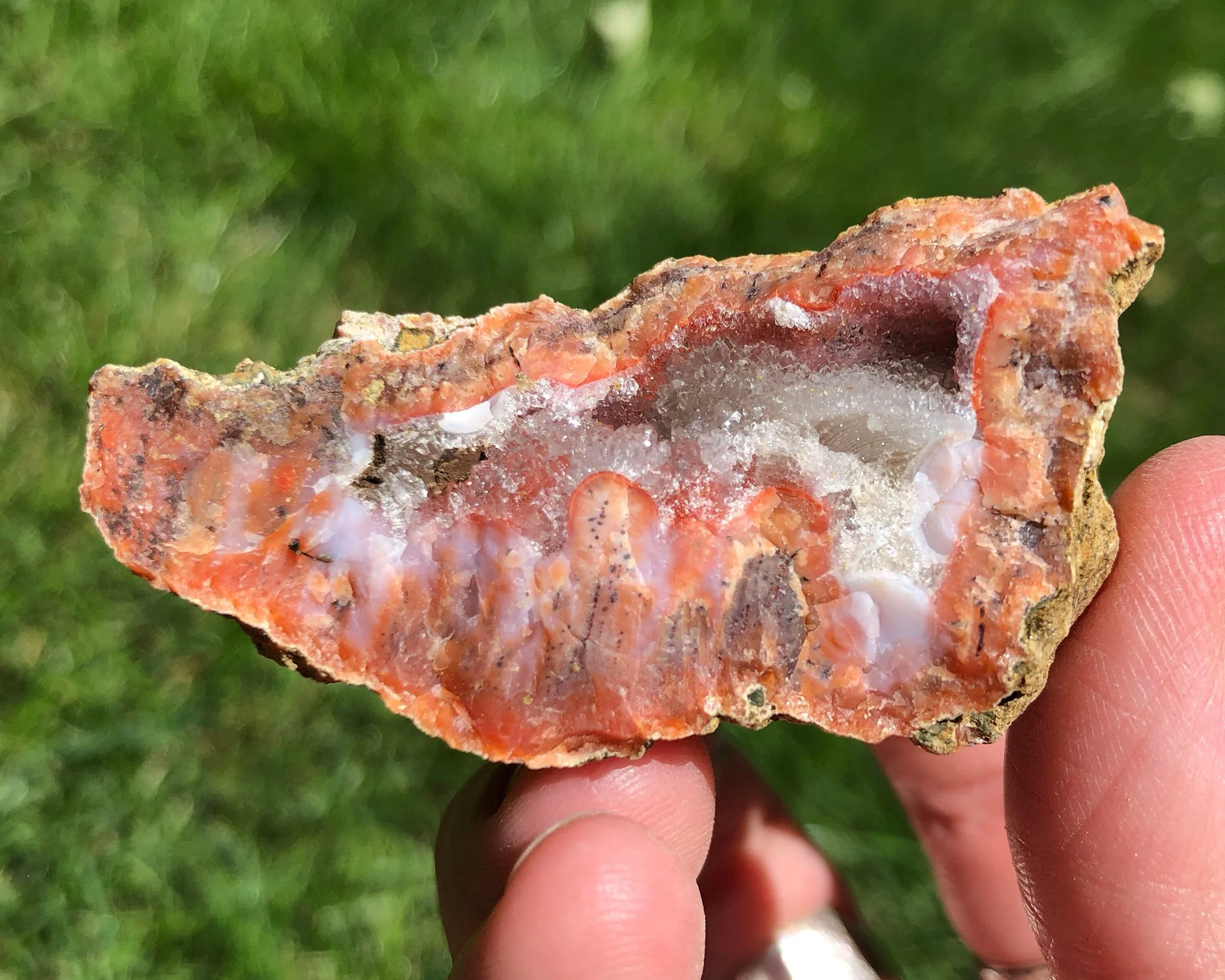 Pink Red and Purple Chalcedony Geode with Hematite from Morocco #2