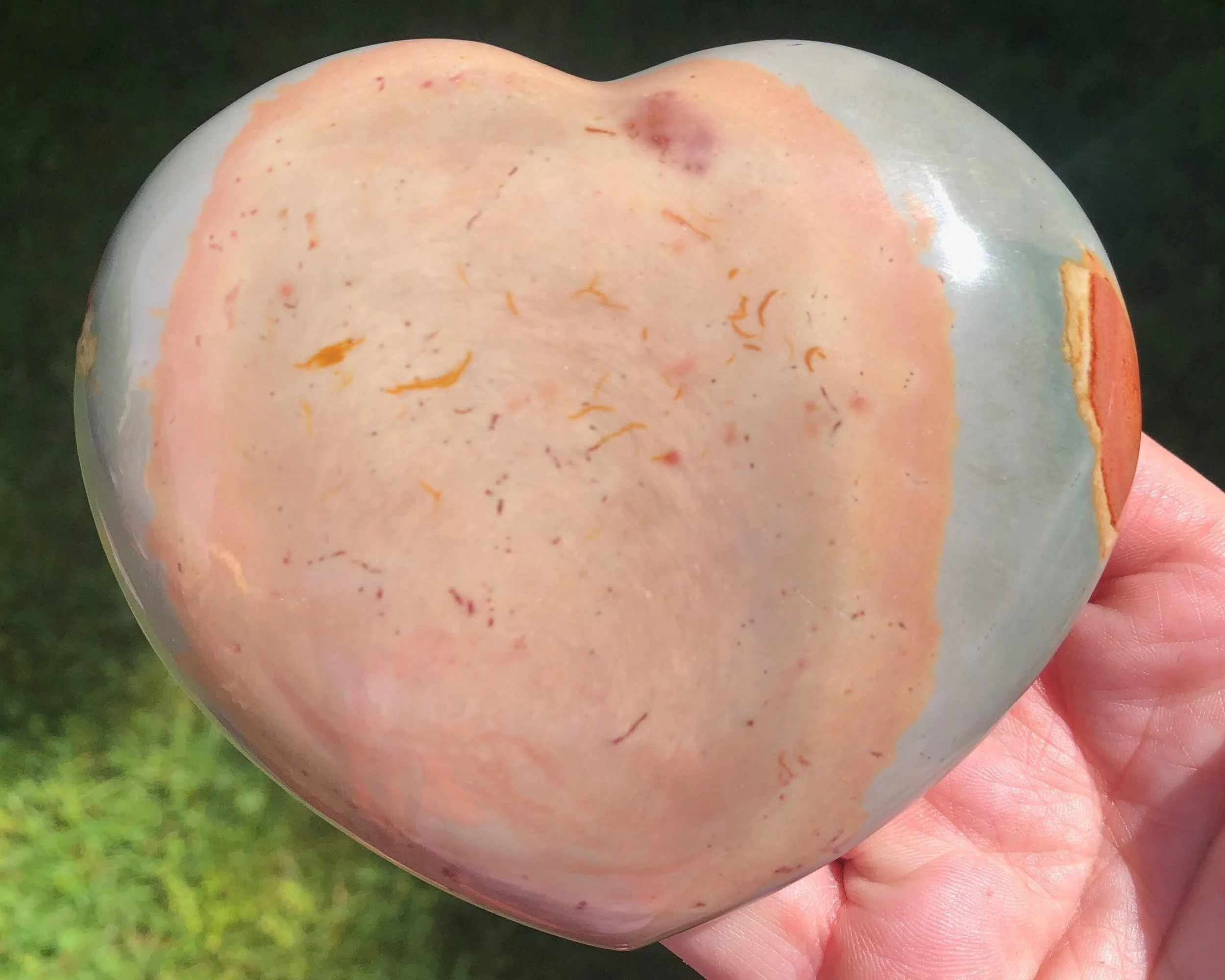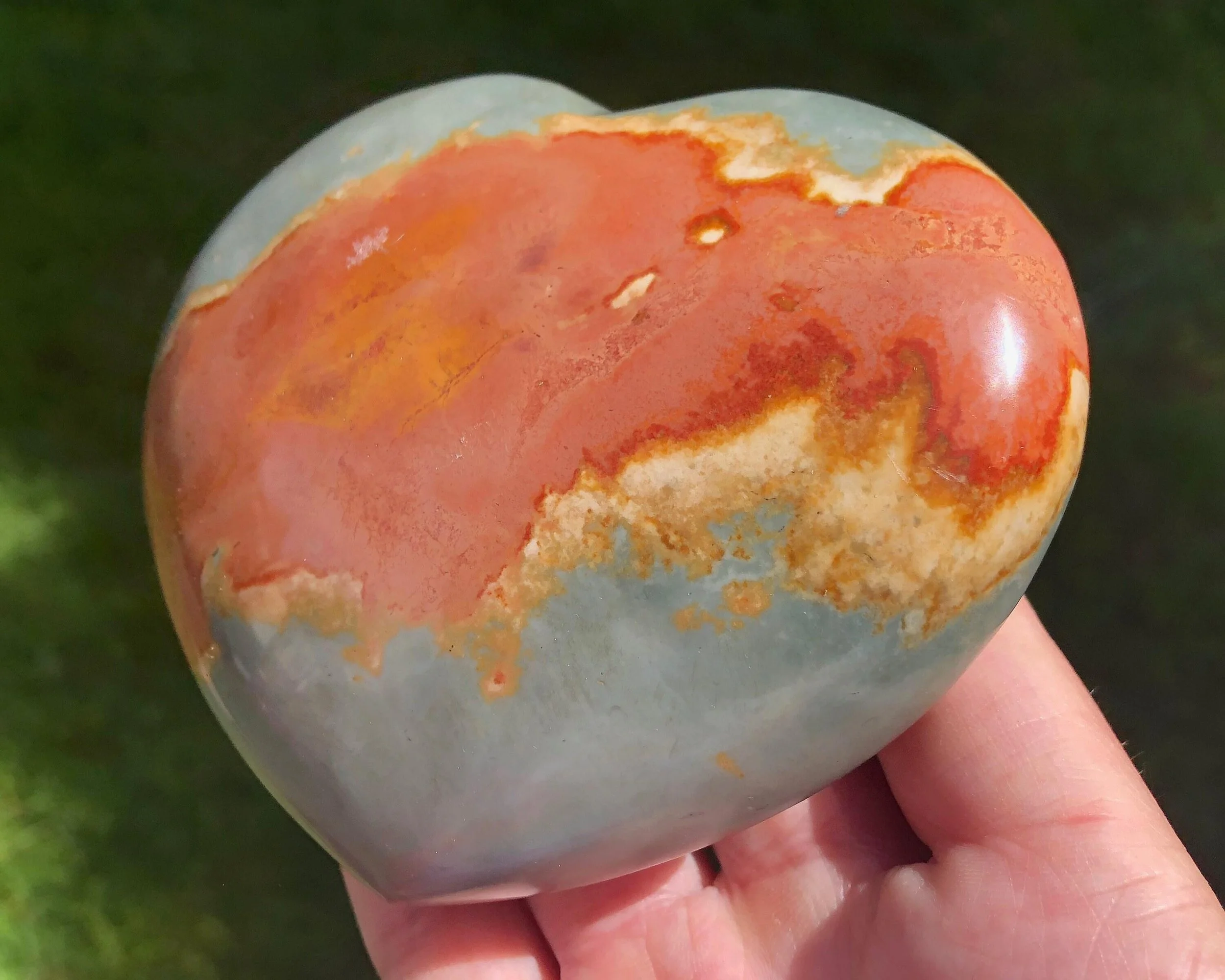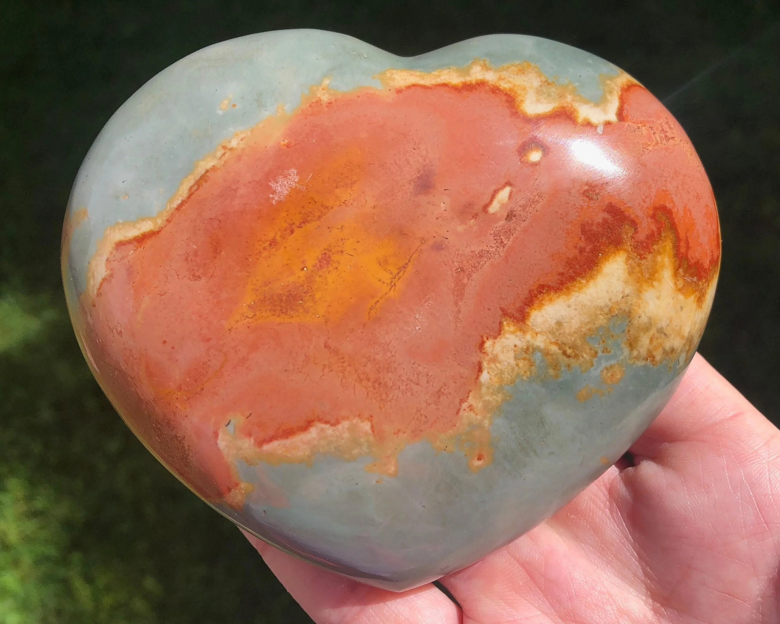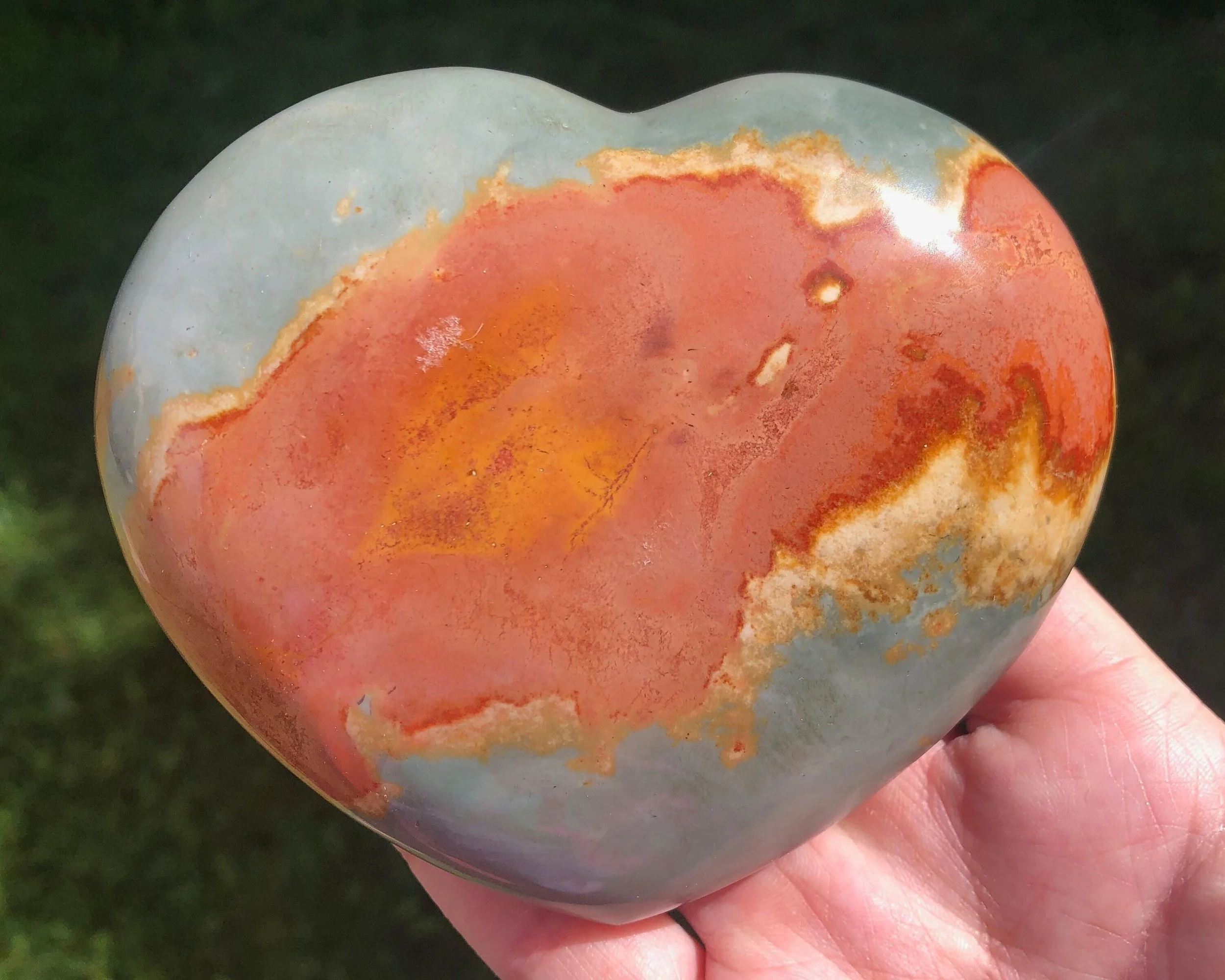 Image 1 of 8 Image 2 of 8 Image 3 of 8 Image 4 of 8 Image 5 of 8 Image 6 of 8 Image 7 of 8 Image 8 of 8 Polychrome Jasper Heart: Large Polished Gemstone, Living Room Decor (4.1") #8 $43.00 A large puffy heart with calming blue grays, warm reds and lovely light pinks You will receive the exact one shown Measures 4.1 x 3.5 x 1.4 inches Weighs 15.8 ounces / 452 grams Thanks for looking! :) Kouva Dream Catchers <3 Add To Cart Added! A large puffy heart with calming blue grays, warm reds and lovely light pinks You will receive the exact one shown Measures 4.1 x 3.5 x 1.4 inches Weighs 15.8 ounces / 452 grams Thanks for looking! :) Kouva Dream Catchers <3 Reviews Reviewer Name Review Date Star Rating Description Posted on Etsy Product Show More