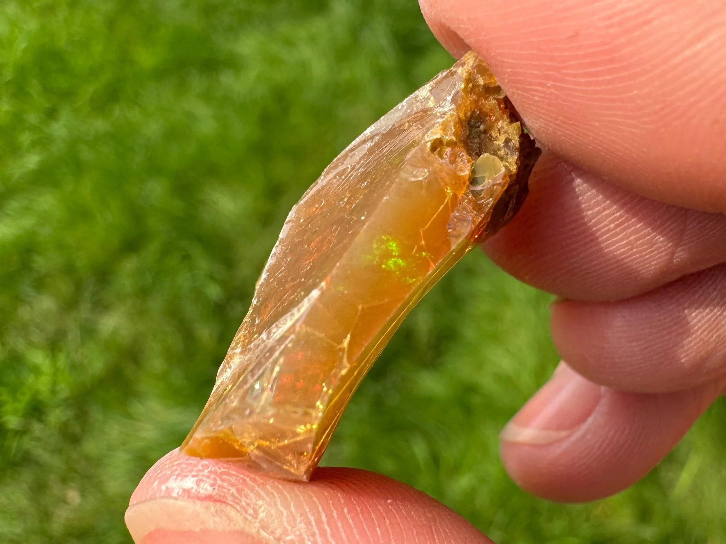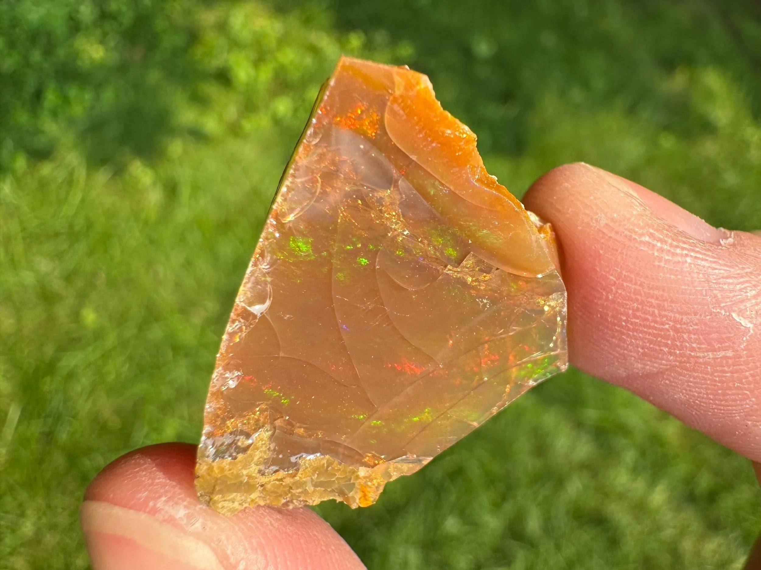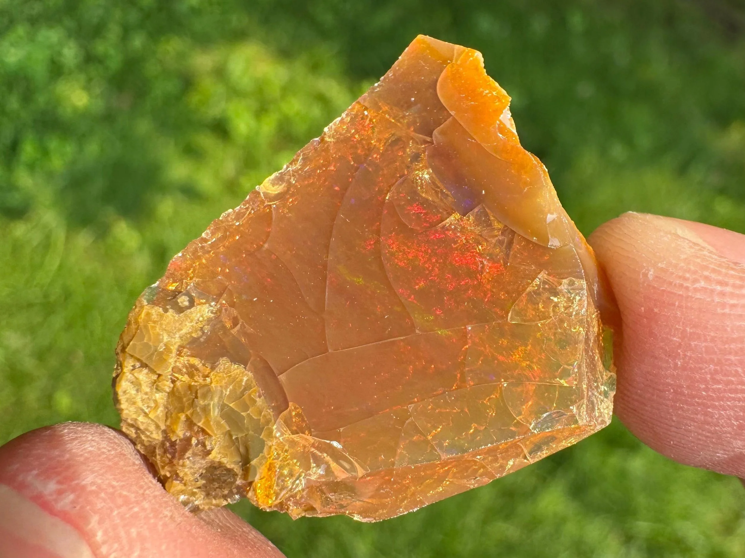 This is a flashy, rough Ethiopian chocolate Welo Opal. Also called a raw brown opal. It is a raw opal with full, bright rainbow flash all over. Very flashy opal and much better in person! When backlit it is translucent to transparent with a warm honey amber color.