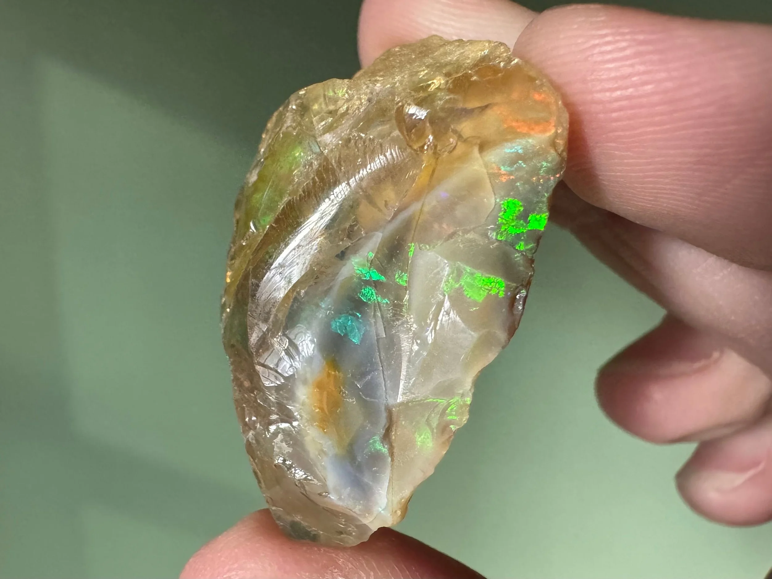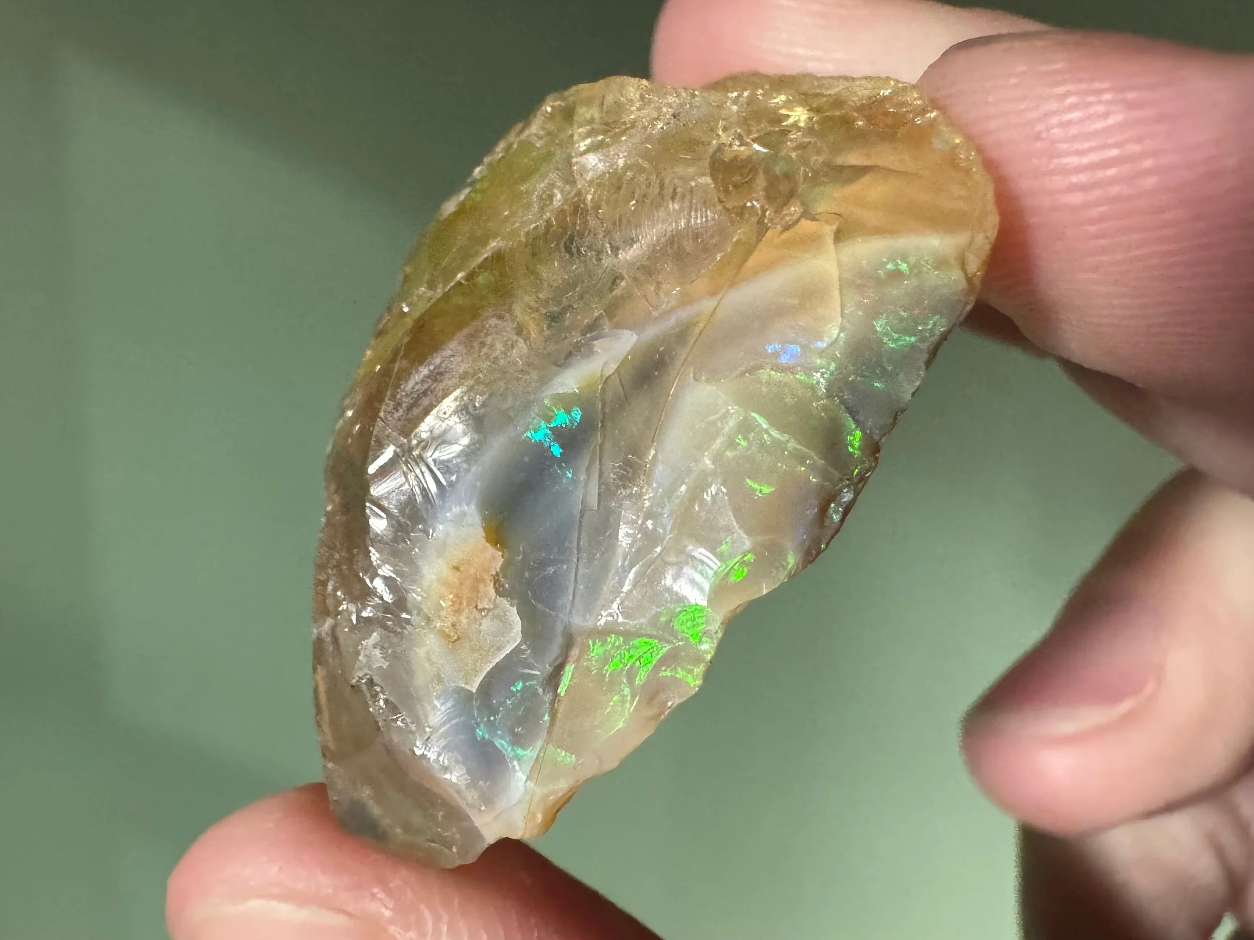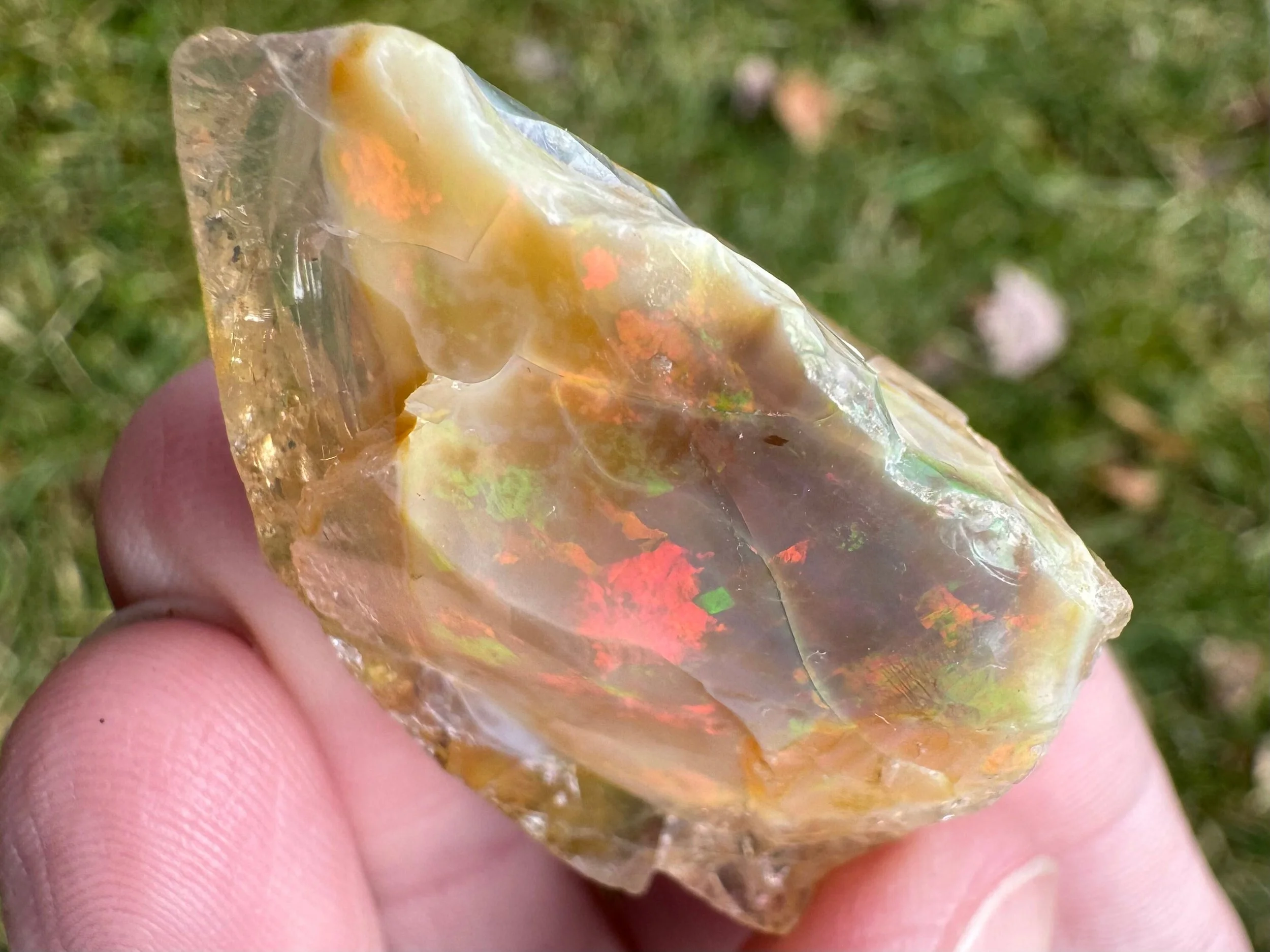 Raw Ethiopian Welo Opal Egg with Rainbow Flash, Rough Large Crystal, October Birthstone #220