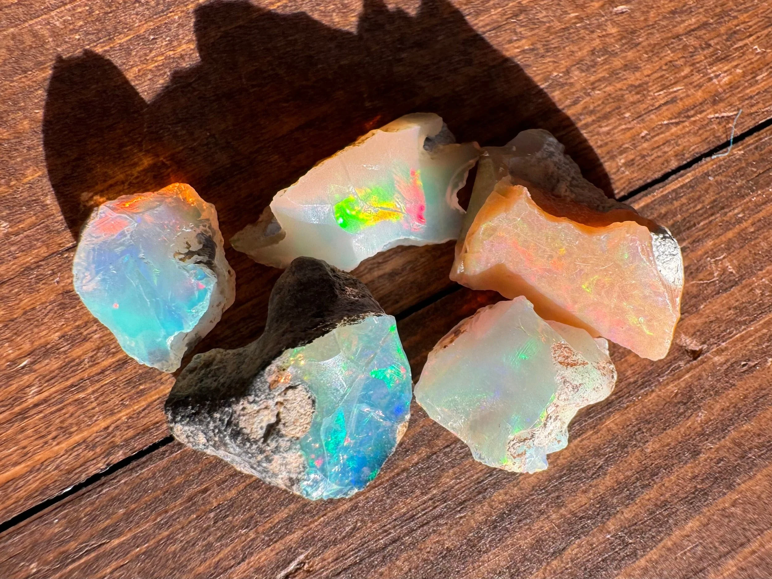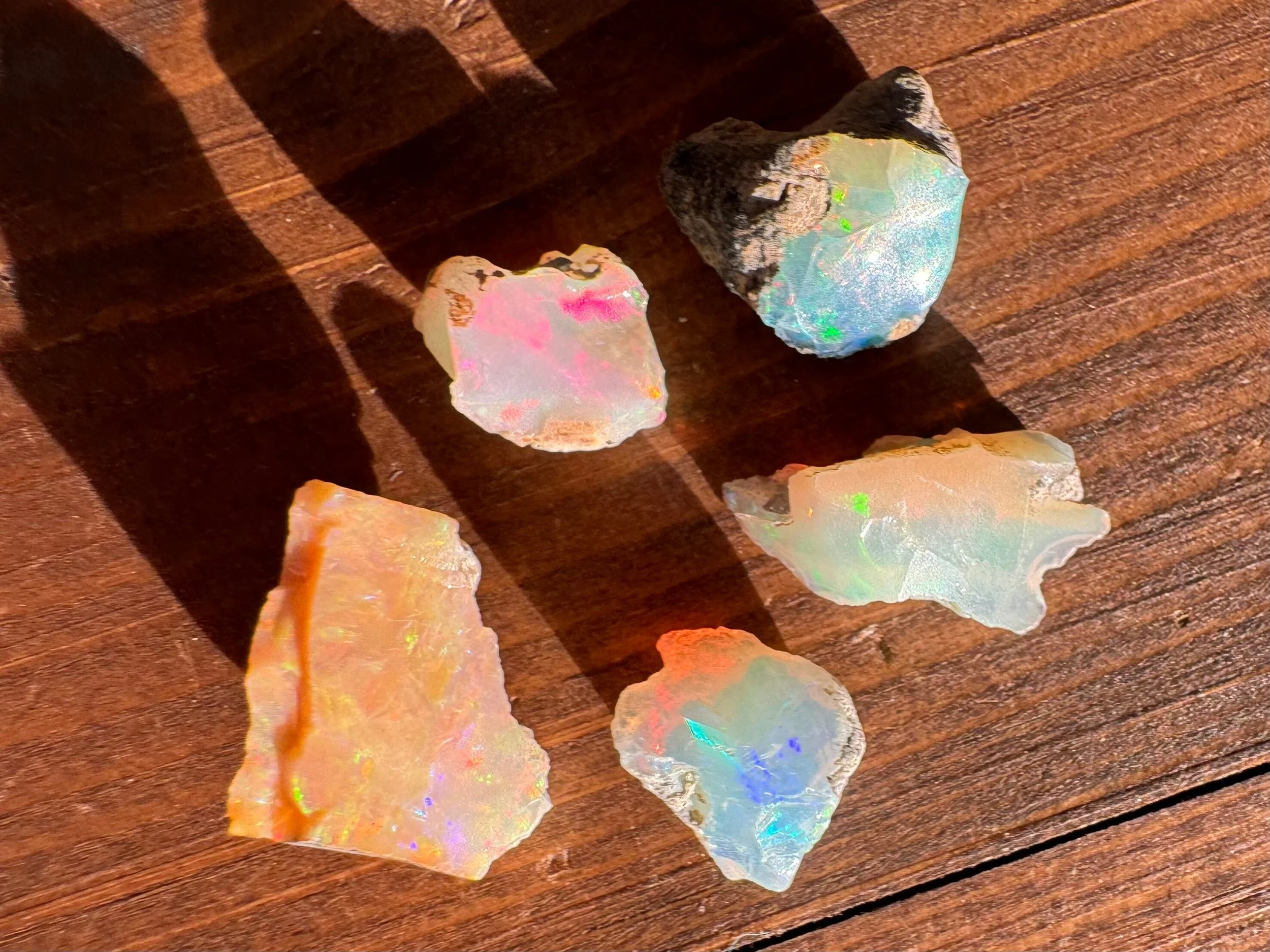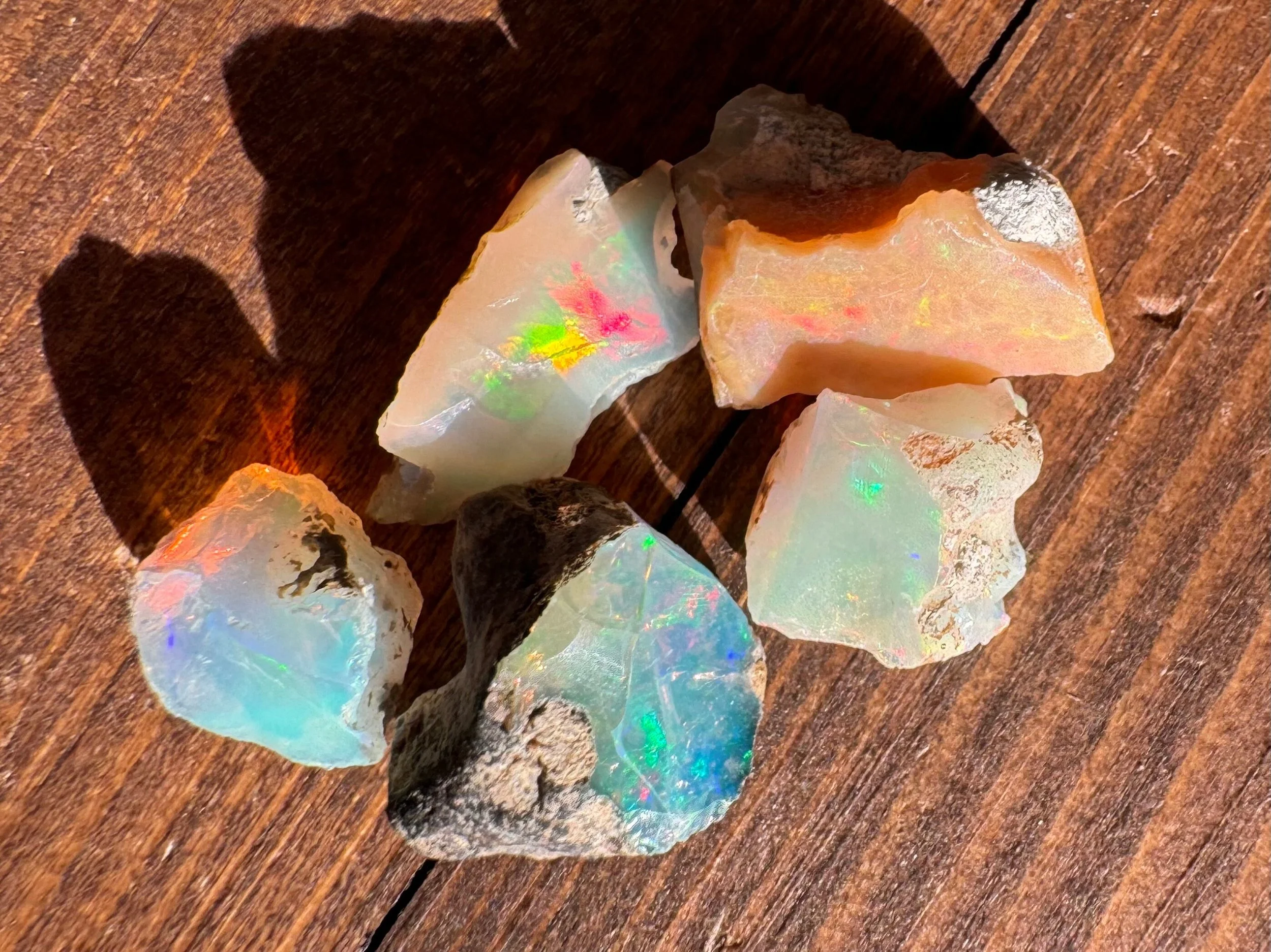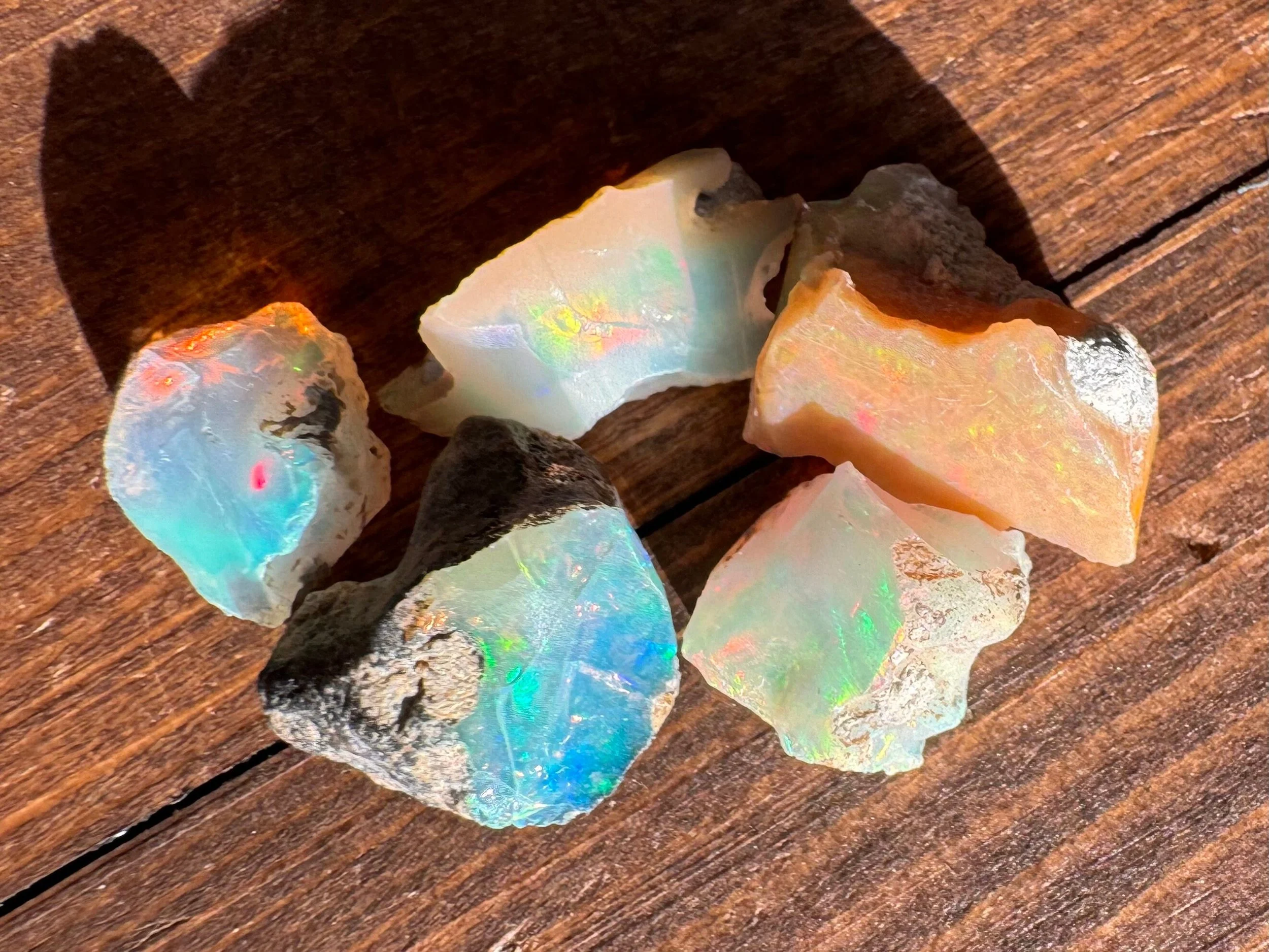 Rough Ethiopian Welo Opal Set: Rainbow Fire, October Birthstone Lot #2