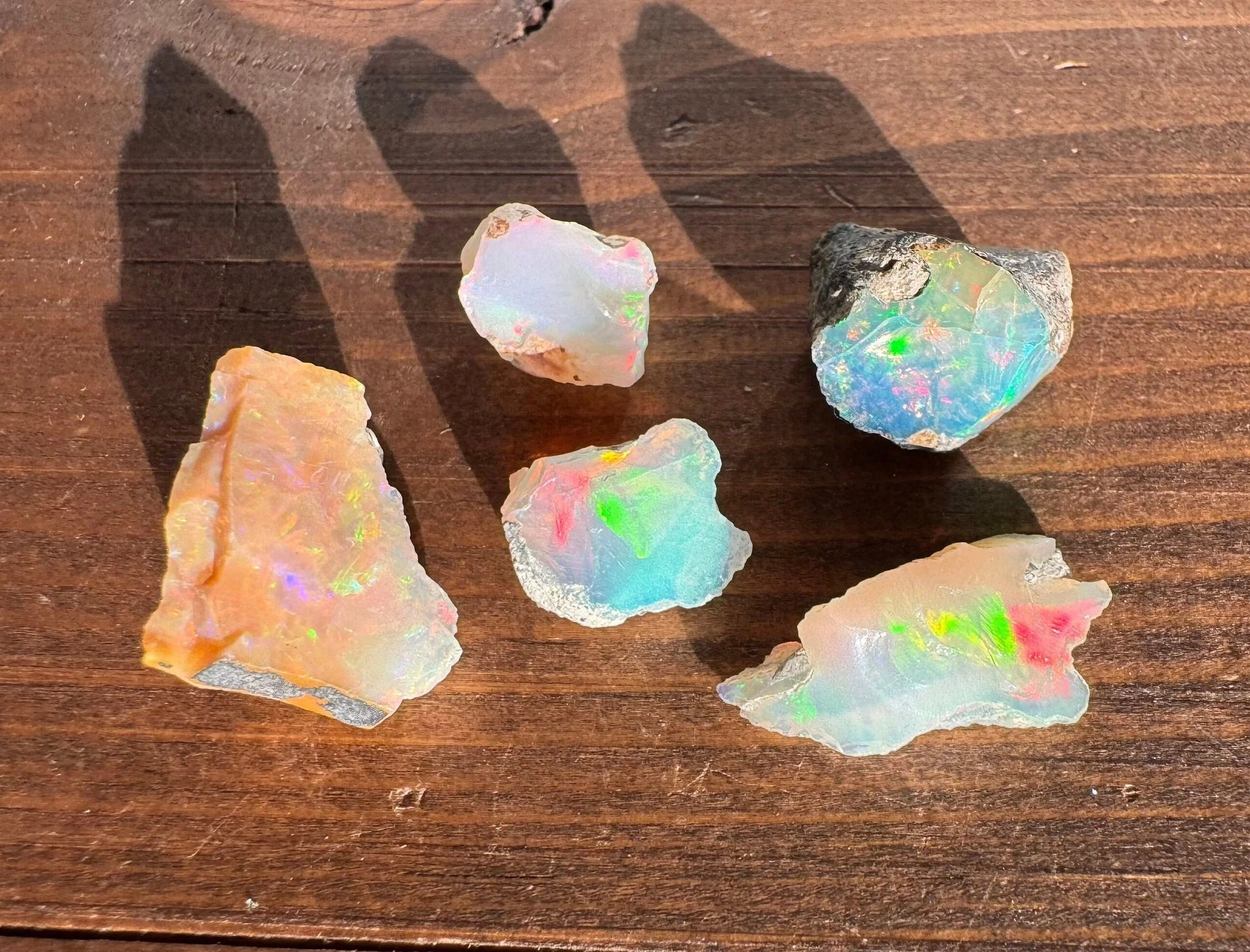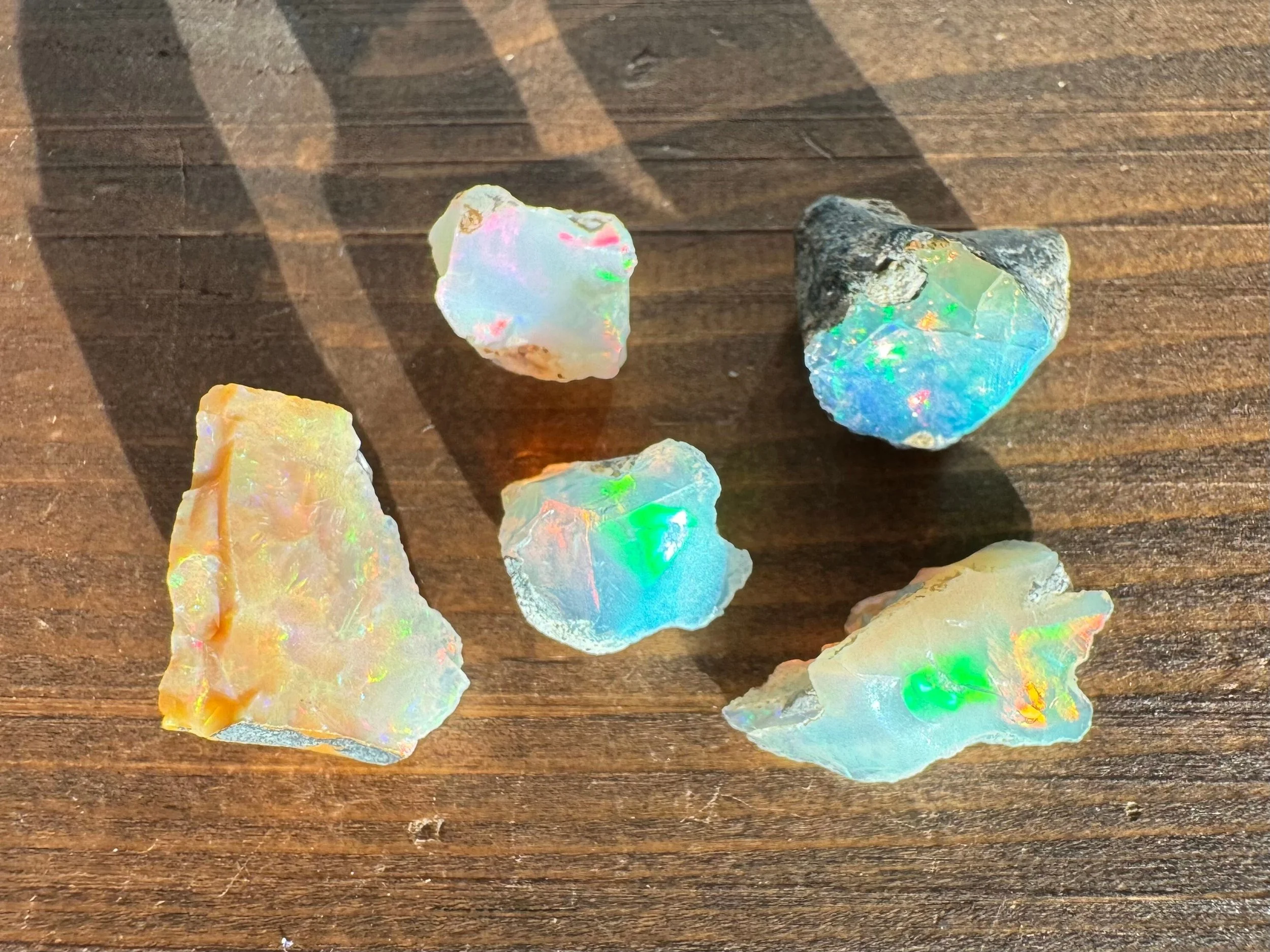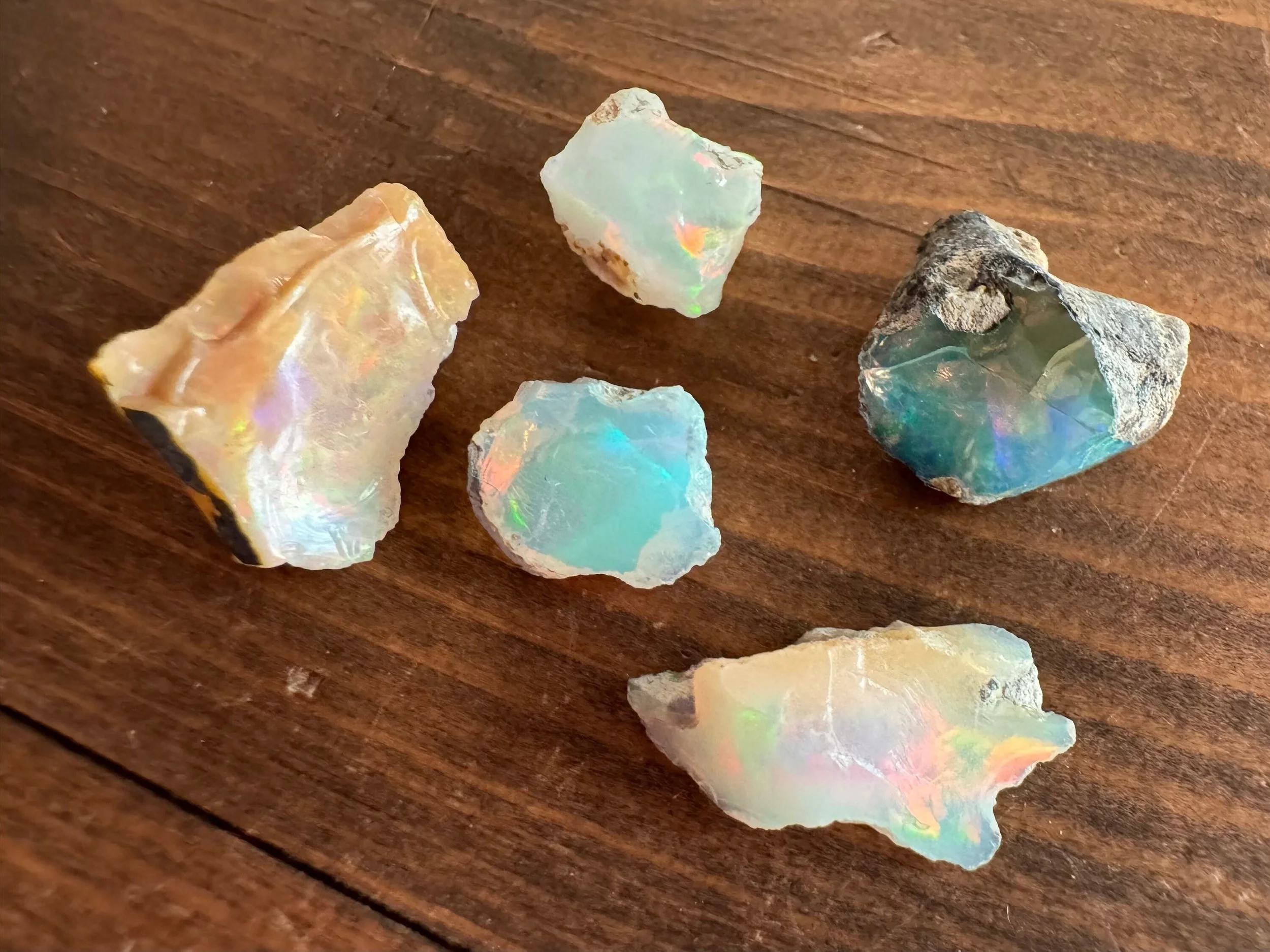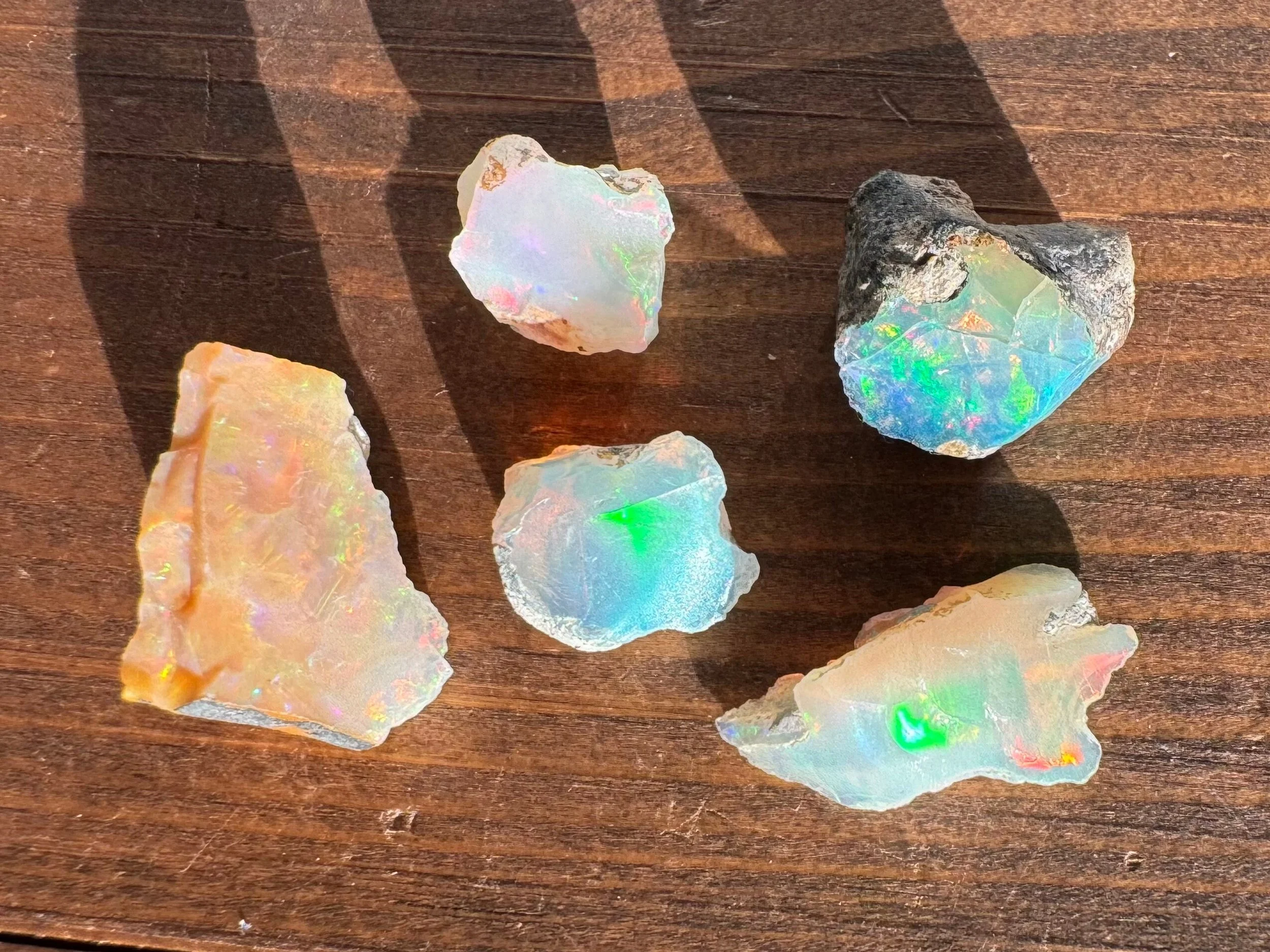 Rough Ethiopian Welo Opal Set: Rainbow Fire, October Birthstone Lot #2