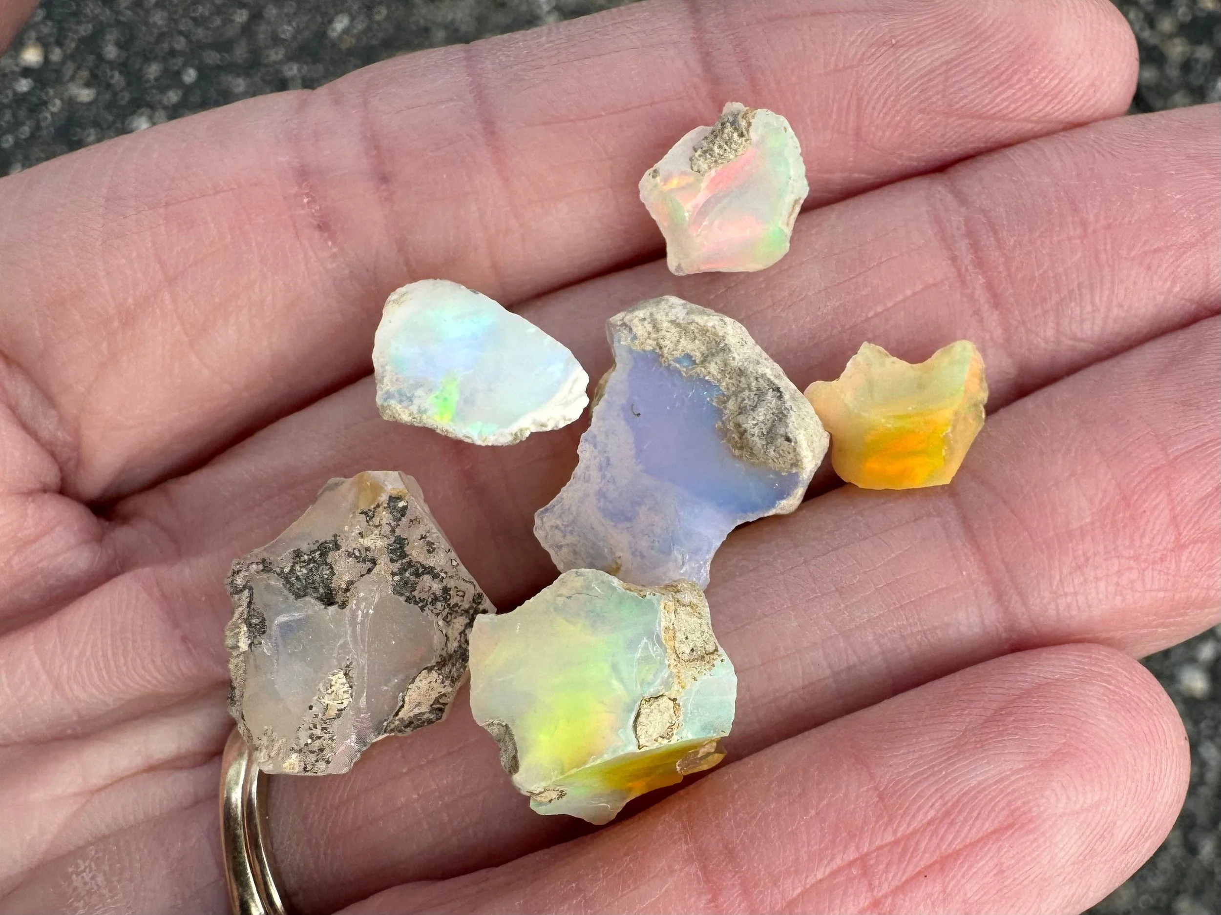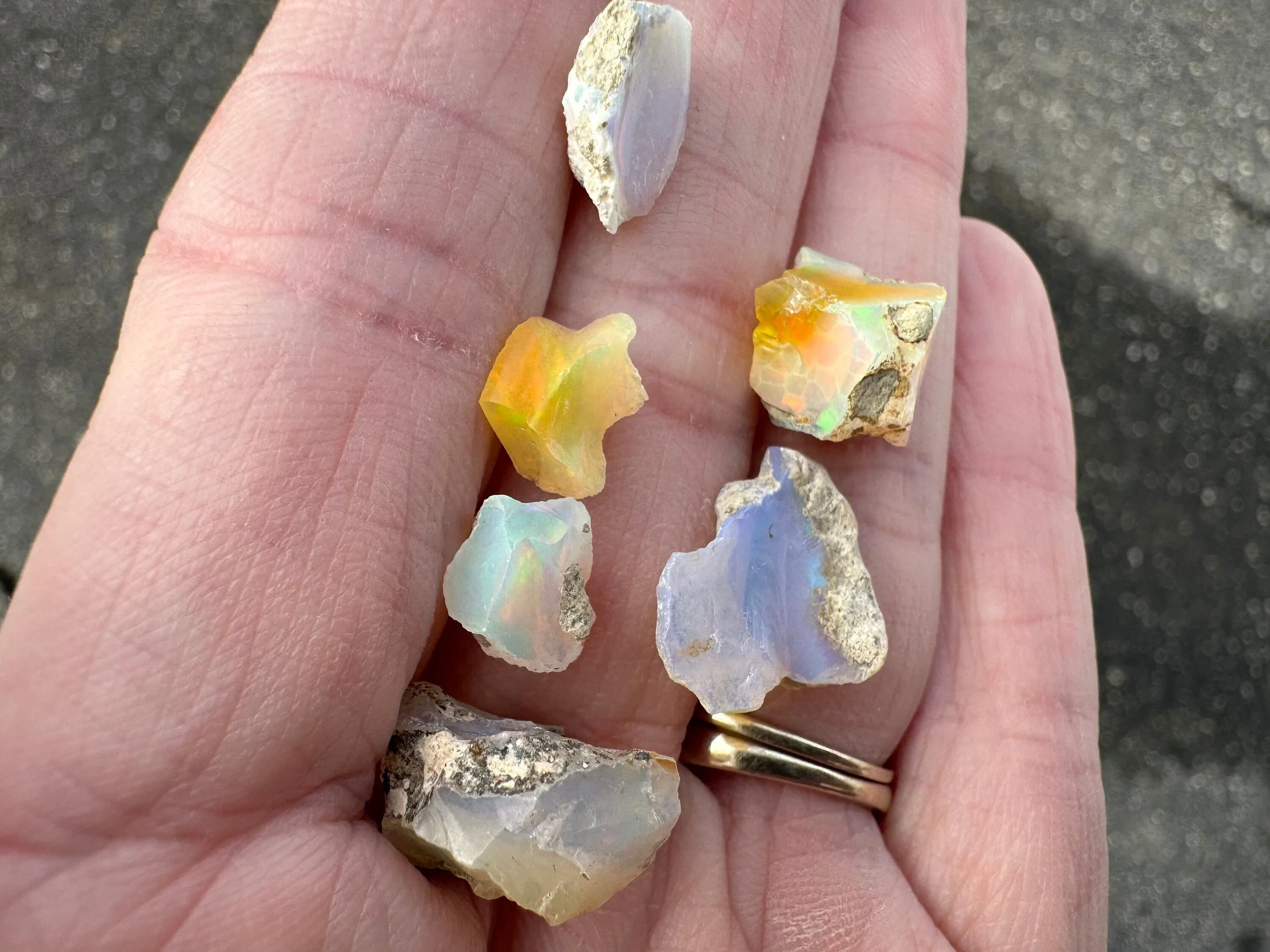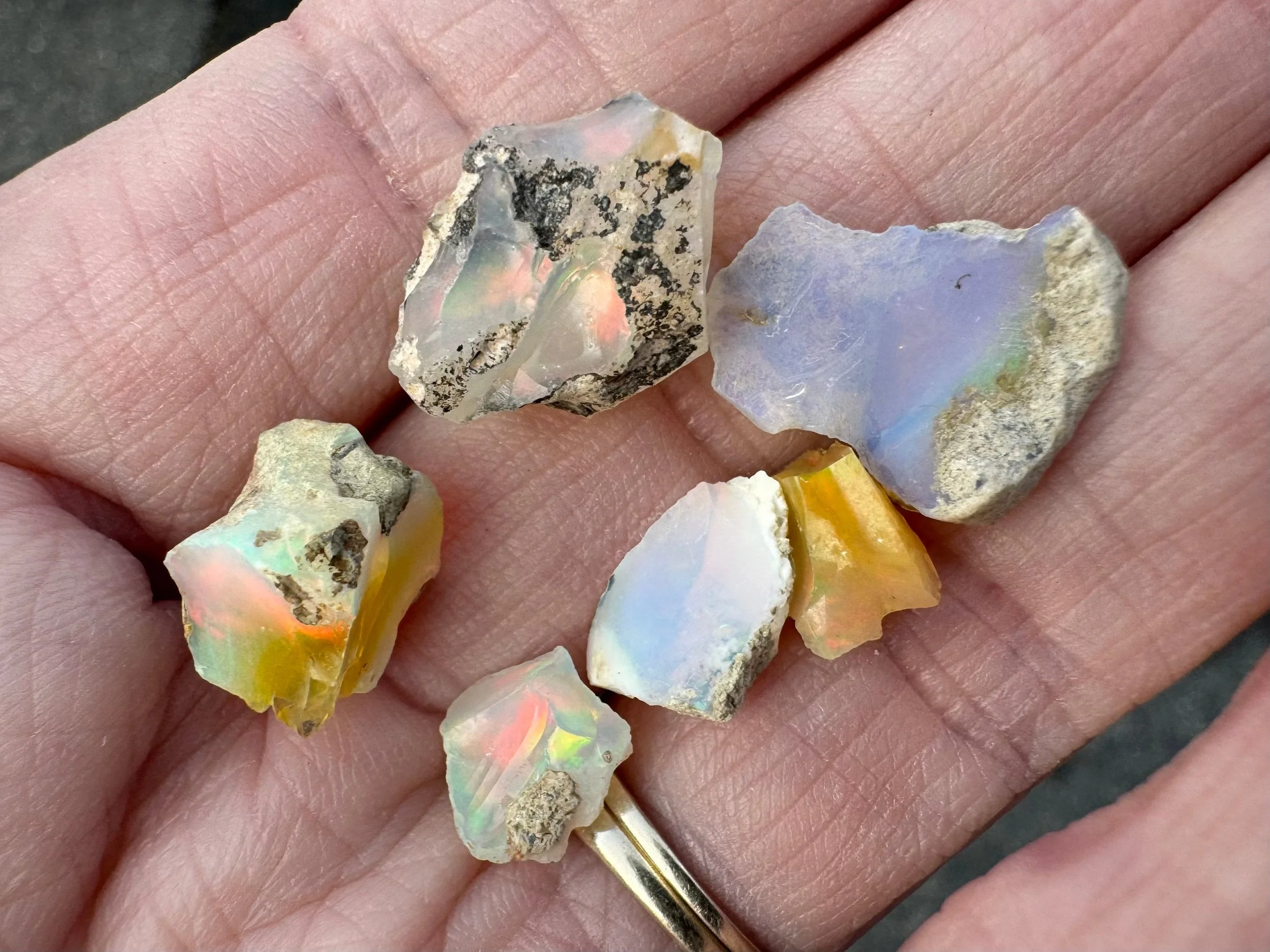 Rough Ethiopian Welo Opal Set: Rainbow Fire Raw Opal Lot, Honeycomb, Egg #1