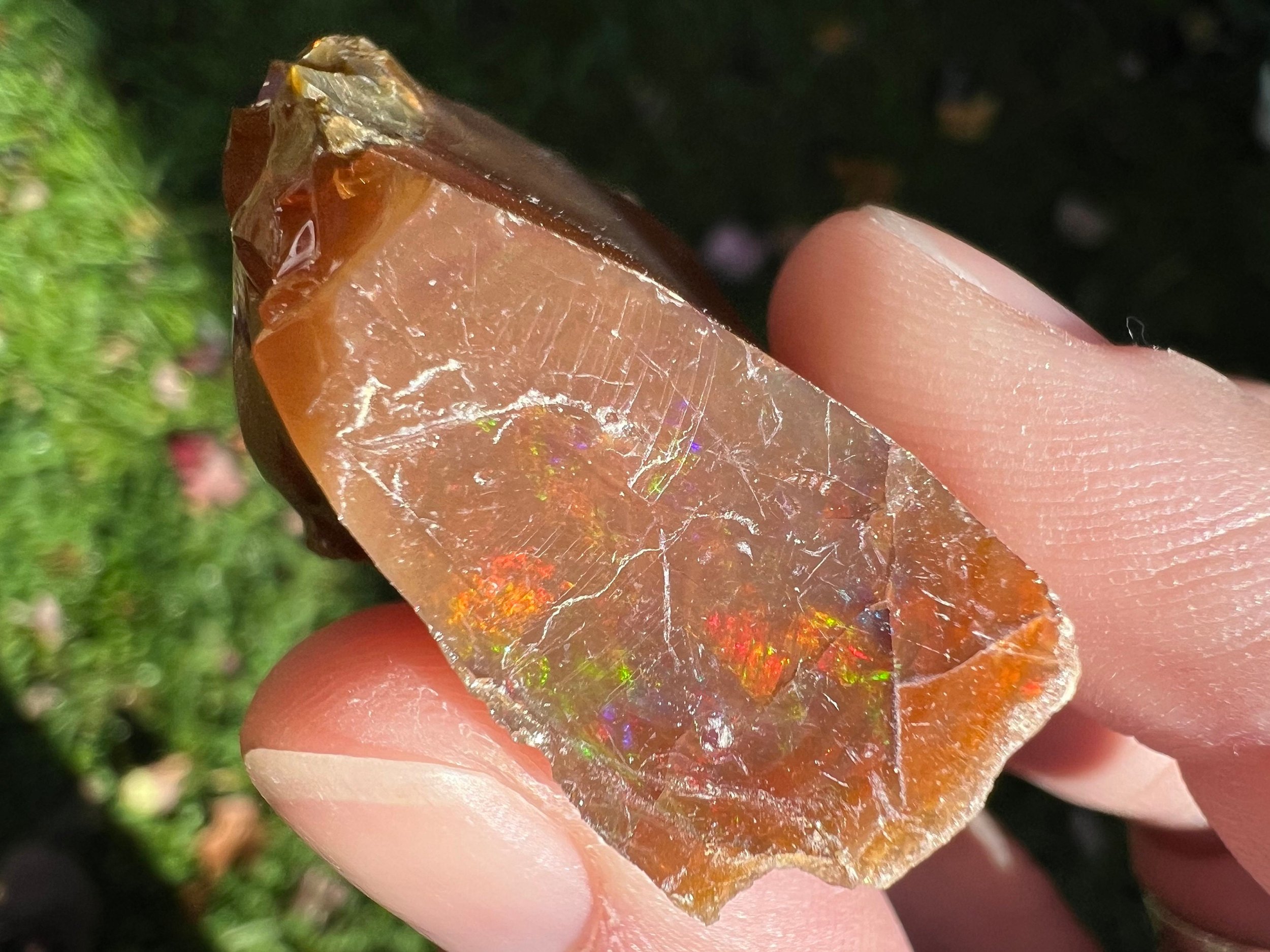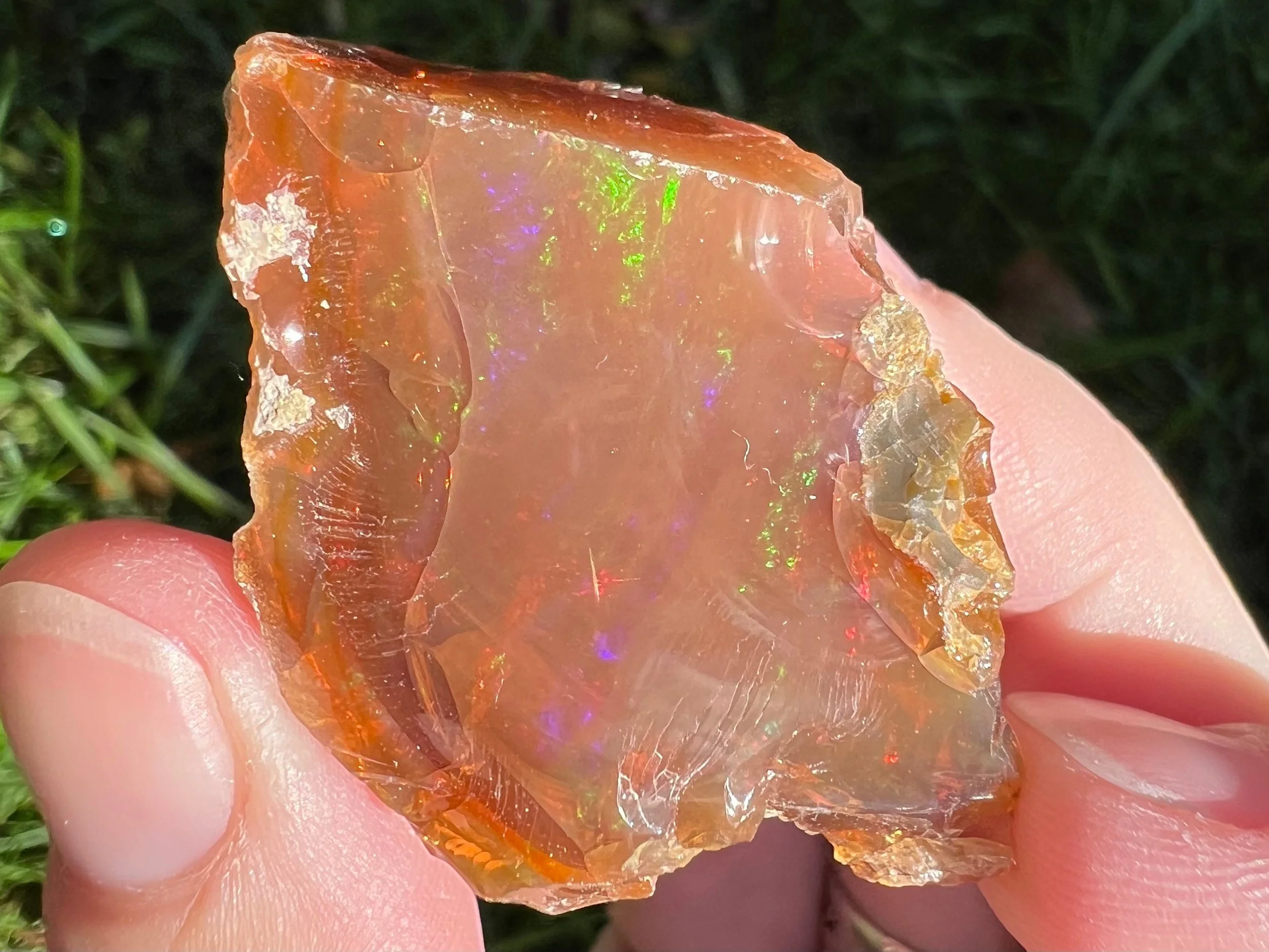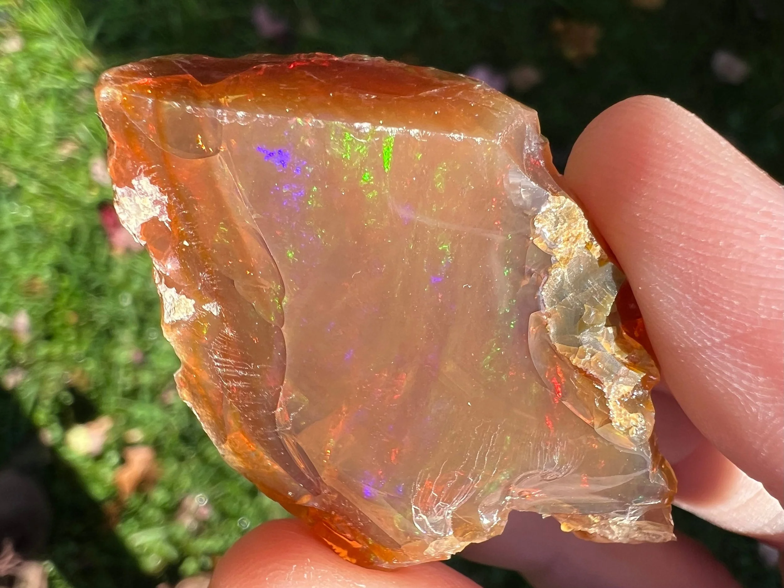 This is a flashy, rough Ethiopian chocolate Opal. Also called a brown Welo opal. It is a raw opal with full, bright rainbow flash all over with the biggest side looking like large rainbow sparkles! along the largest side has striped flash too. Very flashy opal and much better in person!