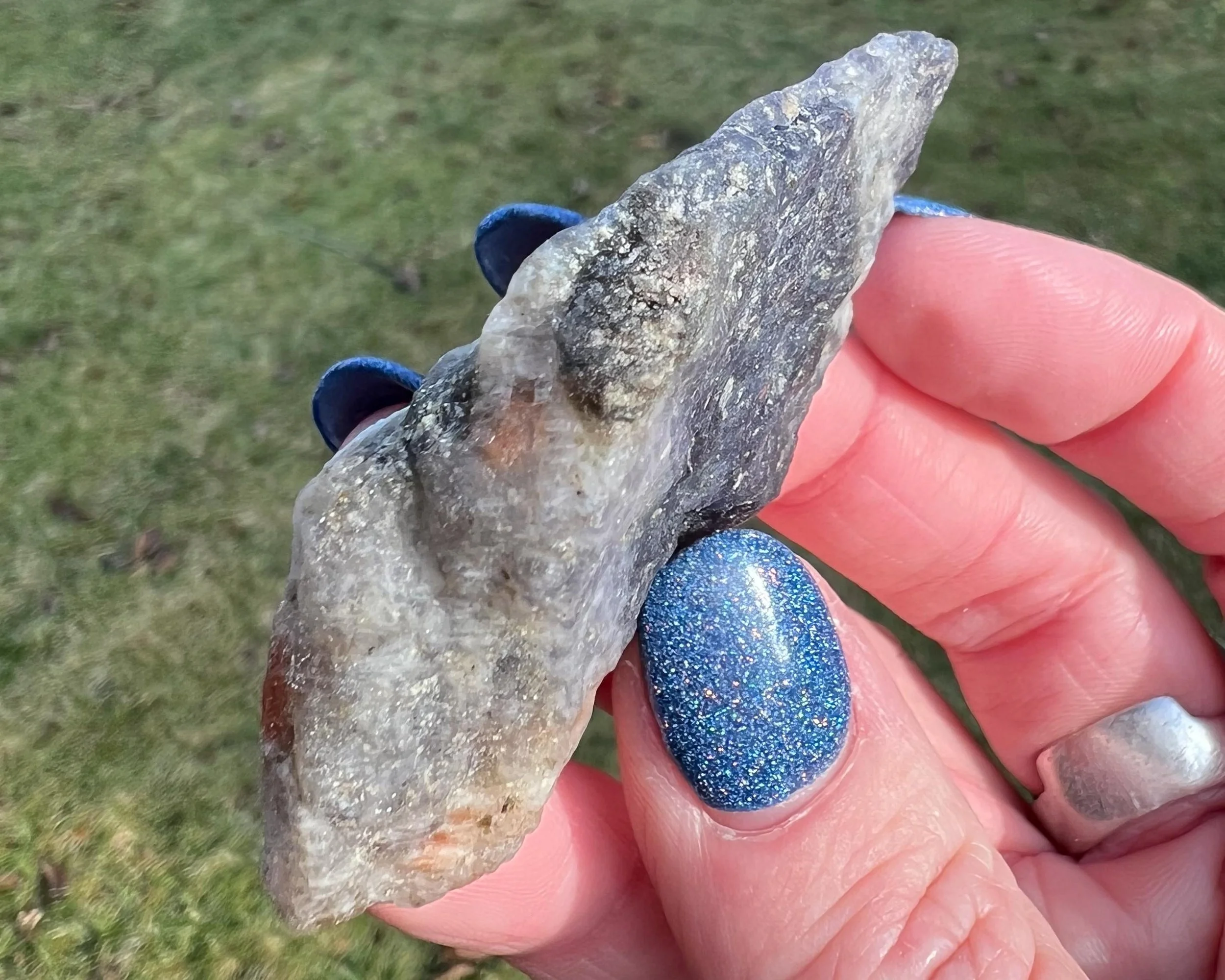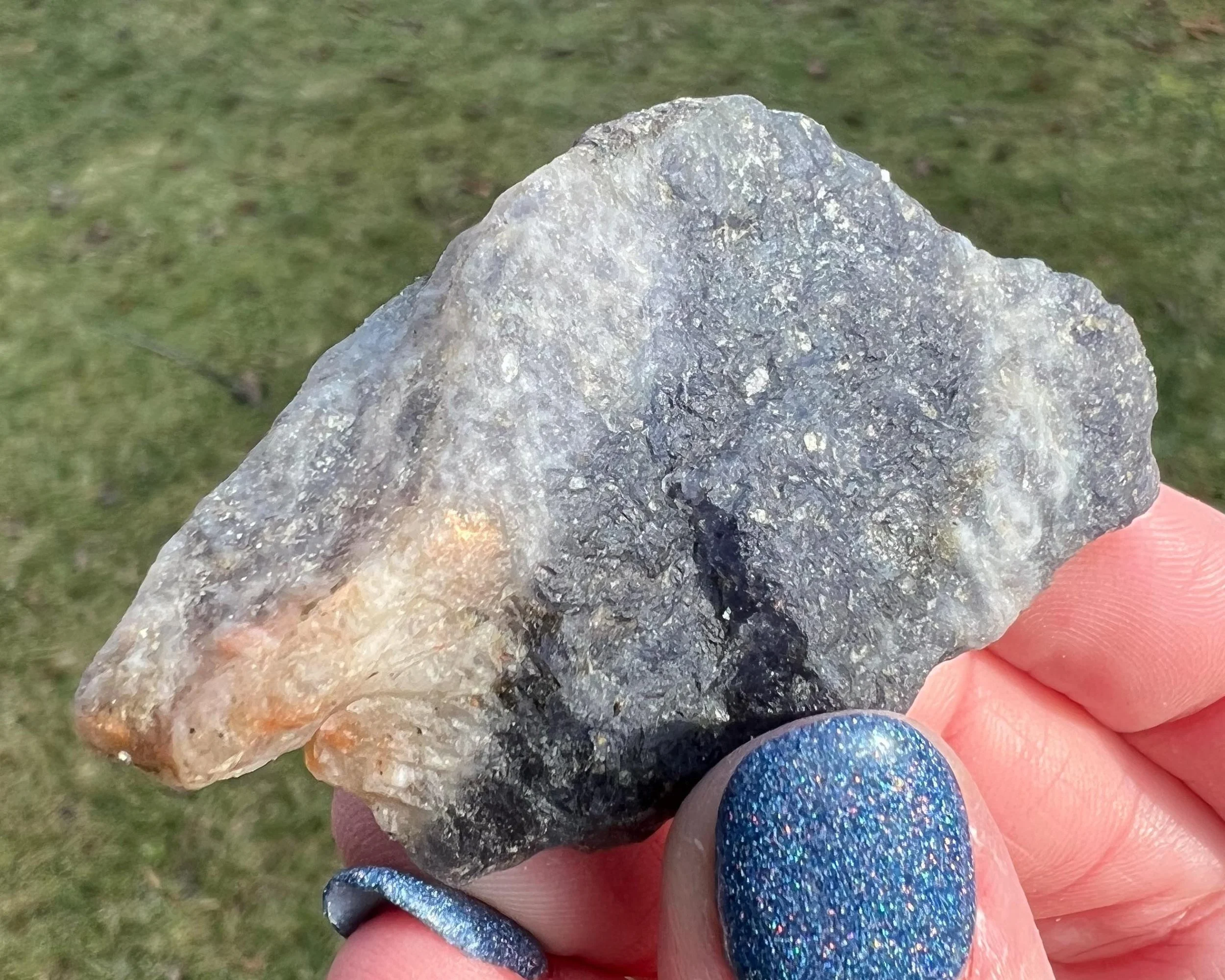 This is a lovely combination stone of Sunstone and Iolite. The colors have nice contrast together and the sunstone sparkles wonderfully with its rainbow 'confetti.' A beautiful and fun stone <3