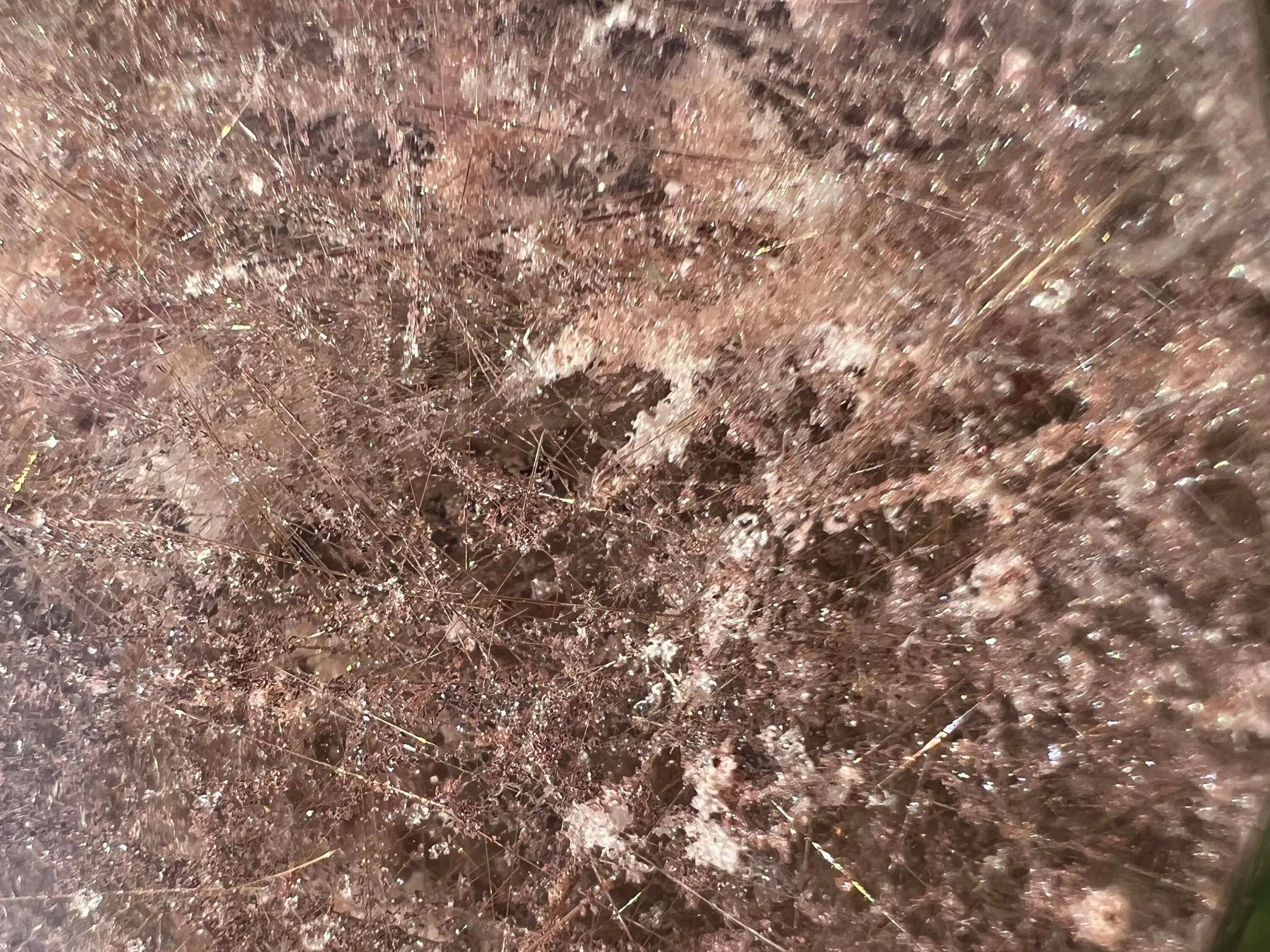 This is a beautiful polished Rutilated Quartz tower with Lodolite, aka scenic inclusion Quartz from Brazil. It is full of purple pink and white inclusions that look like fuzzy colorful moss frozen in clear Quartz crystal. It has thin, lustrous golden Rutile strands. It's so much better in person because a camera can't quite catch all the details. So pretty! :D