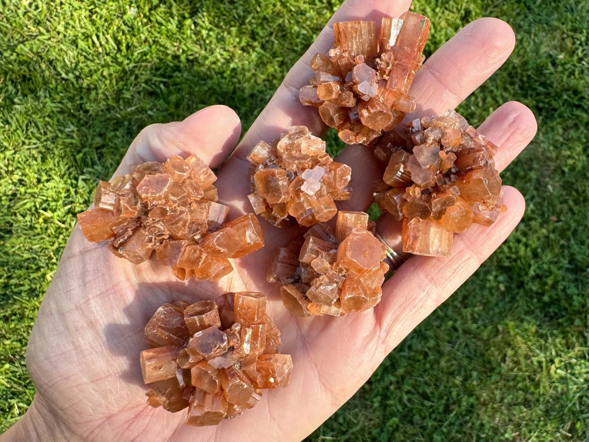 Set of 6 Aragonite Crystal Clusters - Orange Natural Rough Stones from Morocco #1