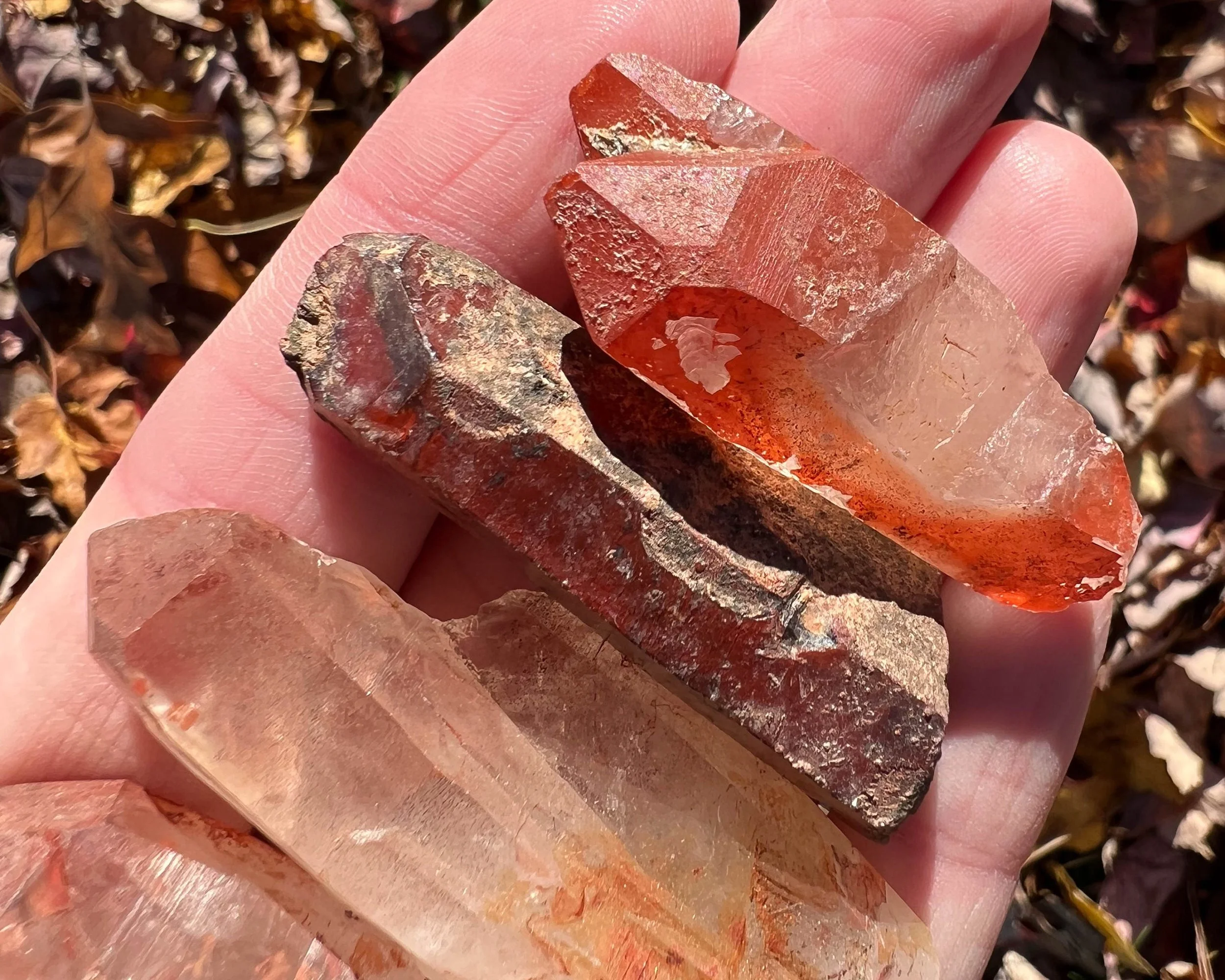 One of these are double terminated, some also having multiple terminations on one side. They have fun features like shiny Hematite specks, self healing, striations, funky etching etc.