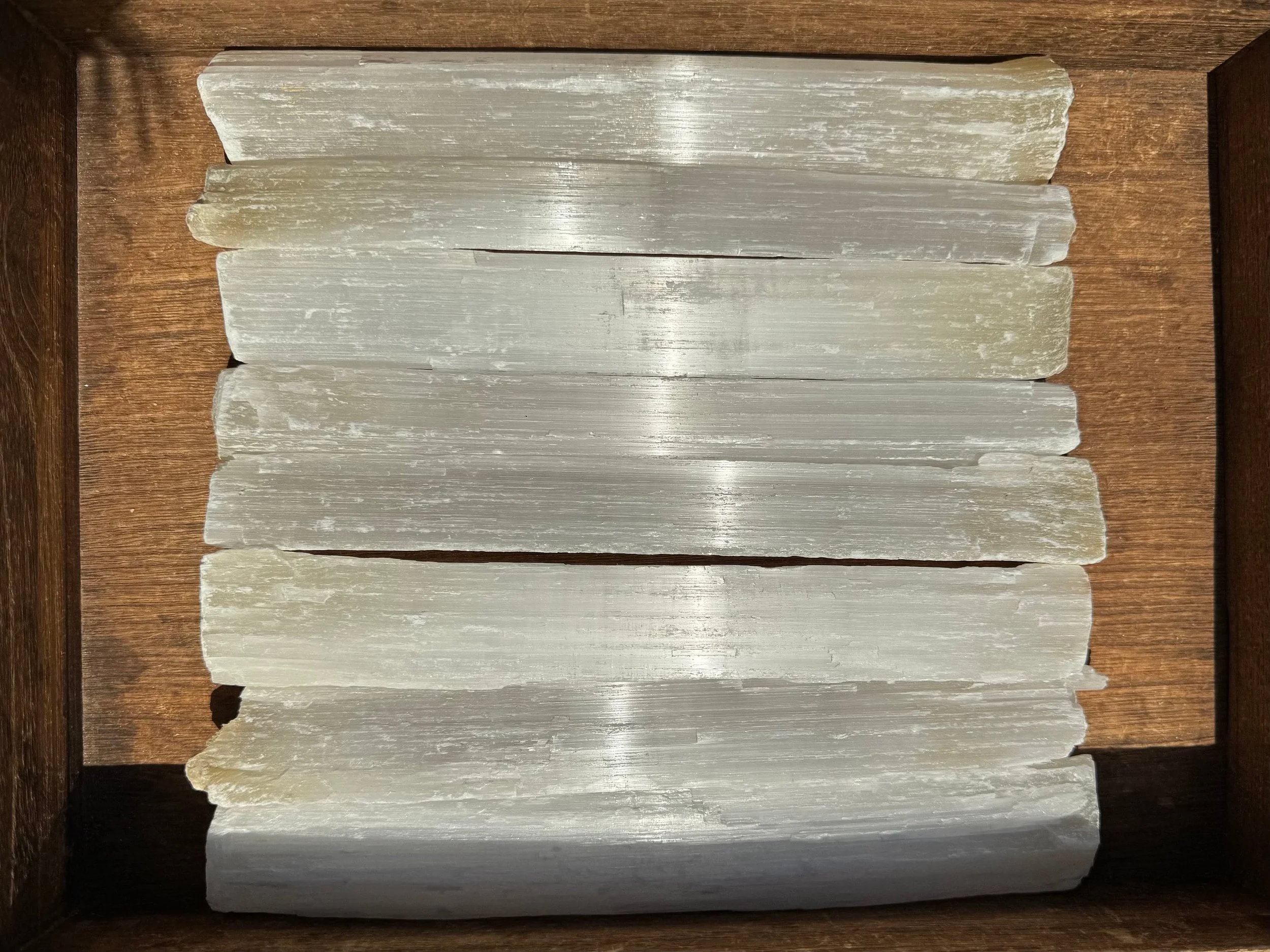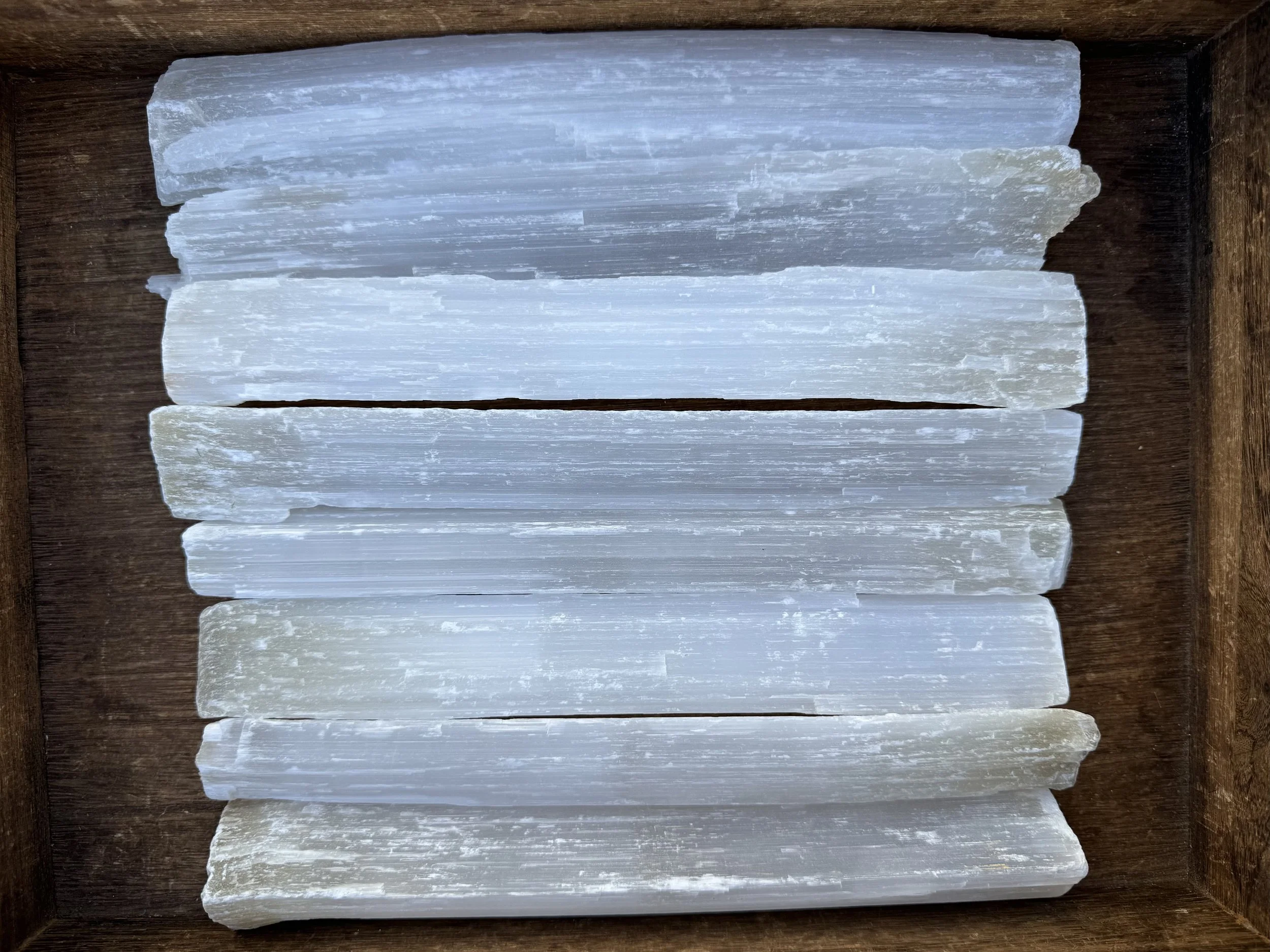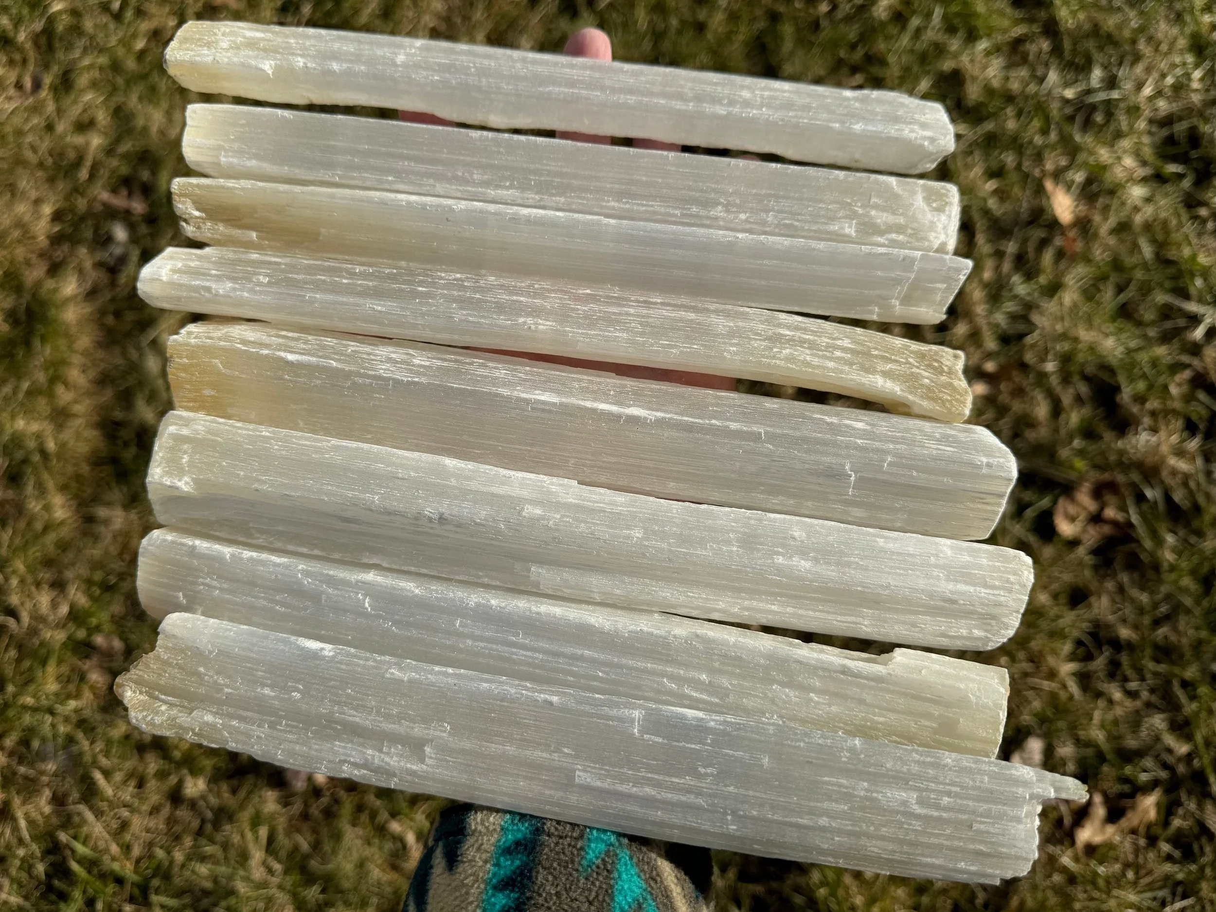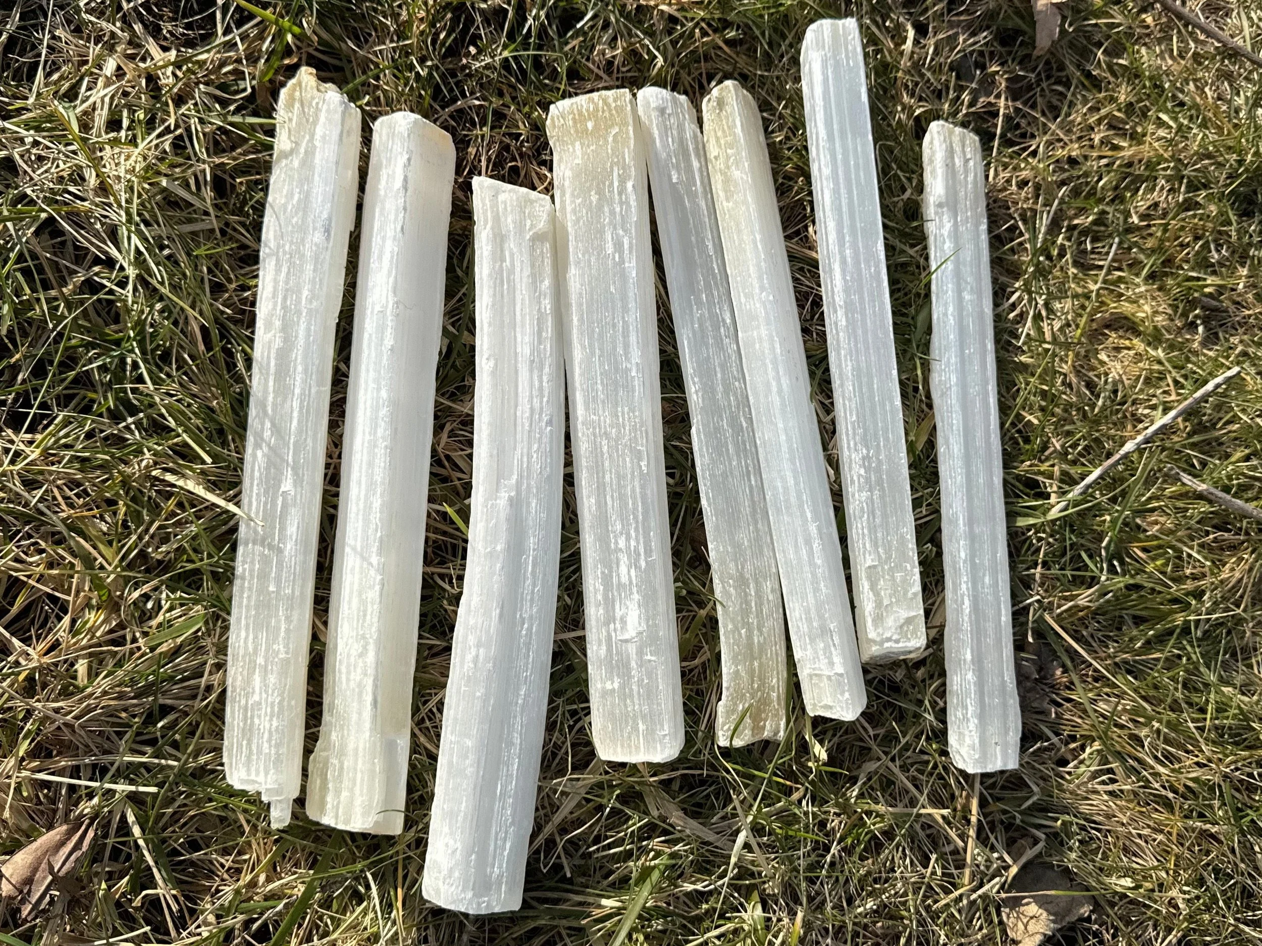 Image 1 of 10 Image 2 of 10 Image 3 of 10 Image 4 of 10 Image 5 of 10 Image 6 of 10 Image 7 of 10 Image 8 of 10 Image 9 of 10 Image 10 of 10 Set of 8 Selenite Sticks: Satin Spar for Energy Cleansing, Crystal Charging #1 $71.00 This is a set of 8 large raw Selenite (Satin Spar Gypsum) sticks from Morocco. You will receive the exact set you see here. They measure 8.8 - 9.8 inches long each and about 1" thicknessTotal weight is 4.1 pounds or 1850 grams.Thanks for looking! :)Kouva Dream Catchers <3 Add To Cart Added! This is a set of 8 large raw Selenite (Satin Spar Gypsum) sticks from Morocco. You will receive the exact set you see here. They measure 8.8 - 9.8 inches long each and about 1" thicknessTotal weight is 4.1 pounds or 1850 grams.Thanks for looking! :)Kouva Dream Catchers <3 Reviews Reviewer Name Review Date Star Rating Description Posted on Etsy Product Show More