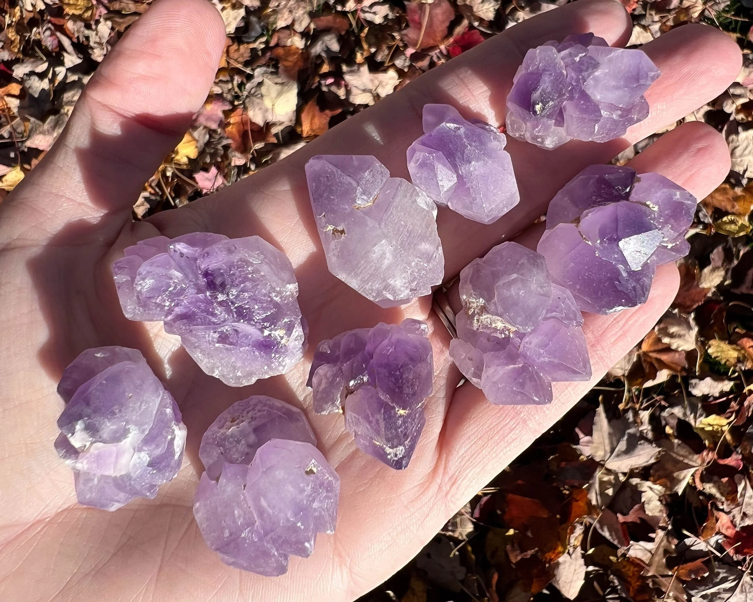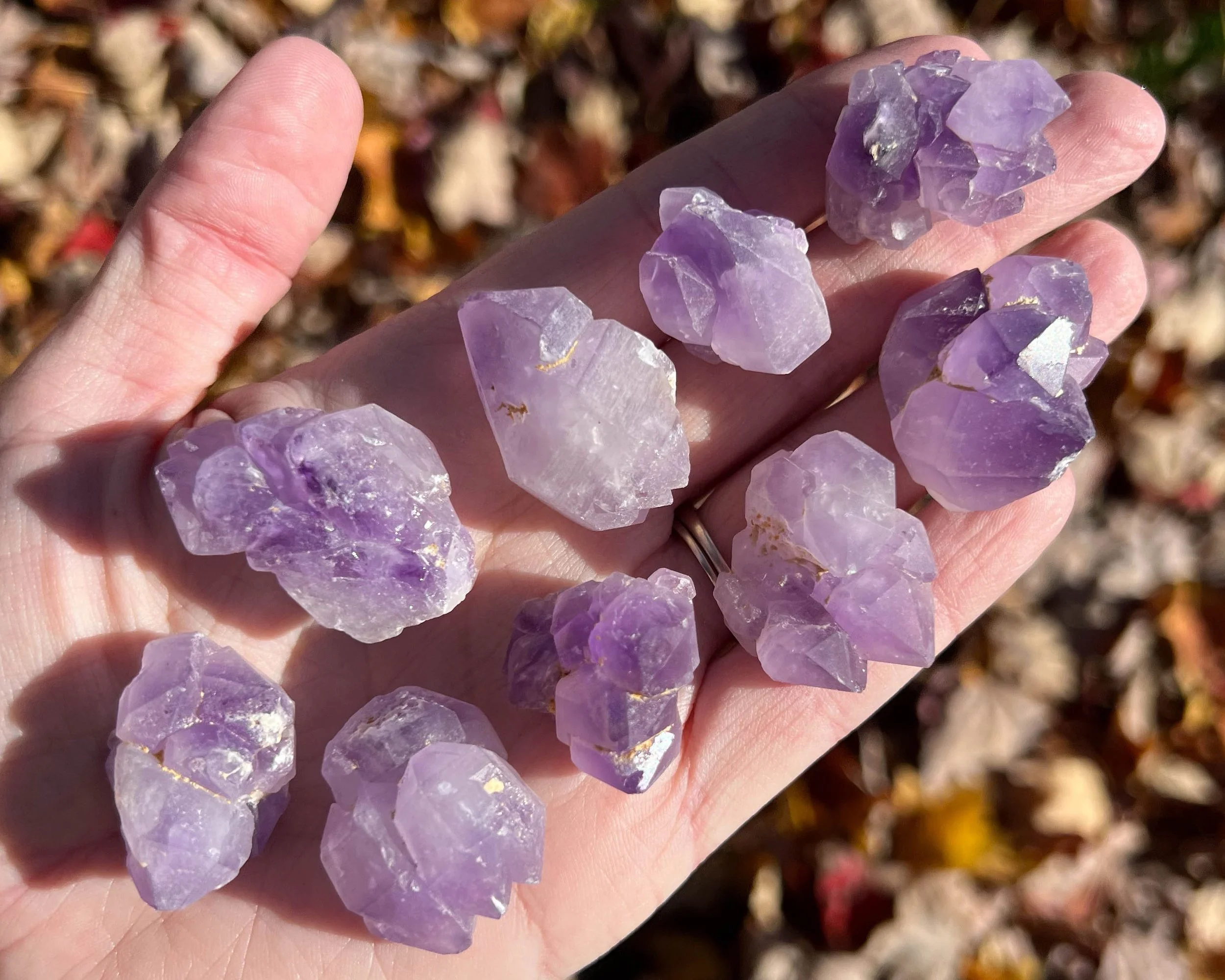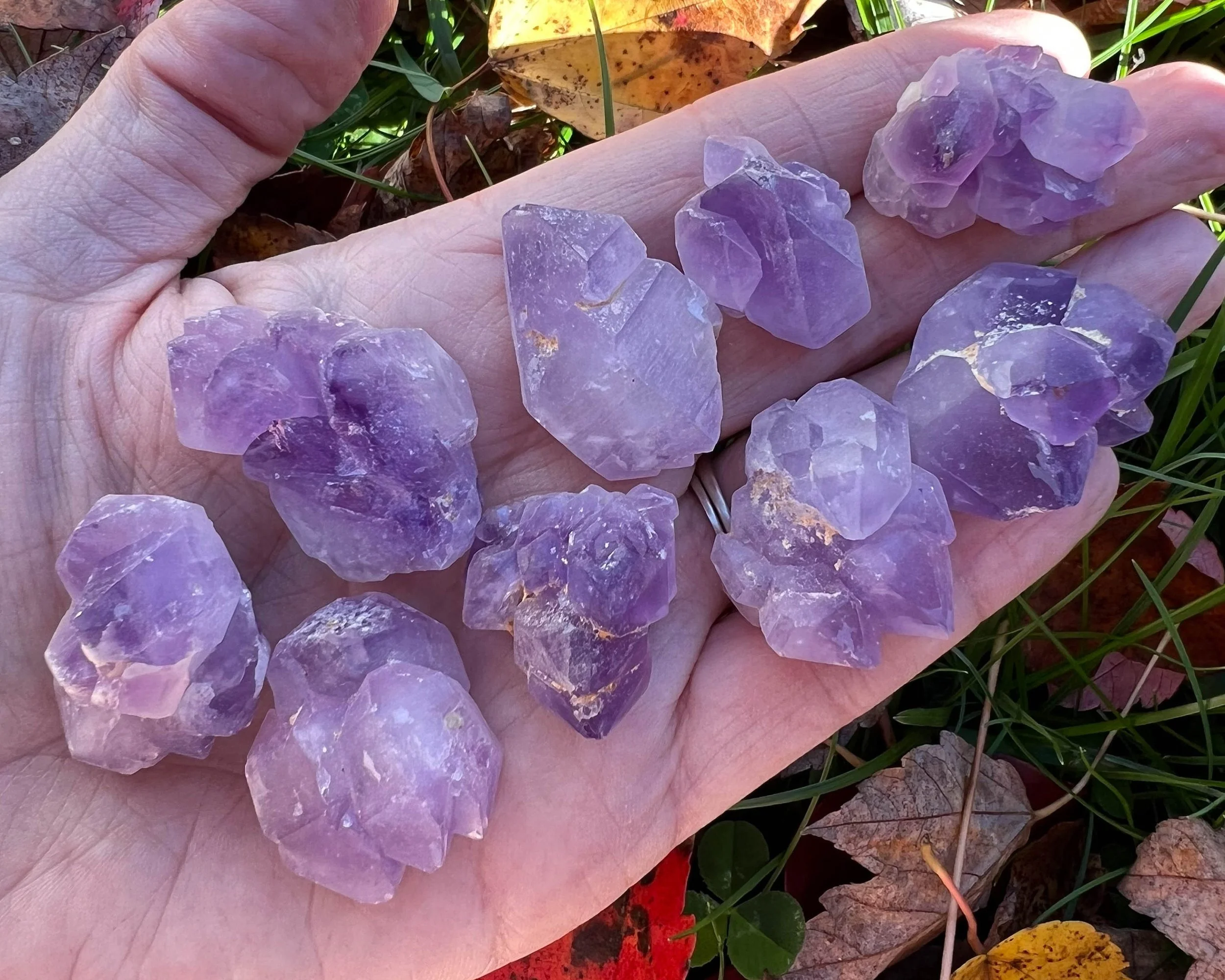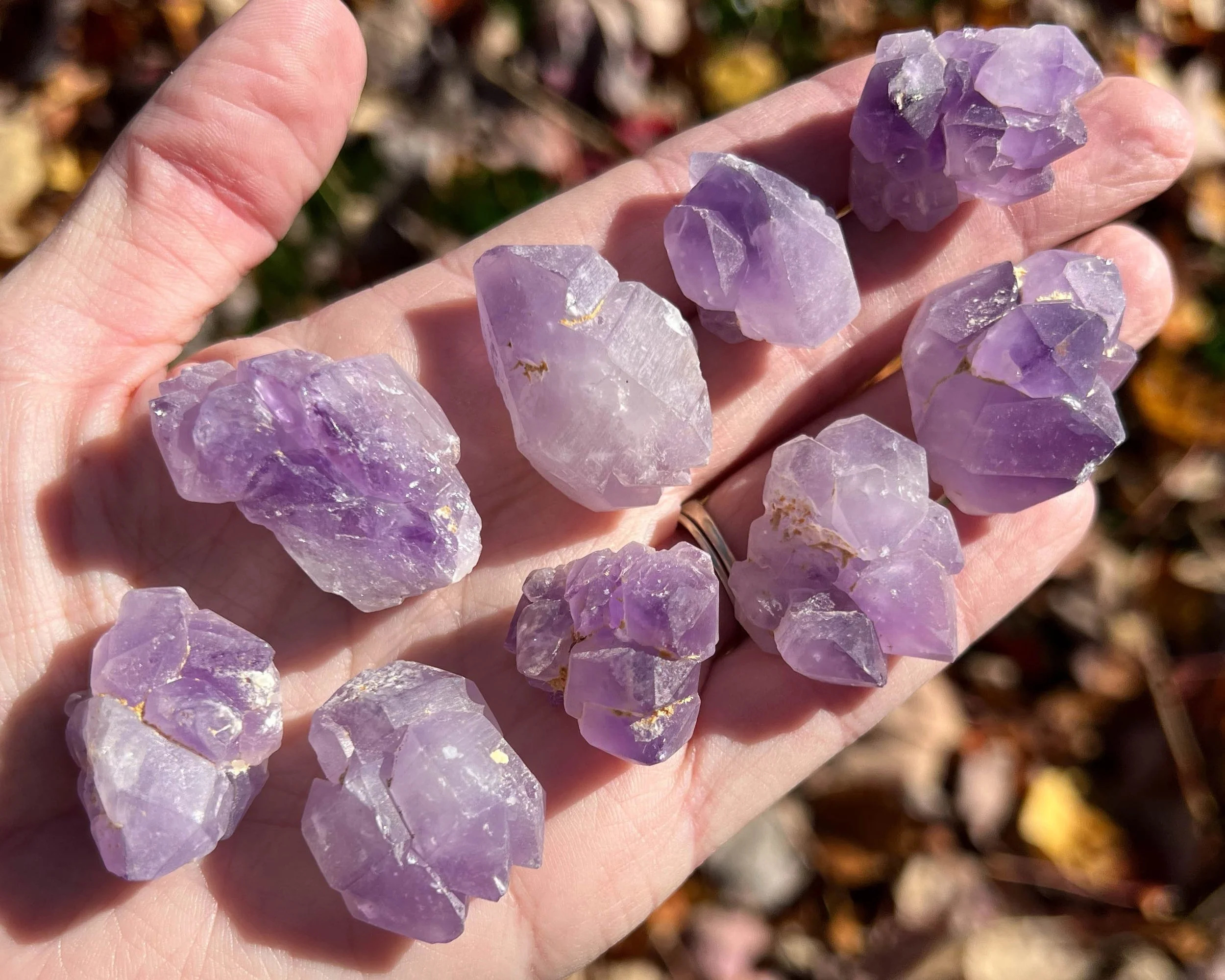 Set of 9 Tibetan Amethyst Clusters, Amethyst Flowers, Lot, Elestial Crystals, Double Terminated, Small Points for Jewelry, Crystal Grid 2