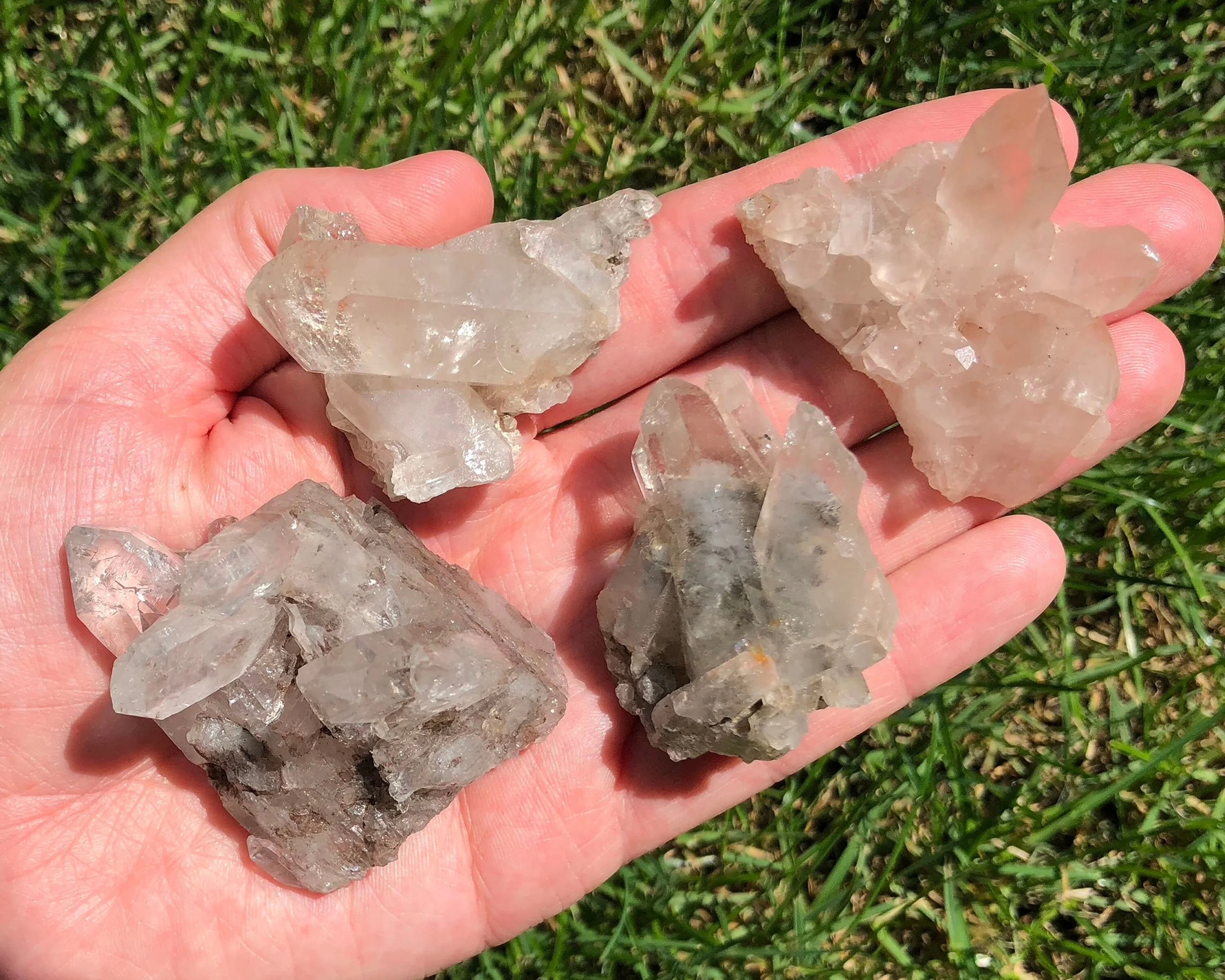Image 1 of 10 Image 2 of 10 Image 3 of 10 Image 4 of 10 Image 5 of 10 Image 6 of 10 Image 7 of 10 Image 8 of 10 Image 9 of 10 Image 10 of 10 Set of Four Small Quartz Clusters, Lodolite Quartz Cluster, Tangerine Quartz Cluster, Tabular Quartz, Rainbow Quartz Crystal Set, Gift Set $35.00 Quartz cluster set including: 1 Lodolite Quartz cluster 1 Tangerine Quartz Cluster 1 Tabby Quartz cluster with multiple tabular crystals 1 Clear Quartz with a rainbow in it You will receive the exact 4 Quartz clusters shown. from Brazil Measure 1.7 to 2.1 inches long Total weight 150 grams / 5.3 ounces See photos for reference. Thanks for looking! :) Kouva Dream Catchers <3 Add To Cart Added! Quartz cluster set including: 1 Lodolite Quartz cluster 1 Tangerine Quartz Cluster 1 Tabby Quartz cluster with multiple tabular crystals 1 Clear Quartz with a rainbow in it You will receive the exact 4 Quartz clusters shown. from Brazil Measure 1.7 to 2.1 inches long Total weight 150 grams / 5.3 ounces See photos for reference. Thanks for looking! :) Kouva Dream Catchers <3 Reviews Reviewer Name Review Date Star Rating Description Posted on Etsy Product Show More