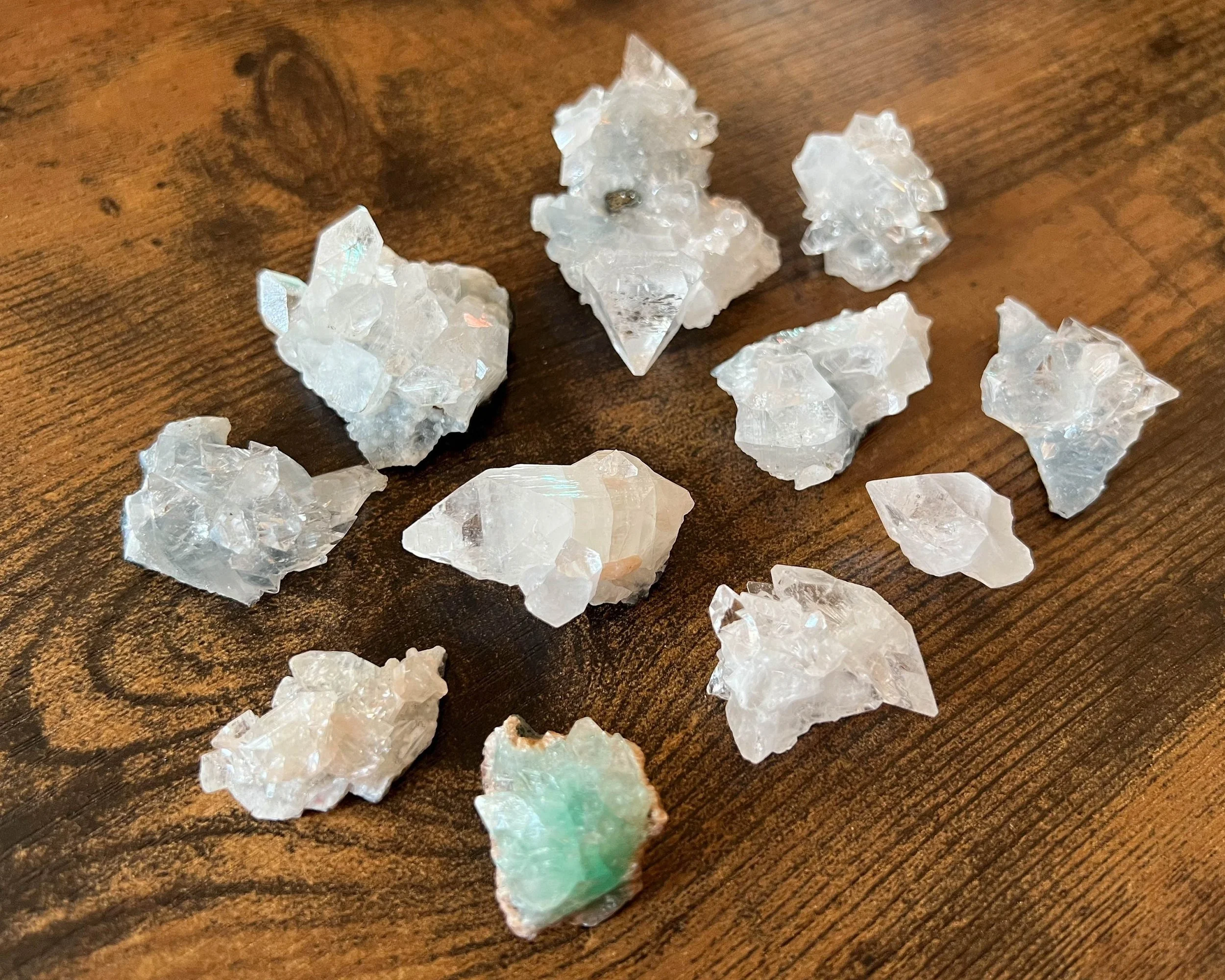 Set of Indian Mineral Specimens Lot: Apophyllite Stilbite Chalcedony Quartz Druzy, Crystal Collection, Crystal Clusters, Witchy Gift Set