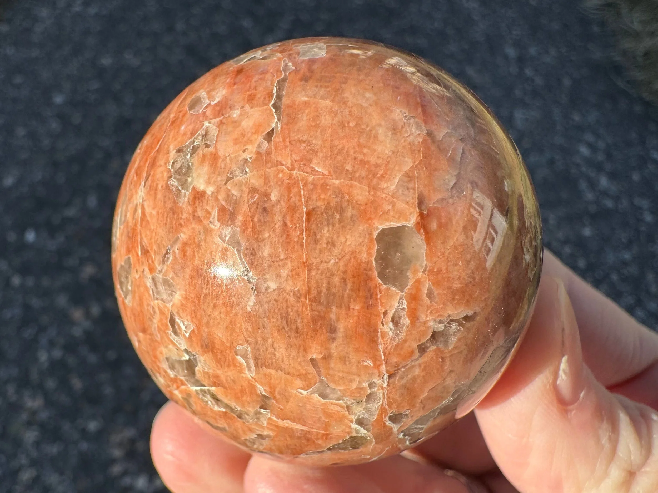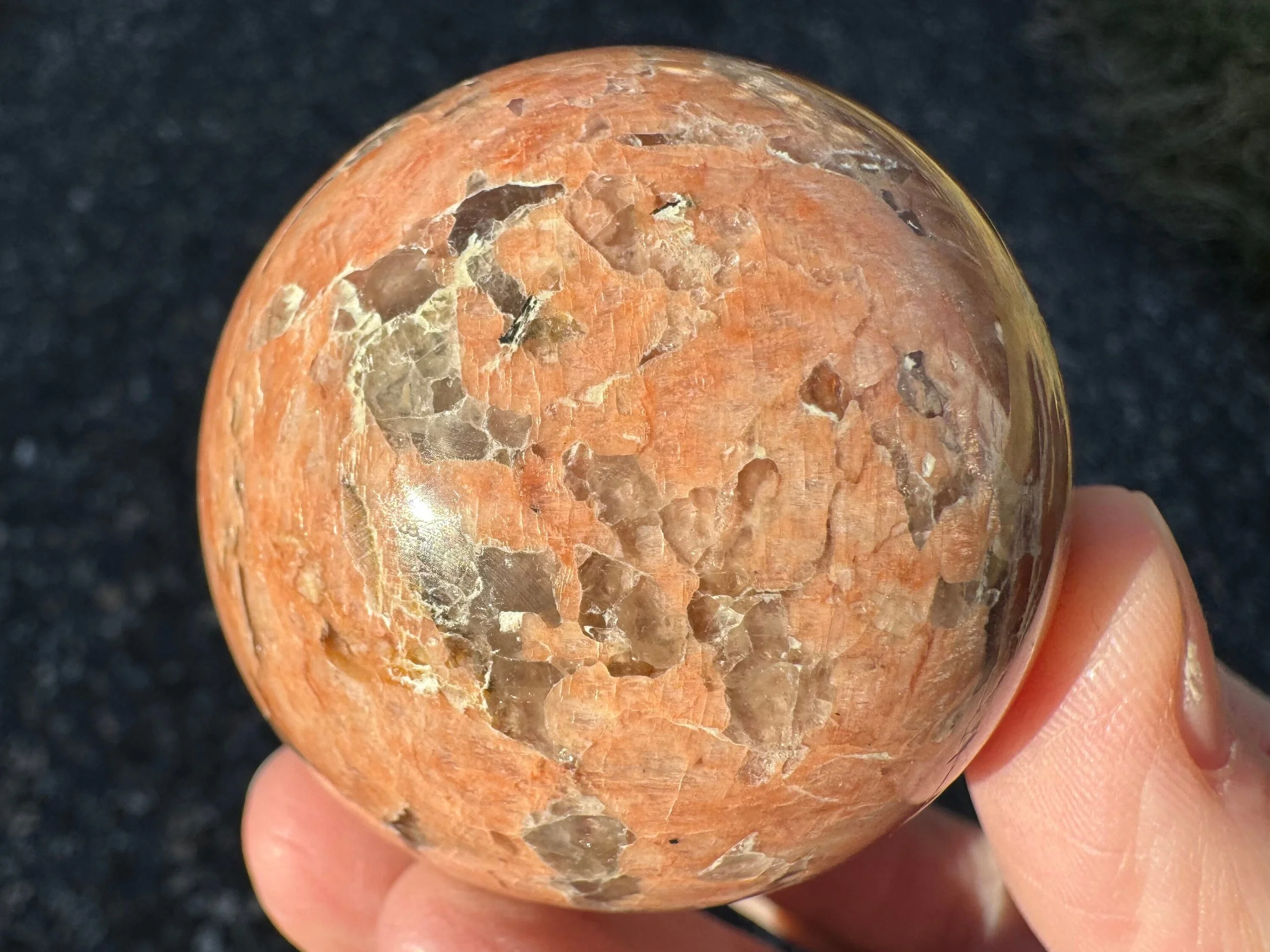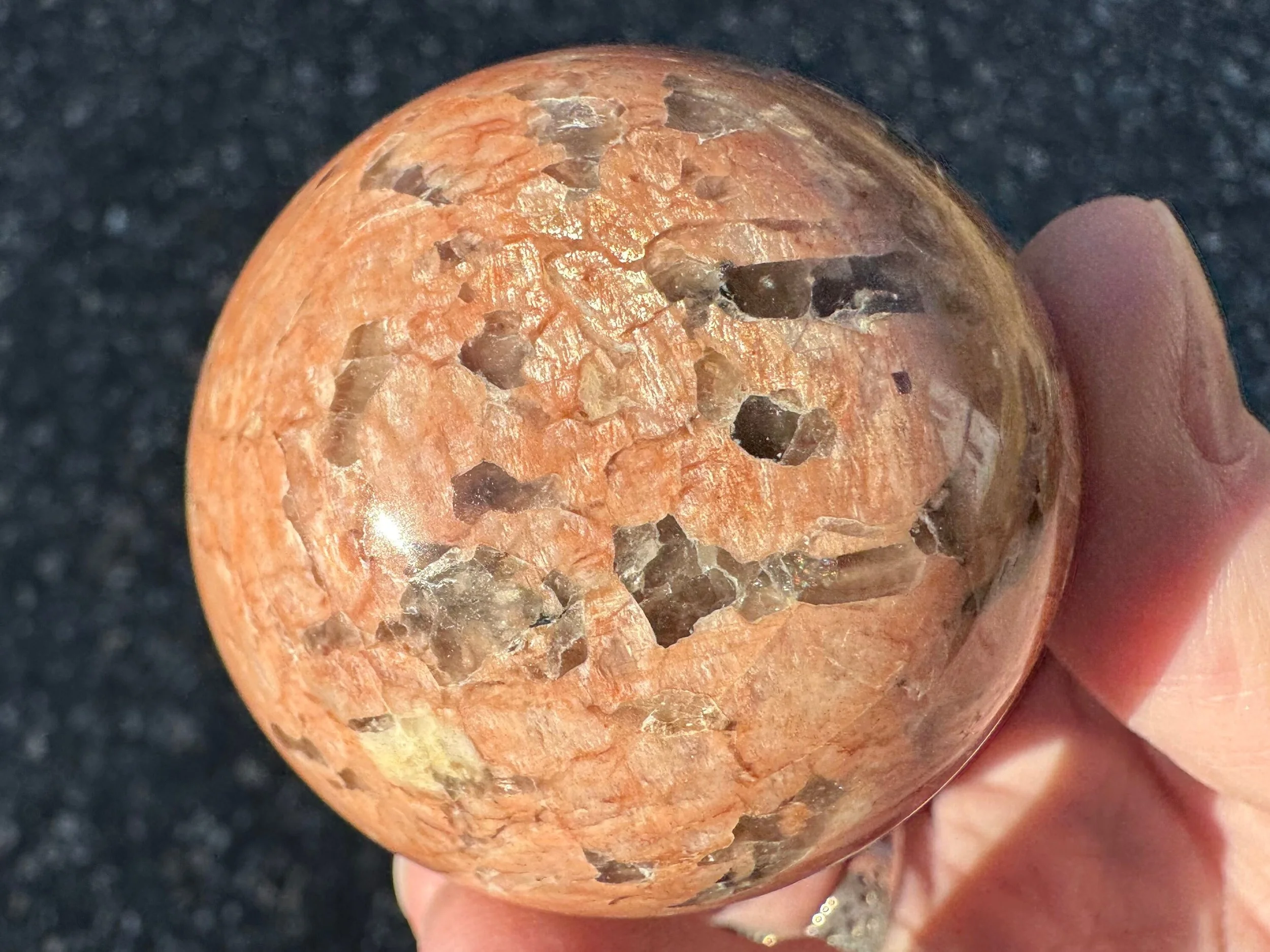 Shimmery Peach Moonstone Sphere with Smoky Quartz, Crystal Ball, Polished Gemstone, Witchy Home Decor Gift for Her Gift for Mom, Home Accent