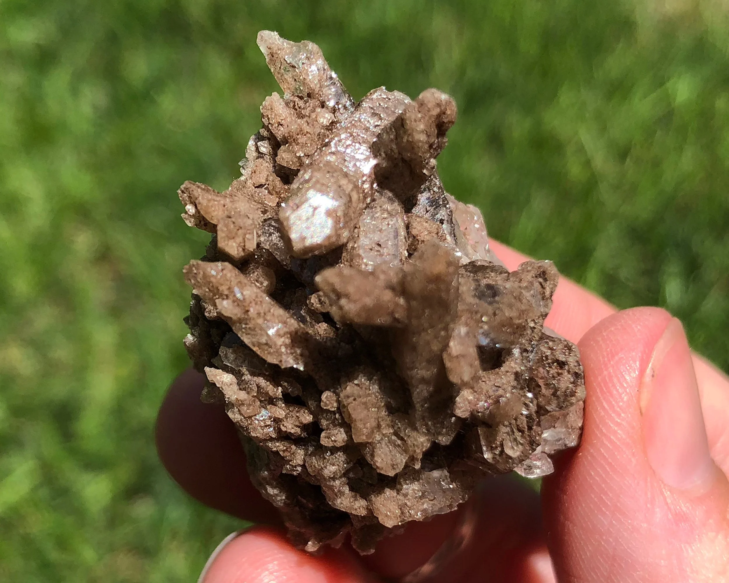 This is an awesome clear Quartz crystal cluster that is also Lodolite, aka scenic inclusion Quartz from Brazil. It has pretty colorful Chlorite / Sand / Hematite inclusions that look like fuzzy colorful moss frozen in glass. It's so much better in person because a camera can't quite catch all the details. So pretty! :D