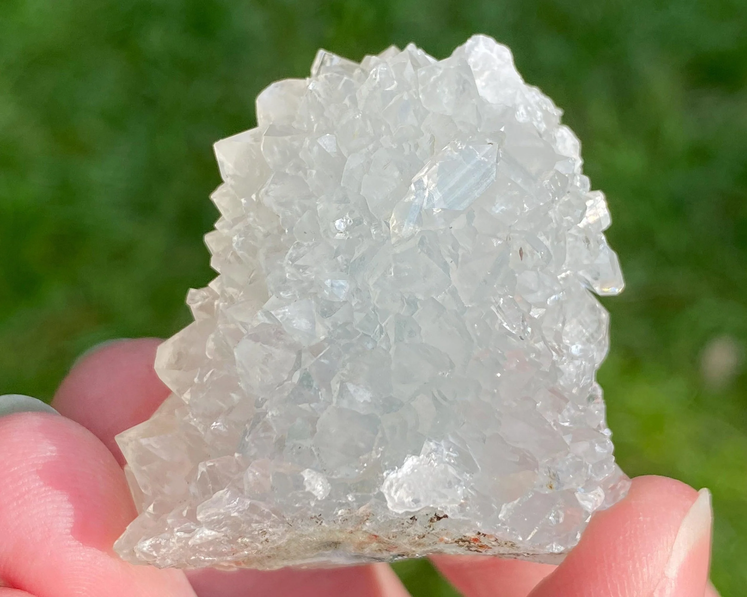 Sparkly Apophyllite and Quartz Druzy on Chalcedony Stalactite from India #8