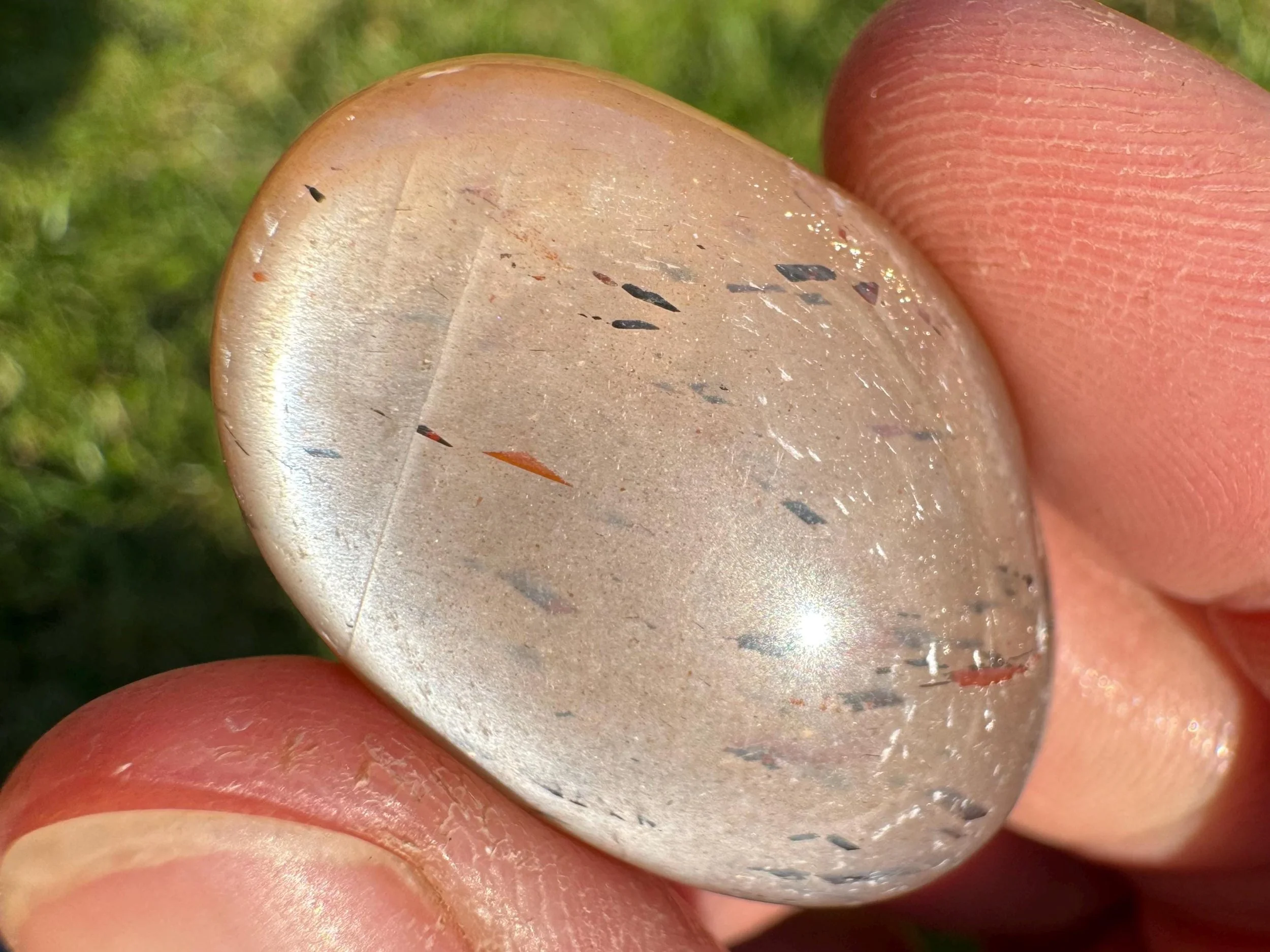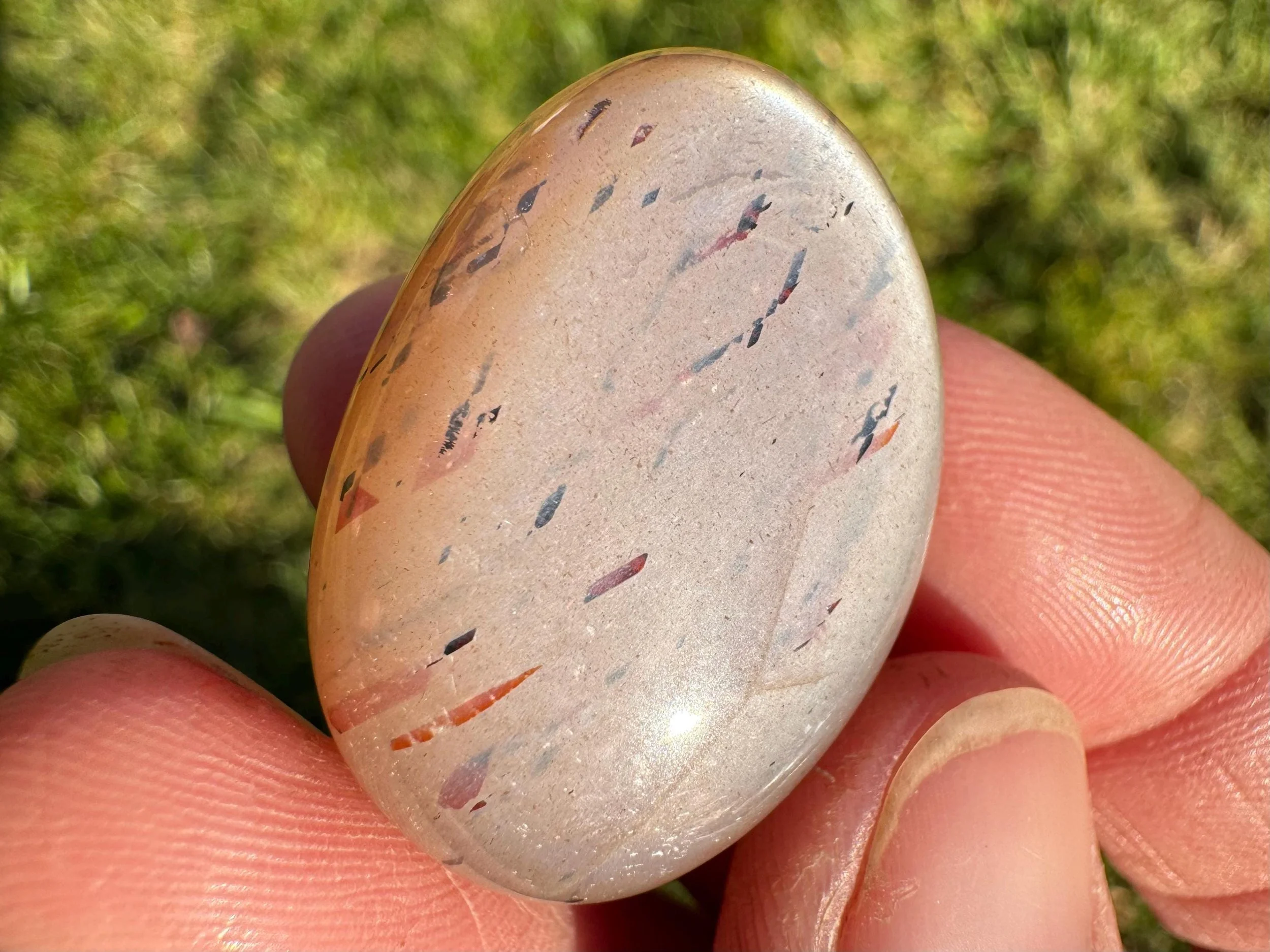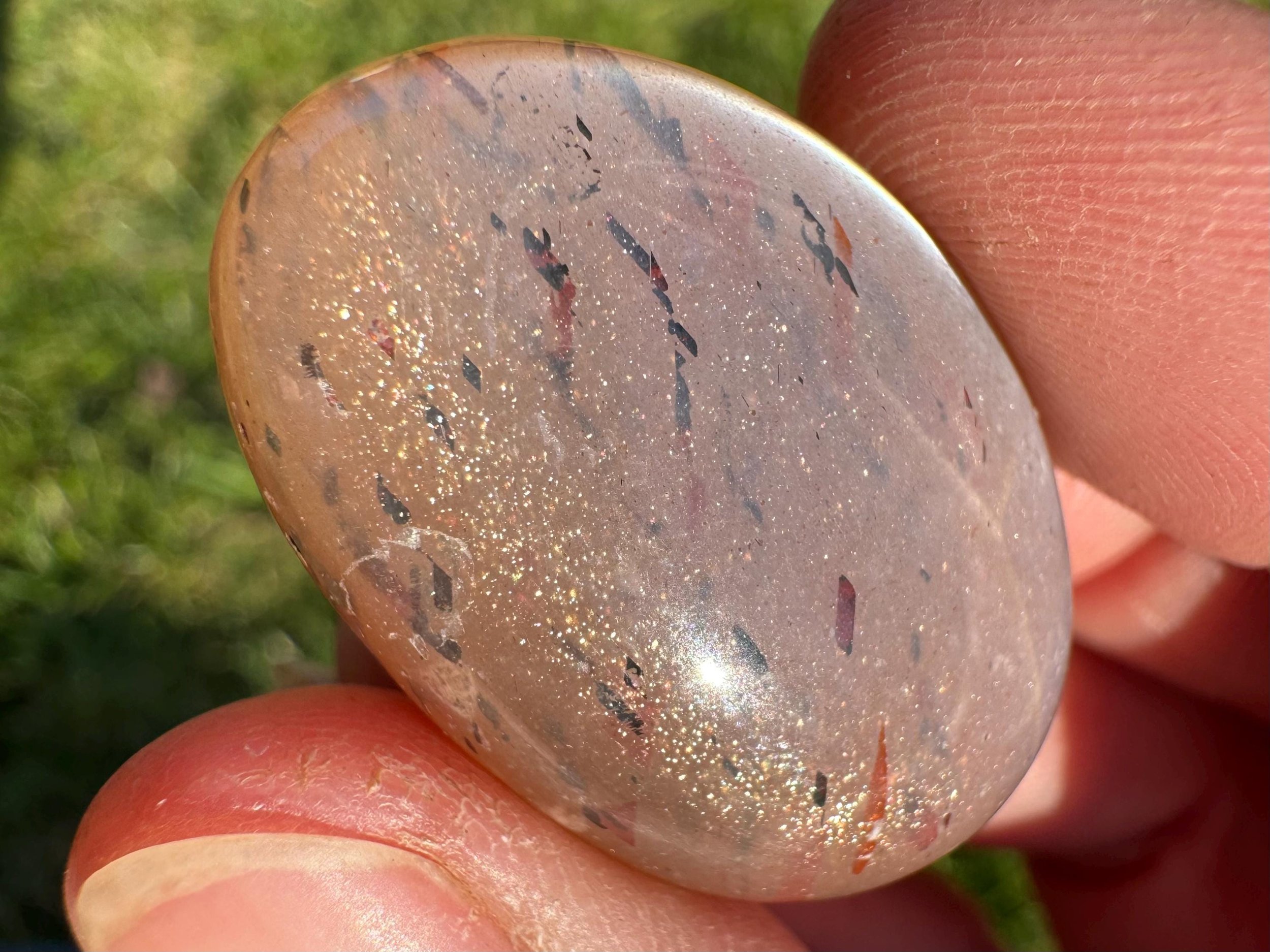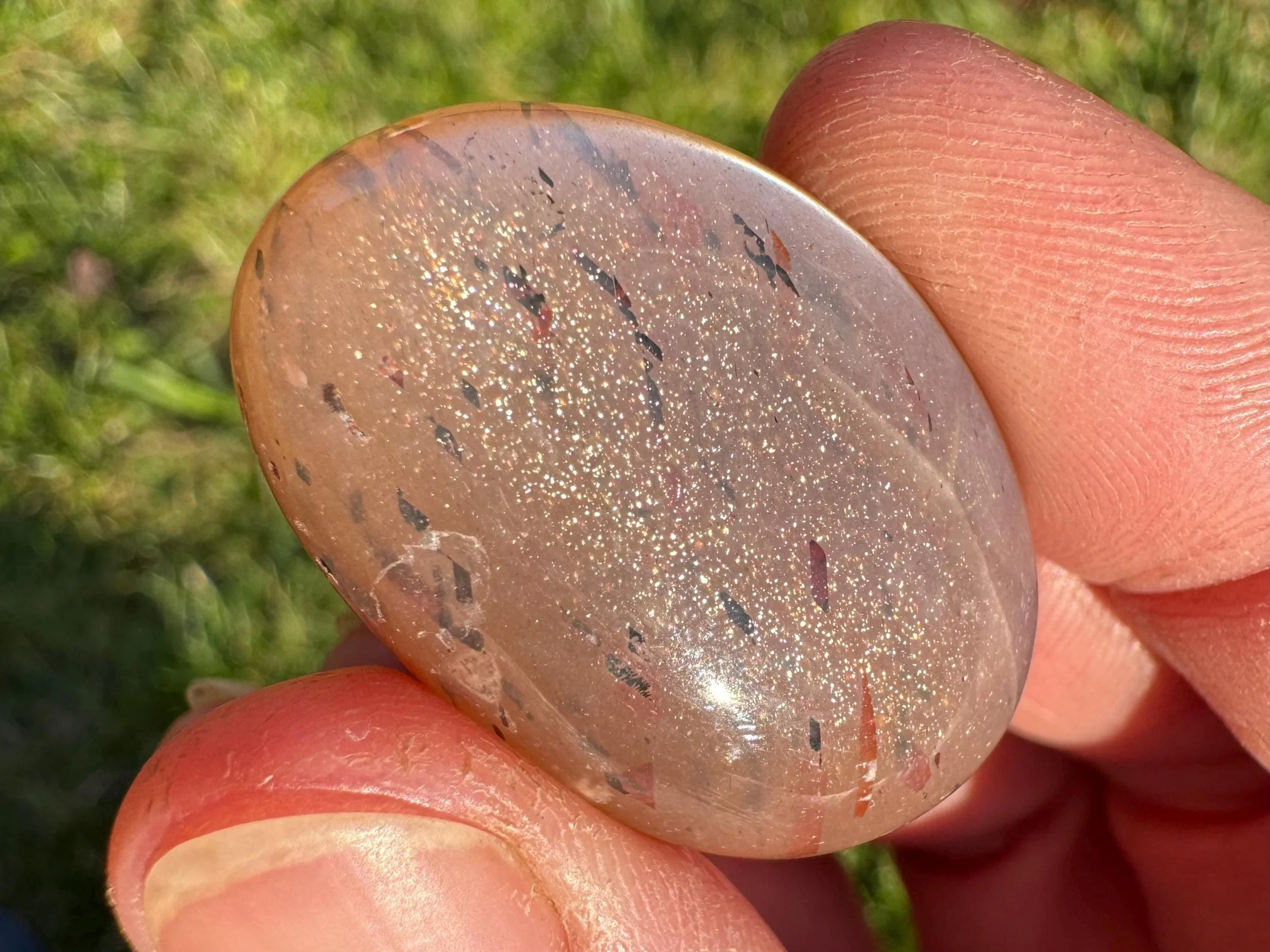 Sparkly Peach Moonstone Palm Stone #3 Confetti Sunstone Shimmer Sheen, Solar Plexus Chakra, Witchy Gift for Her, Cancer Libra, for Intuition