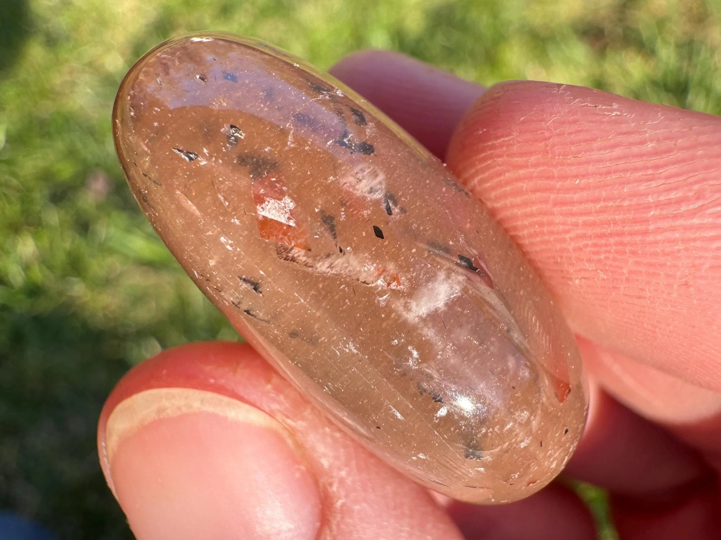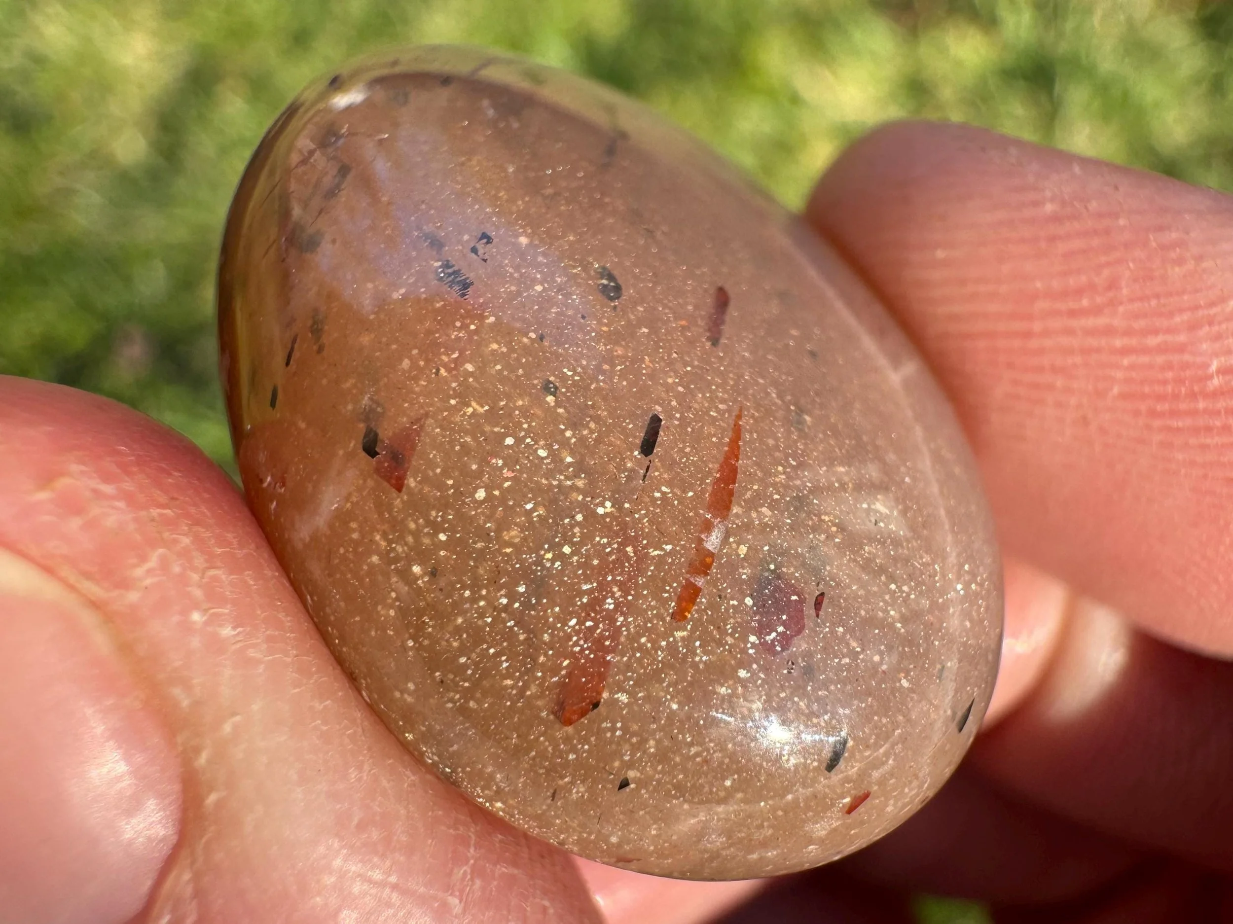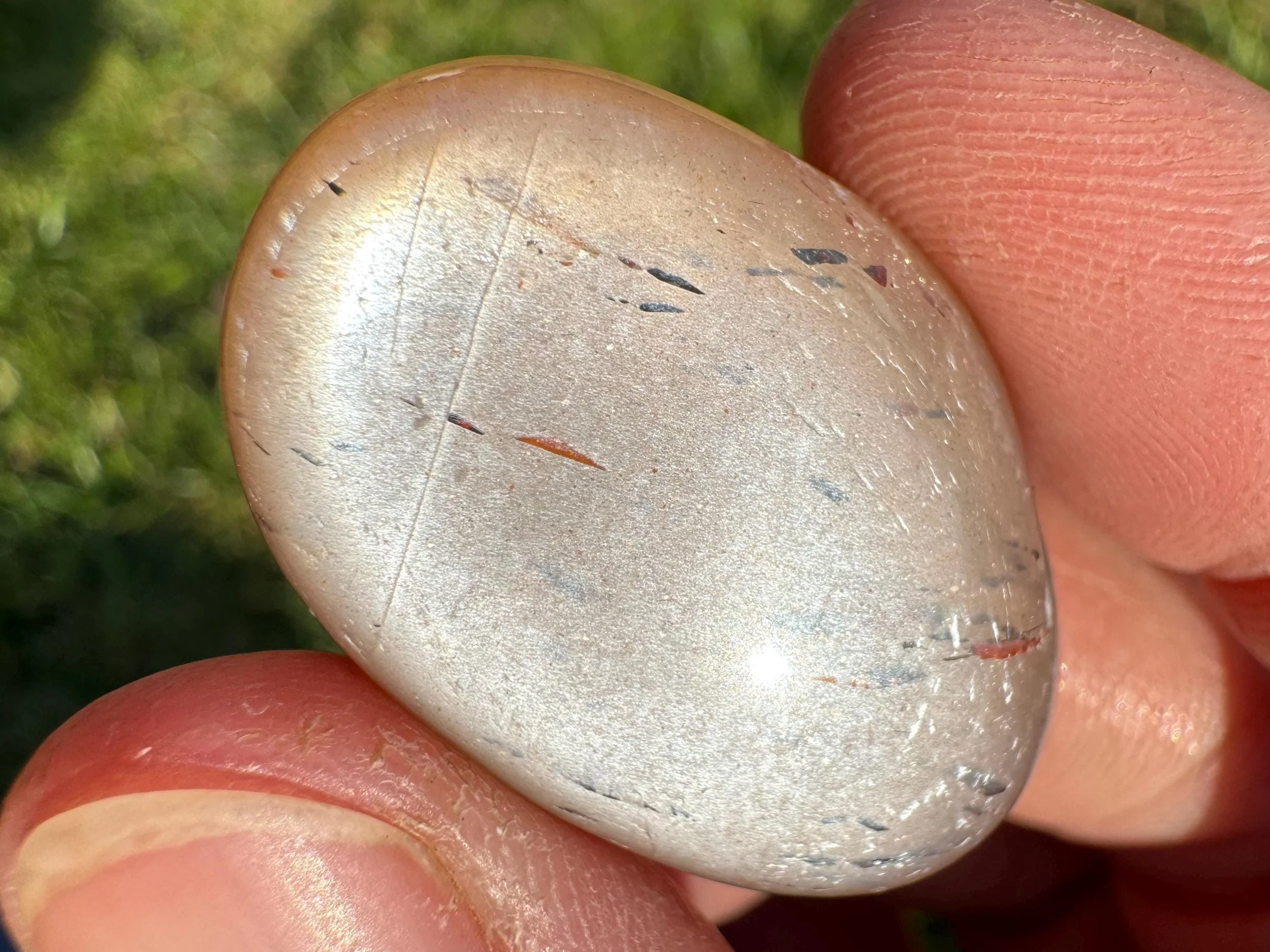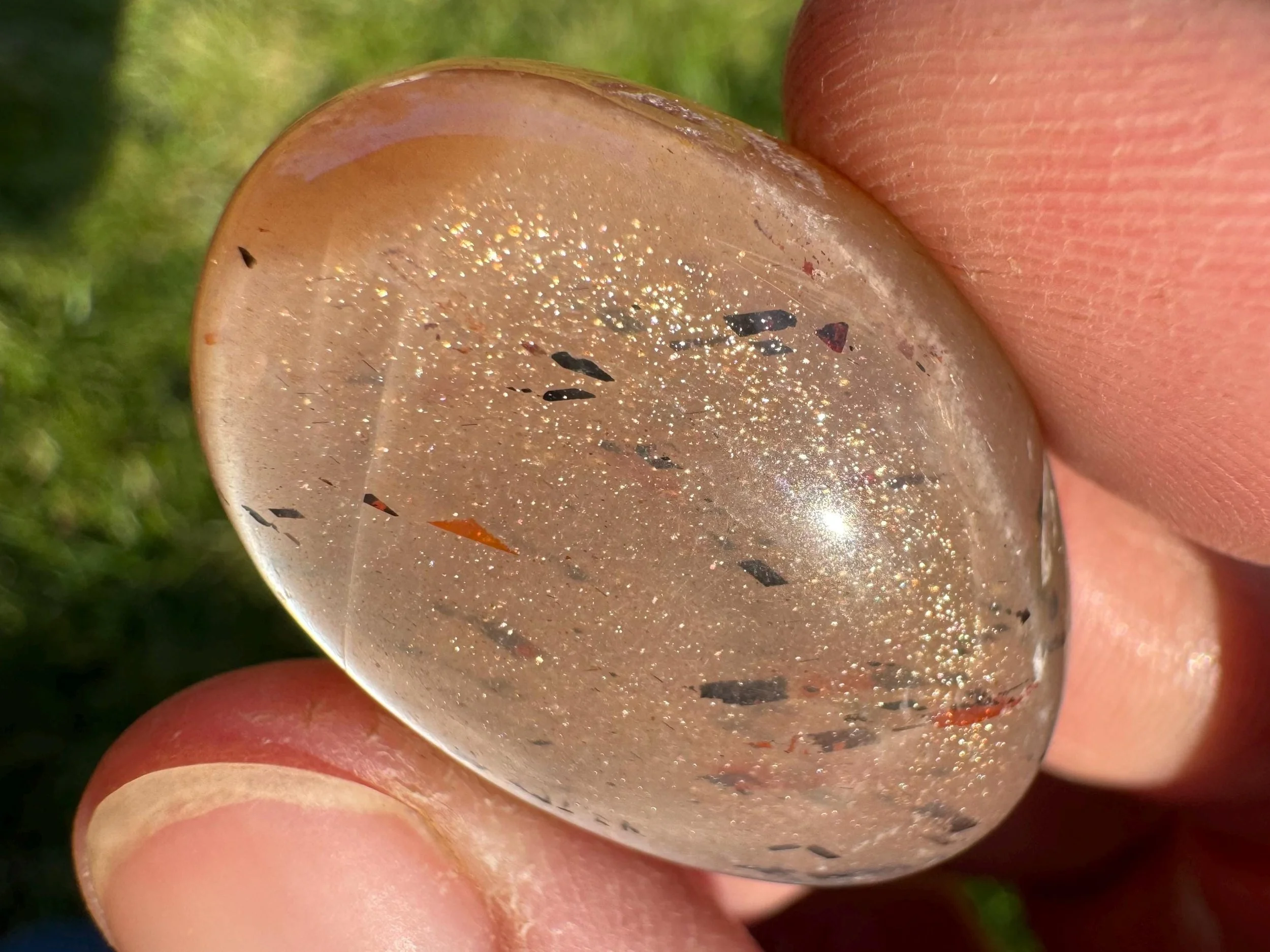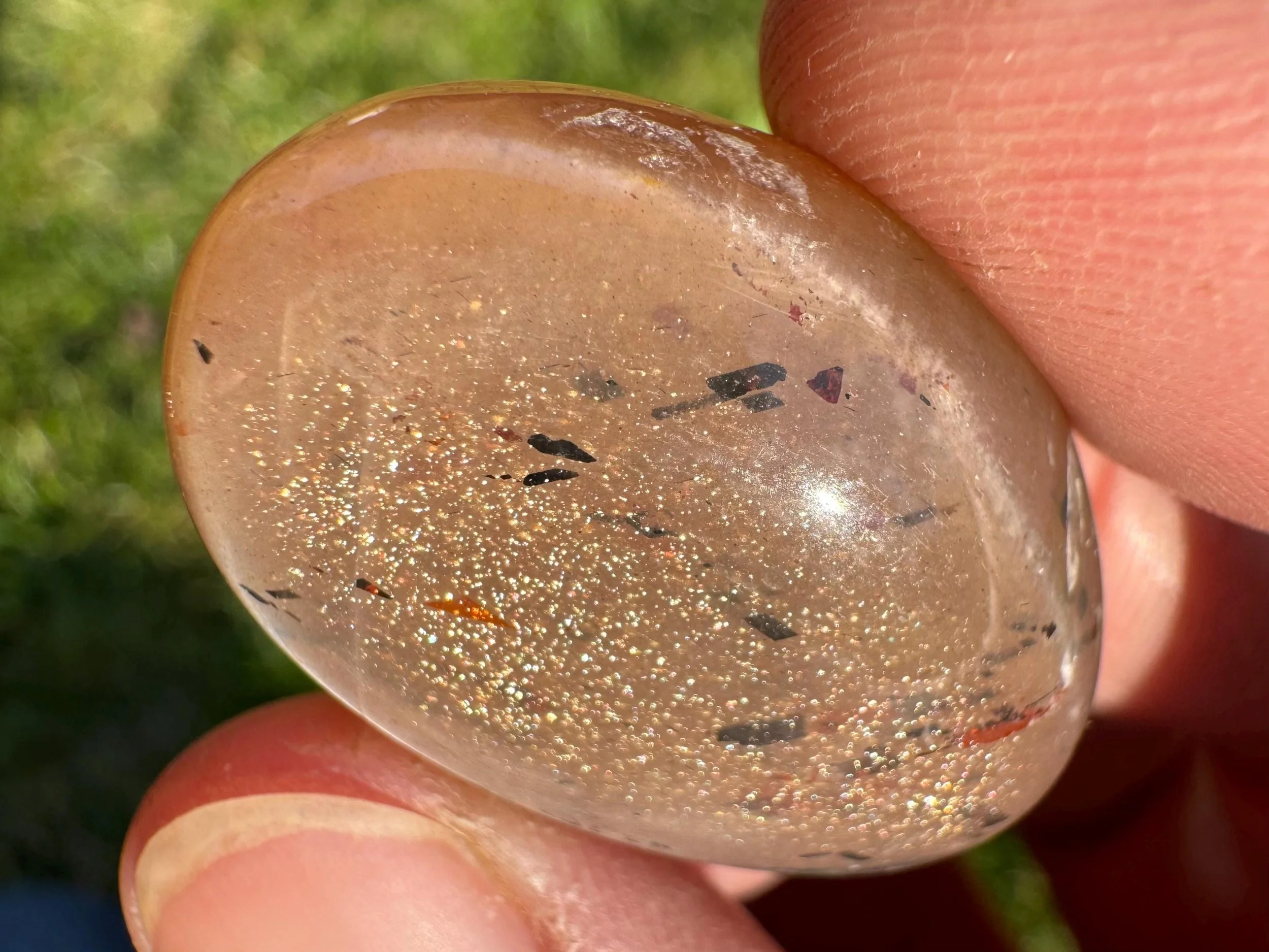 Sparkly Peach Moonstone Palm Stone #3 Confetti Sunstone Shimmer Sheen, Solar Plexus Chakra, Witchy Gift for Her, Cancer Libra, for Intuition