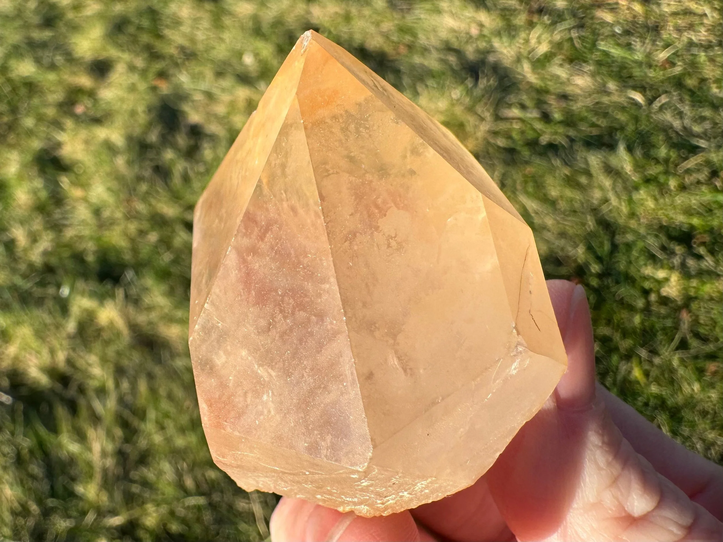 Tangerine Quartz points are natural Quartz crystals that have orange Hematite on or in them, giving them a lovely Tangerine color. They are fun and colorful. This is an unpolished, rough, raw stone.