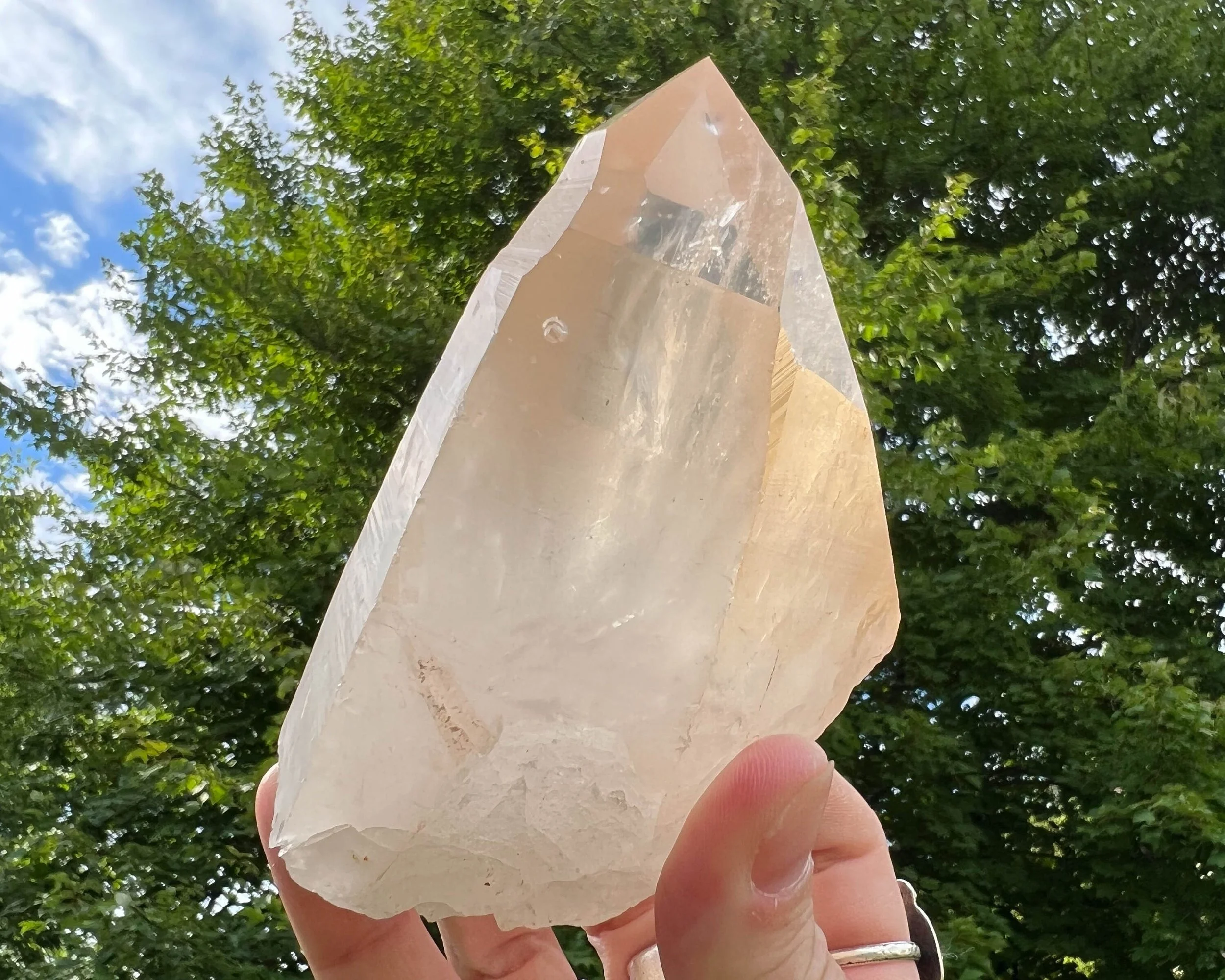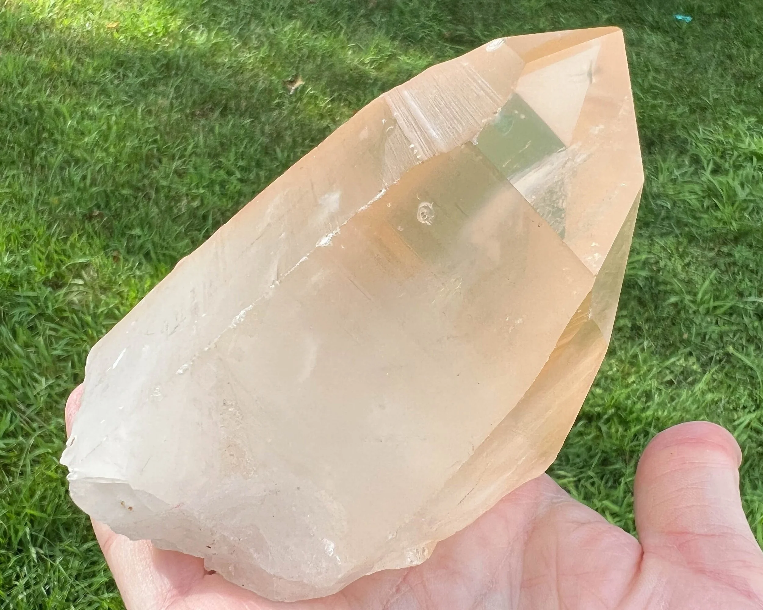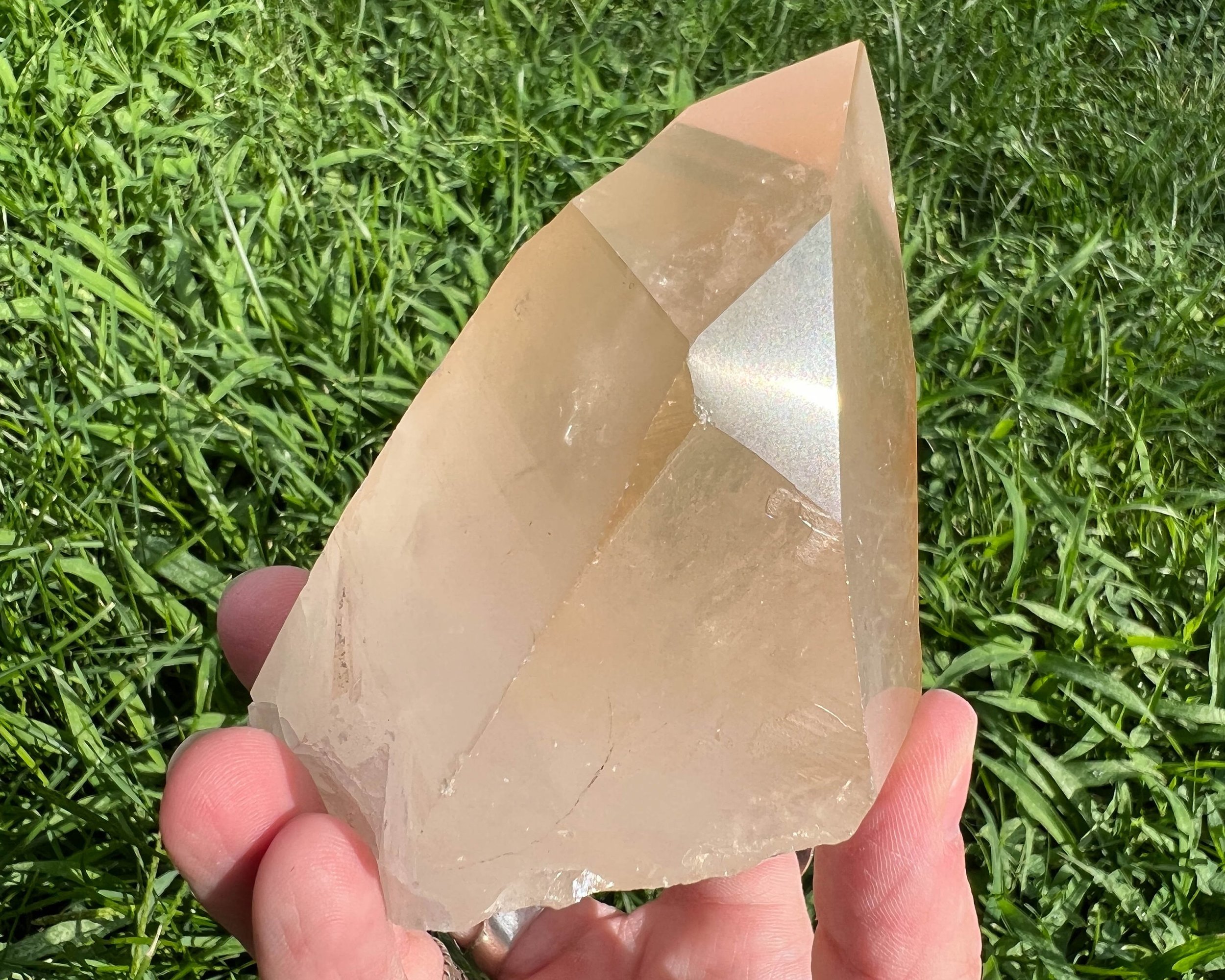 Tangerine Quartz points are natural Quartz crystals that have orange Hematite on or in them, giving them a lovely Tangerine color. They are fun and colorful.
