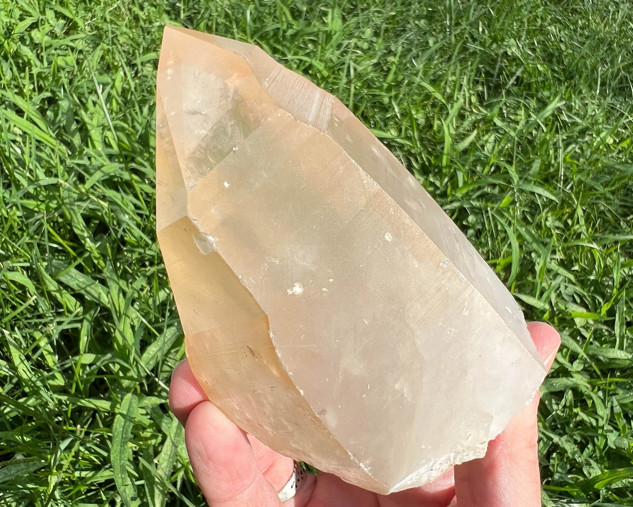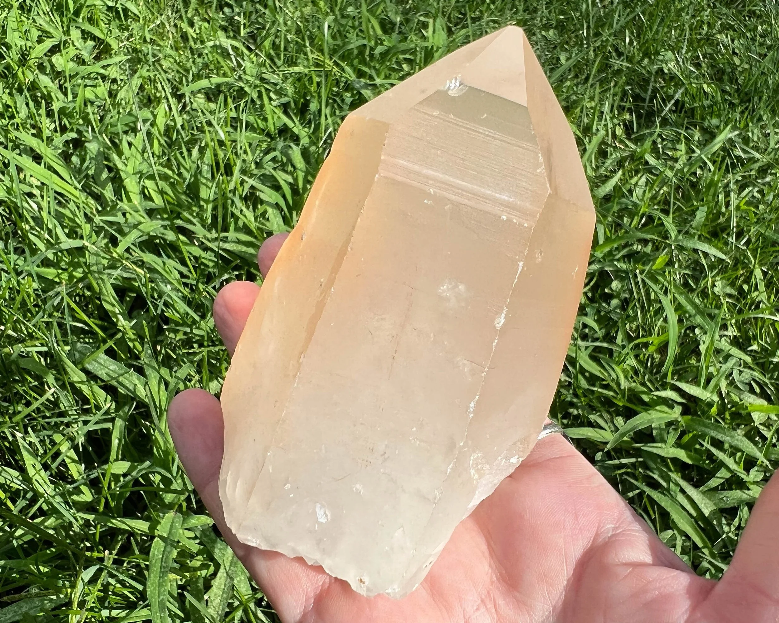 Tangerine Quartz points are natural Quartz crystals that have orange Hematite on or in them, giving them a lovely Tangerine color. They are fun and colorful.