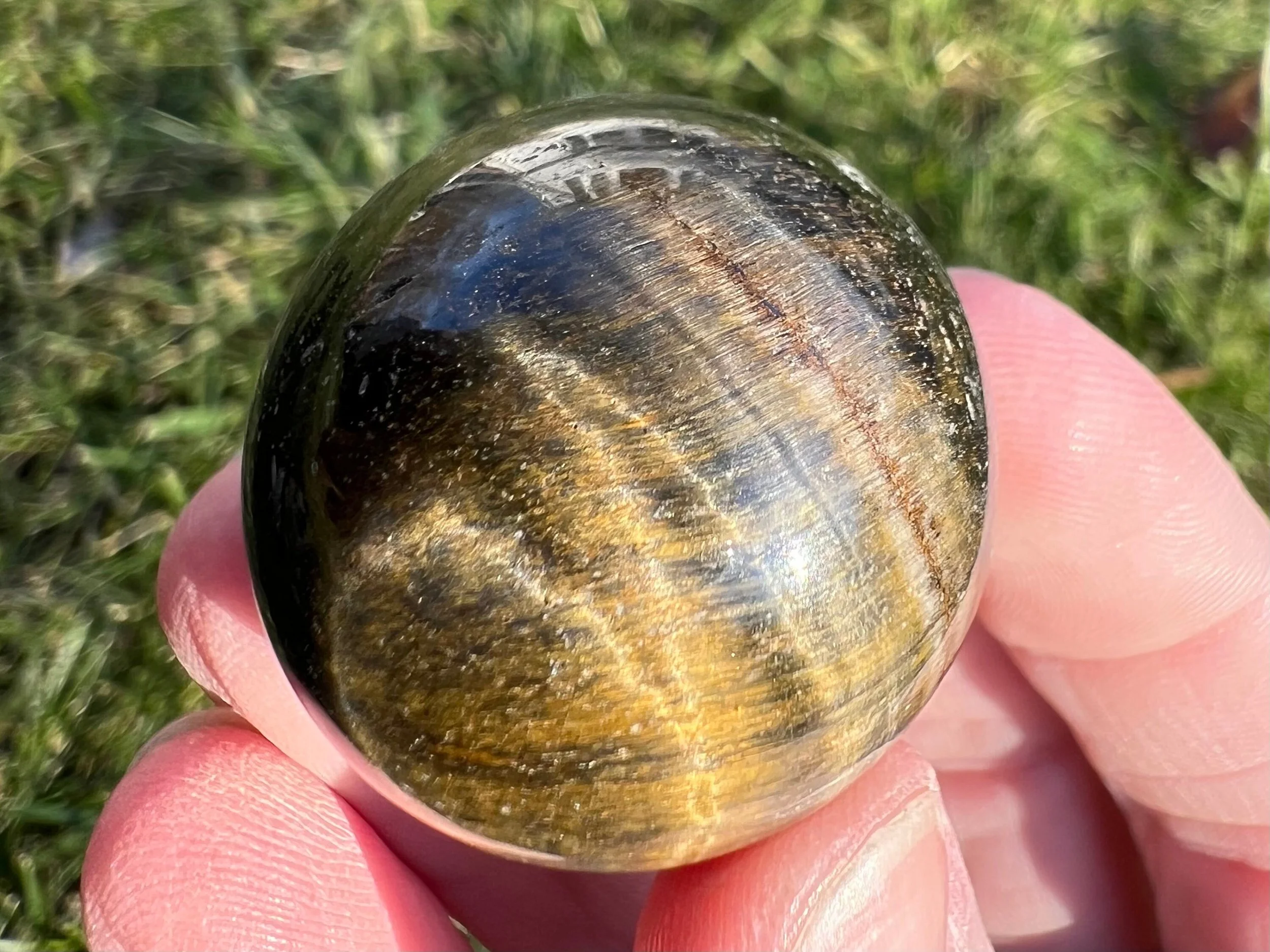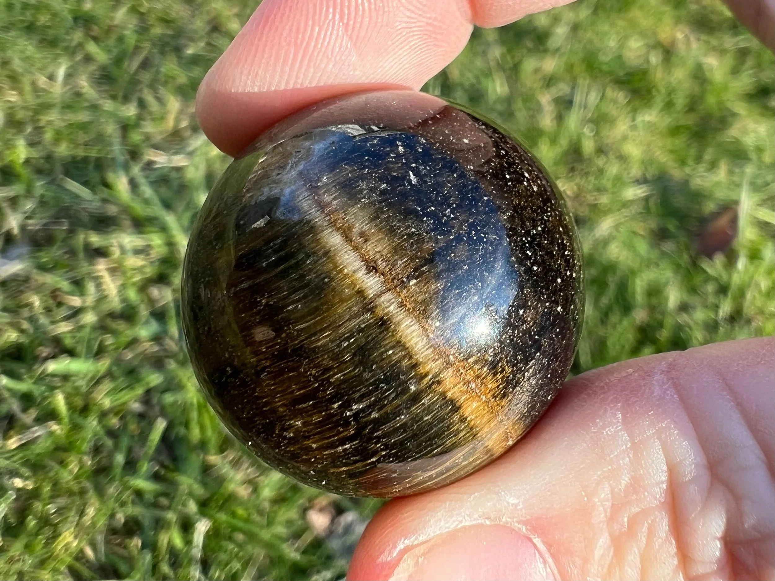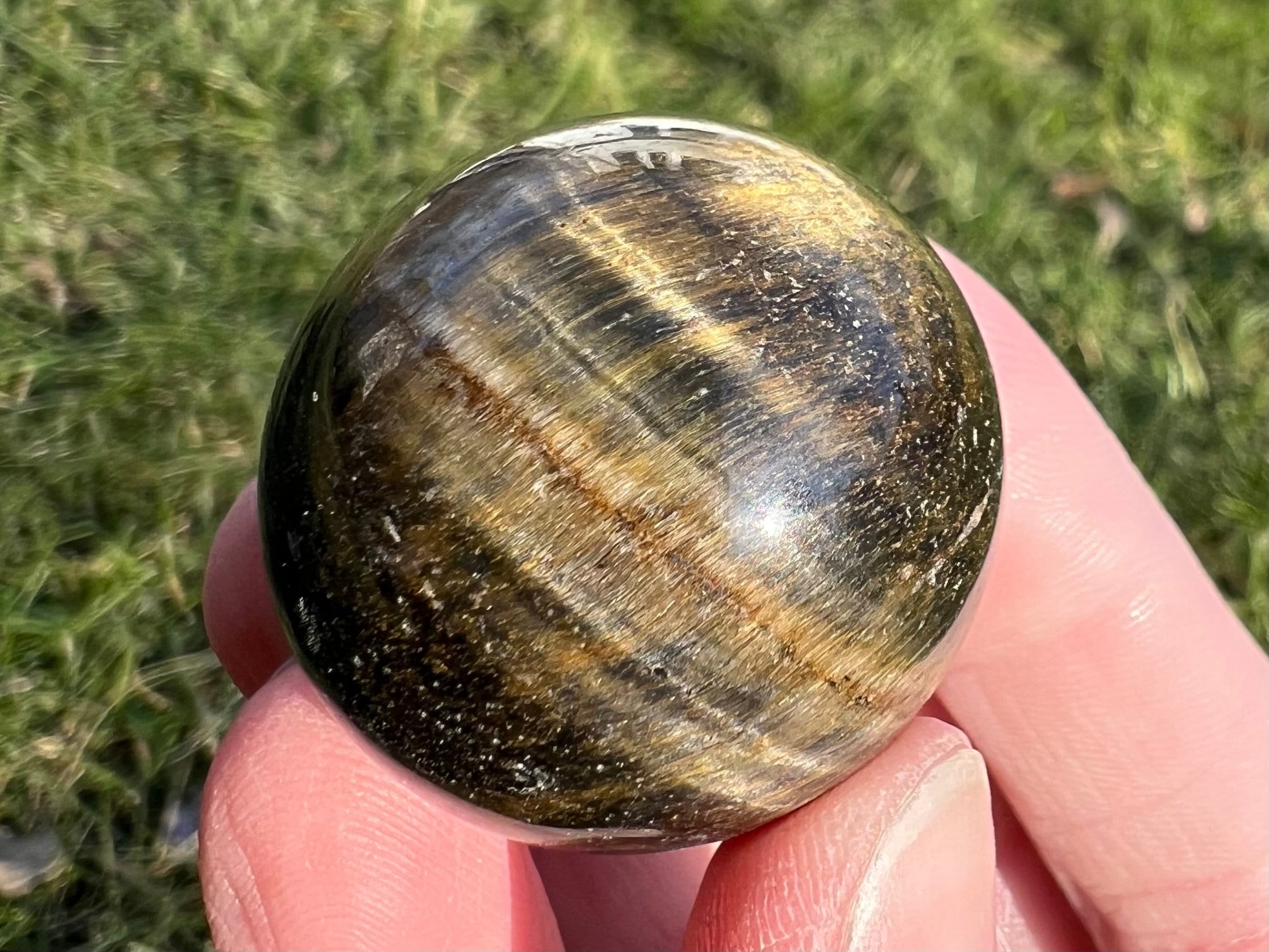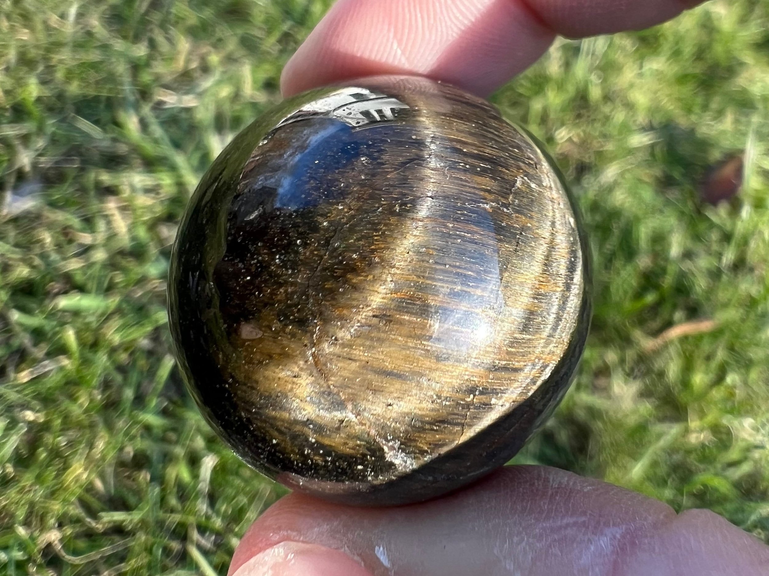 Image 1 of 10 Image 2 of 10 Image 3 of 10 Image 4 of 10 Image 5 of 10 Image 6 of 10 Image 7 of 10 Image 8 of 10 Image 9 of 10 Image 10 of 10 Tigers Eye Sphere: Blue Hawks Eye, Small Gold Crystal (1.2 inch) #1 $16.00 This is a small Tiger's Eye sphere with blue and gold, also called Haw's Eye. It is chatoyant, and very pretty, polished natural stone. You will receive the exact one shown.1.2 inches in diameter38 grams / 1.4 ouncesHawk's Eye is used for courage, confidence, strength, good luck and protection. It is associated with inner vision, intuition, and clarity. Thanks for looking! :)Kouva Dream Catchers <3 Add To Cart Added! This is a small Tiger's Eye sphere with blue and gold, also called Haw's Eye. It is chatoyant, and very pretty, polished natural stone. You will receive the exact one shown.1.2 inches in diameter38 grams / 1.4 ouncesHawk's Eye is used for courage, confidence, strength, good luck and protection. It is associated with inner vision, intuition, and clarity. Thanks for looking! :)Kouva Dream Catchers <3 Reviews Reviewer Name Review Date Star Rating Description Posted on Etsy Product Show More
