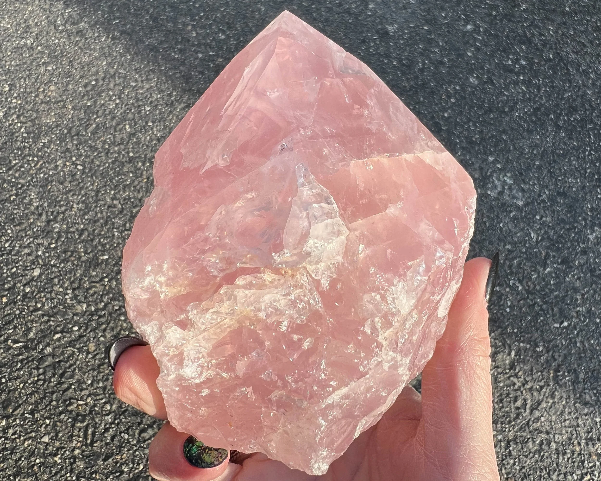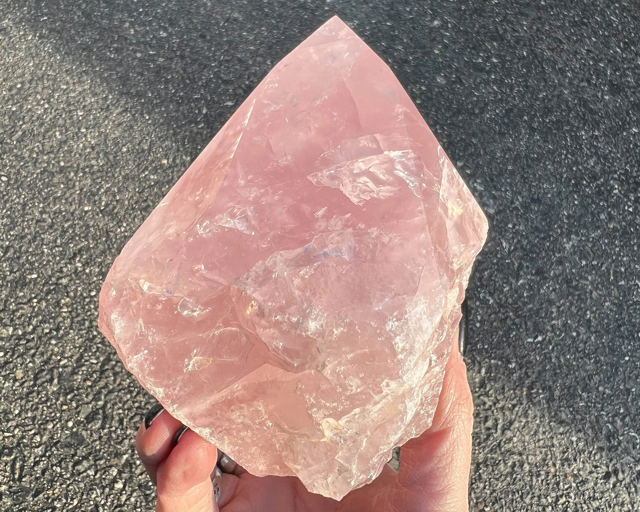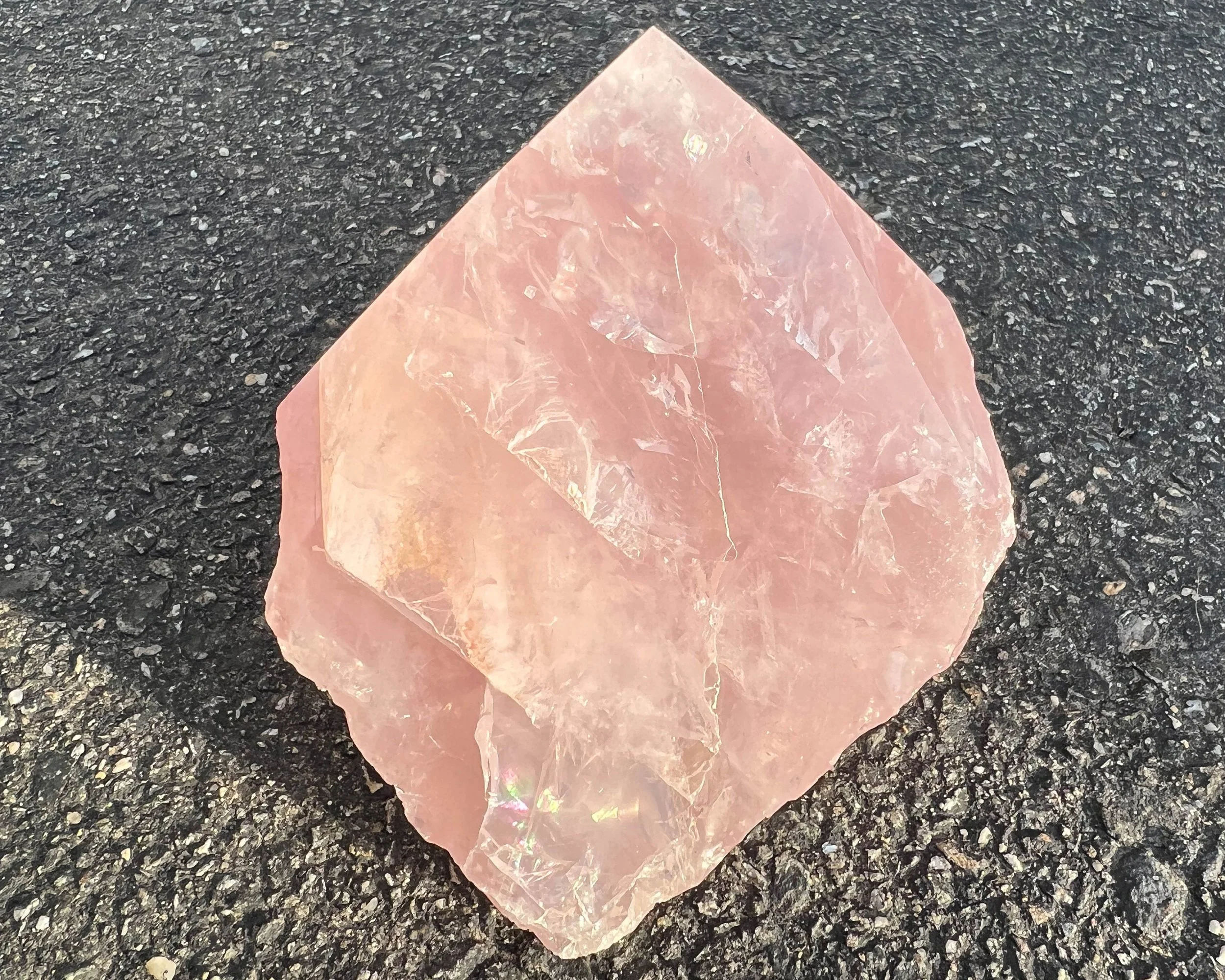 Top Polished Rose Quartz Point with Rainbows, Large Pink Crystal Display Piece, Rough Sides, Home Decor, Birthday Gift for Her, Love, Wife